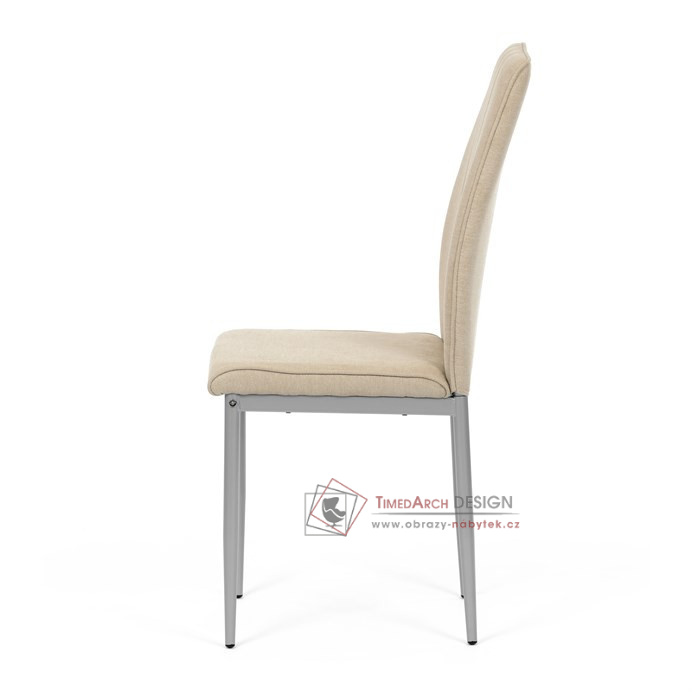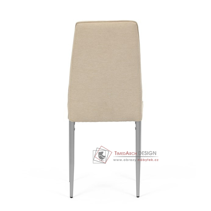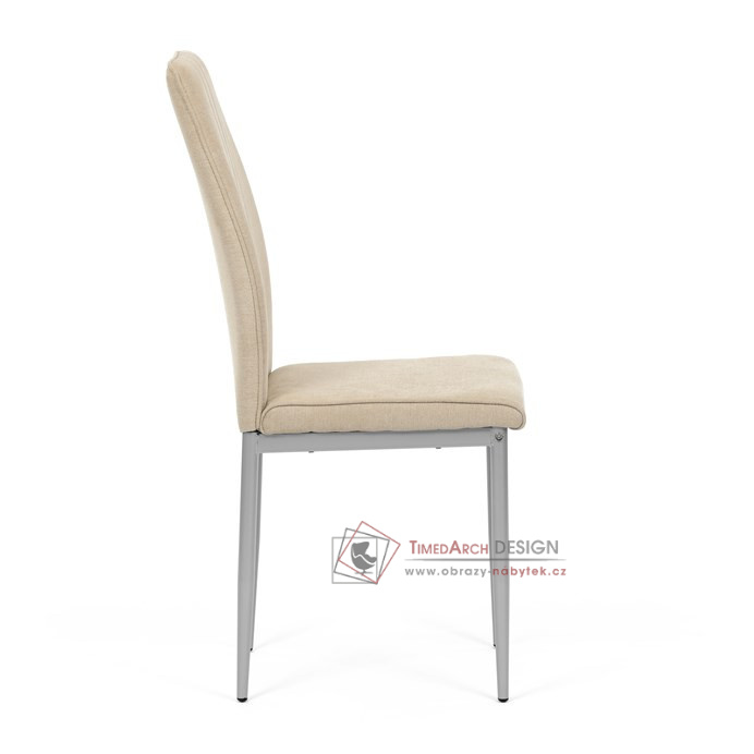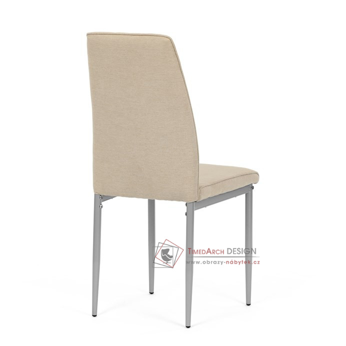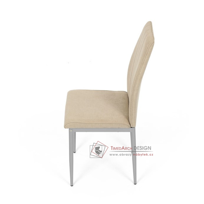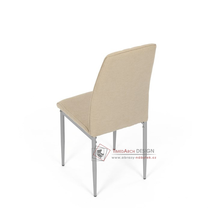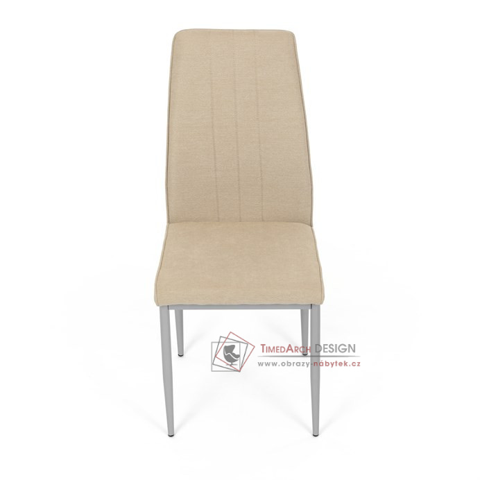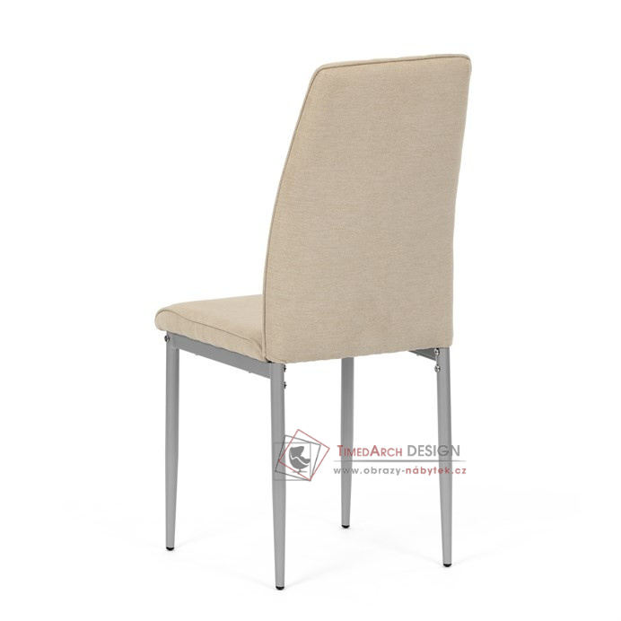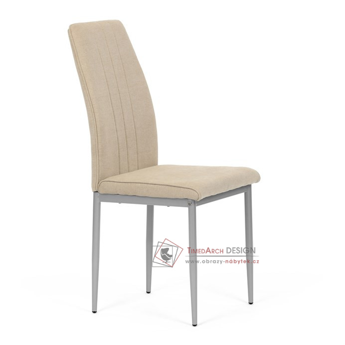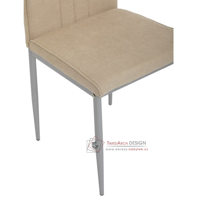 Potah je vyroben z odolné hladké látky v barvě lanýže, který snadno zapadne do různých interiérů. Pohodlí zajišťuje měkká PU pěna ve výplni, zatímco kovové nohy v šedé barvě dodávají stabilitu a pevnost. Elegantní prošívání dodává židli elegantní vzhled. Tento model je skvělou volbou pro moderní i klasické interiéry.