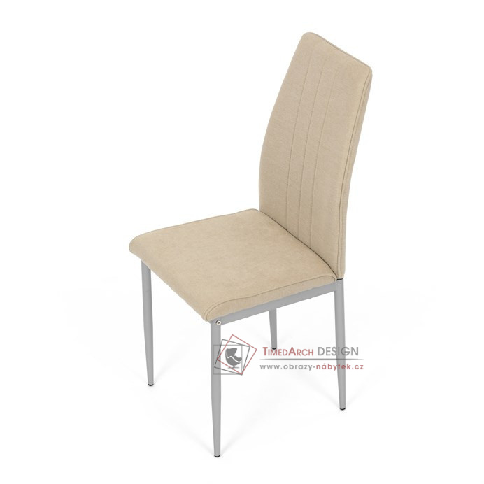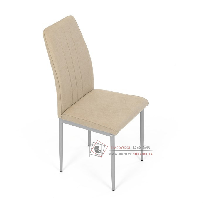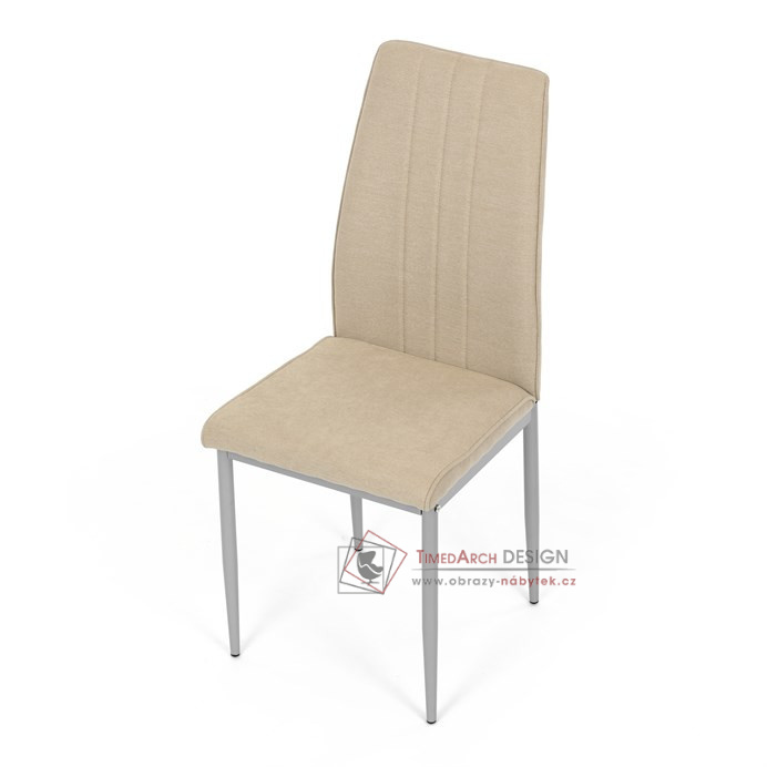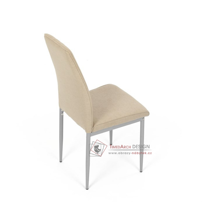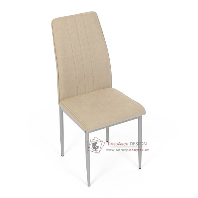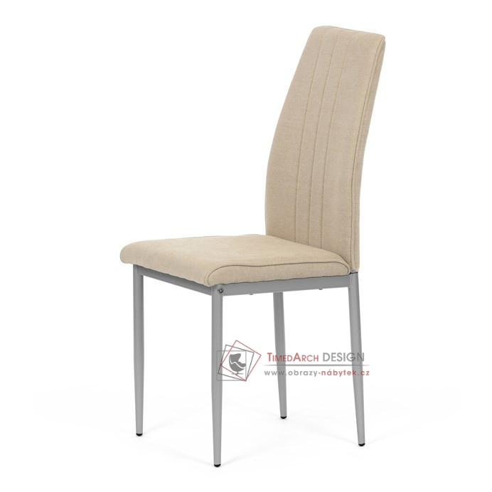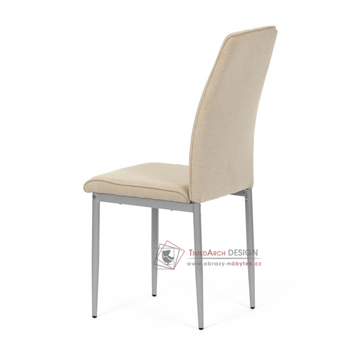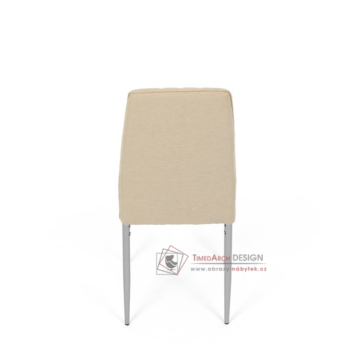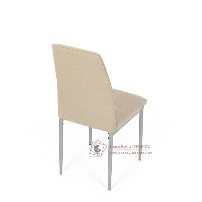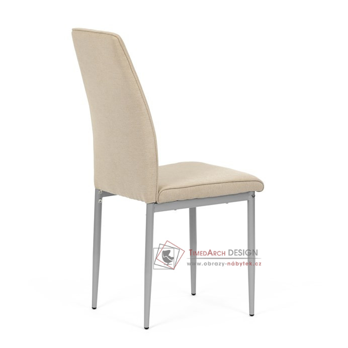 Potah je vyroben z odolné hladké látky v barvě lanýže, který snadno zapadne do různých interiérů. Pohodlí zajišťuje měkká PU pěna ve výplni, zatímco kovové nohy v šedé barvě dodávají stabilitu a pevnost. Elegantní prošívání dodává židli elegantní vzhled. Tento model je skvělou volbou pro moderní i klasické interiéry.