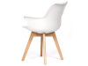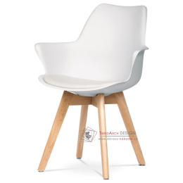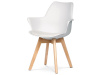 Nábytek zahalený do bílého odstínu je vyrobený z vysoce kvalitního plastu, který zajišťuje odolnost a pevnost. Hladká potahová látka z ekokůže nabízí pohodlné polstrování sedadla, které prezentuje pečlivé řemeslné zpracování. Jídelní židle stojí na masivních dřevěných nohách v hnědé barvě a vykazuje harmonický kontrast, který pozvedne interiér. Základna židle slibuje neochvějnou stabilitu přizpůsobenou soukromým domácnostem i pracovnímu prostředí. Židle se bez problémů kombinuje s jakýmkoli vybraným stolem a skvěle se hodí do rozmanitých prostor. Jídelní židle bezvadně snoubí funkčnost a styl a vyjadřuje sofistikovanost jejího majitele. Spojuje v sobě praktické rozměry, které snadno pojmou vaše hosty.