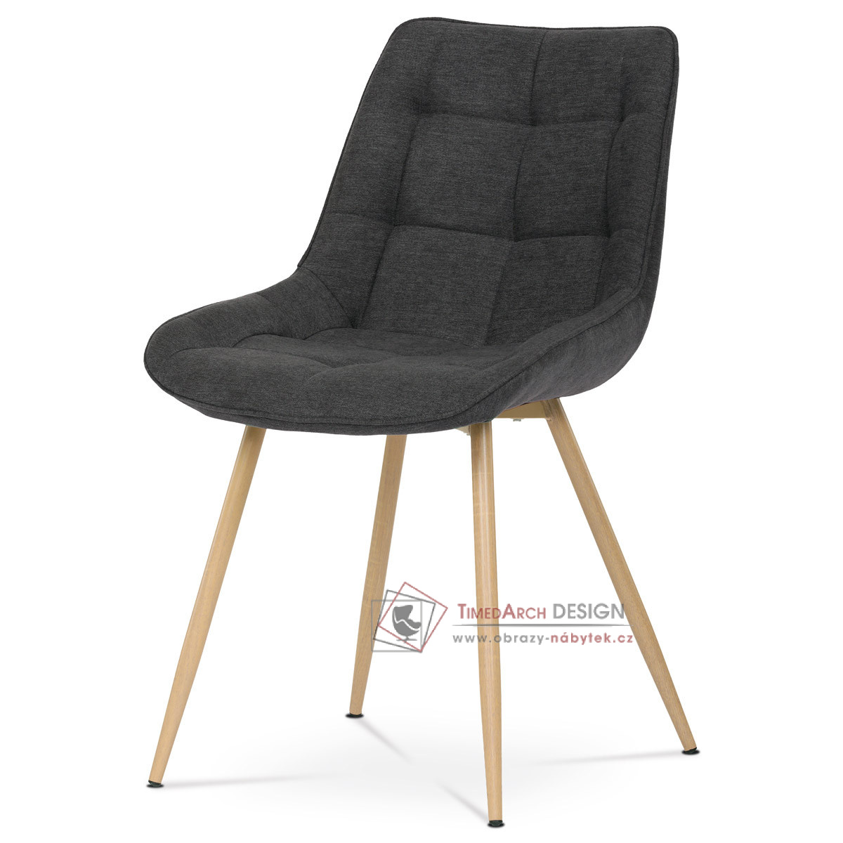 Sedací část je zaoblená a má vyvýšené boky, plynule přecházející do opěráku. Polstrování je z kvalitní PU pěny. Čtyřnohá kovová podnož je v 3D dekoru dub. Nohy jsou kruhového průřezu a kónické, ukončené černými platovými kluzáky. Celá podnož je svařená a dodávána jako celek, nehrozí tedy občasné dotahování šroubů jako u podnože šroubované.Toto vše působí nejen jako stylový designový prvek, ale dělá židli velmi pevnou, pohodlnou a praktickou na kratší i delší posezení. Svým provedením ve Skandinávském stylu a decentní barevností se židle hodí nejen k jídelnímu stolu, ale i jako součást pracoven či konferenčních místností.