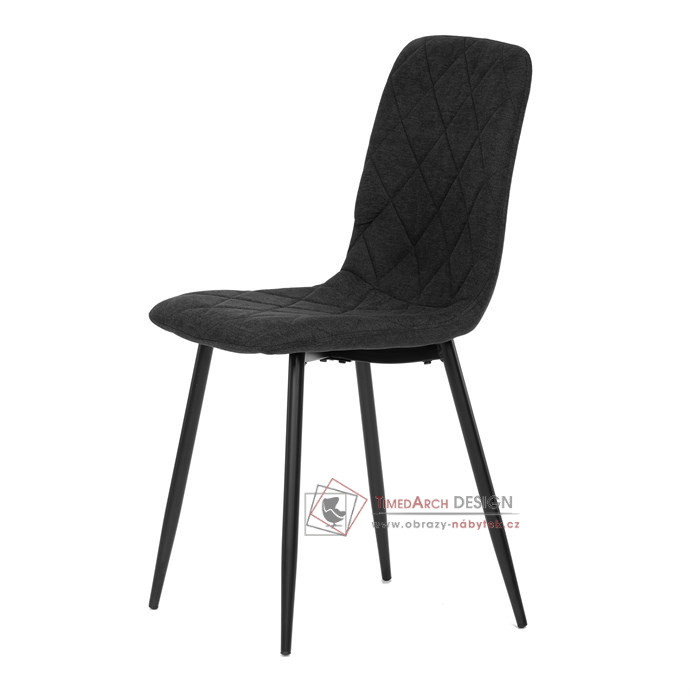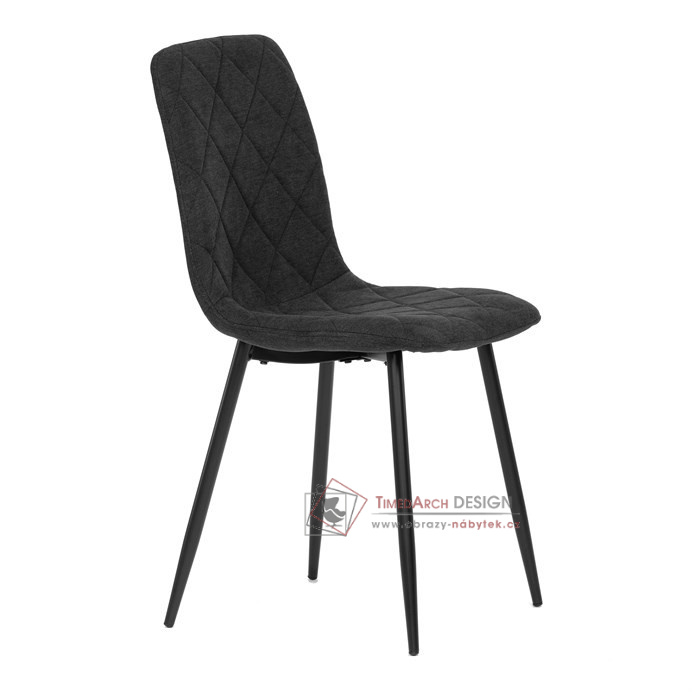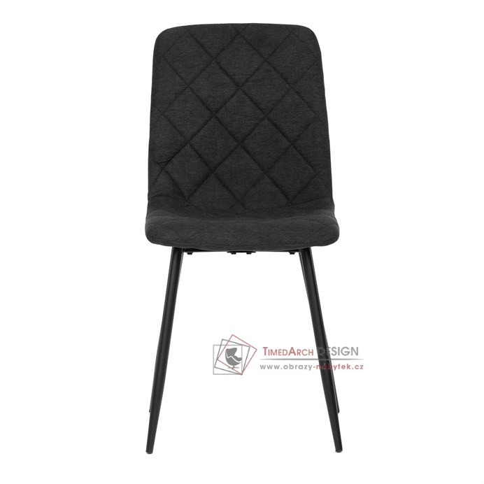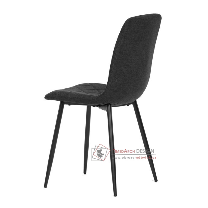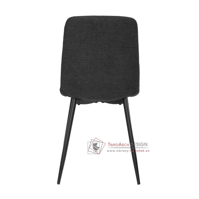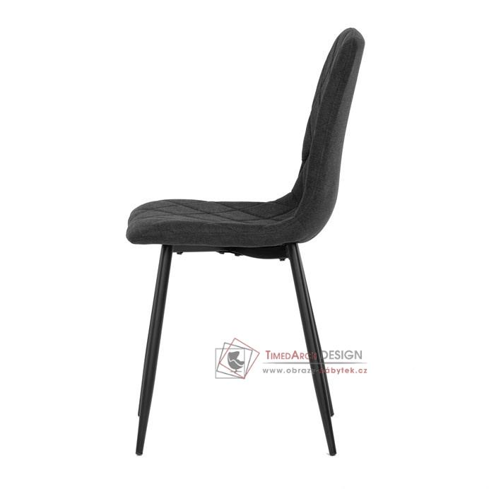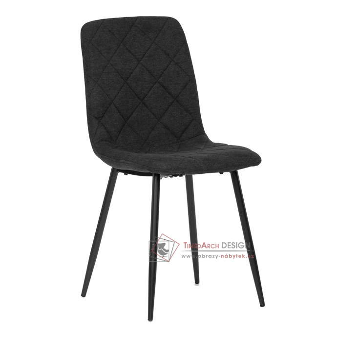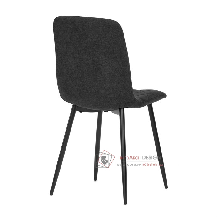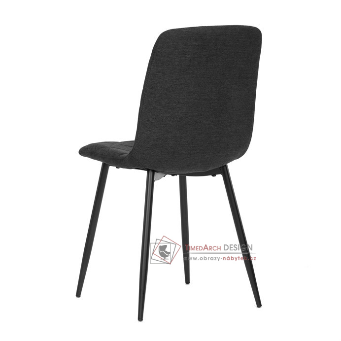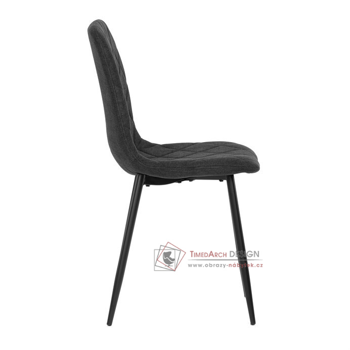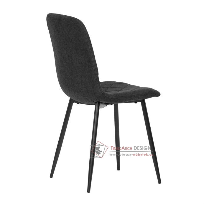 Moderní, stylová a pohodlná – to jsou hlavní atributy této šedé jídelní židle s látkovým potahem a černými kovovými nohami.