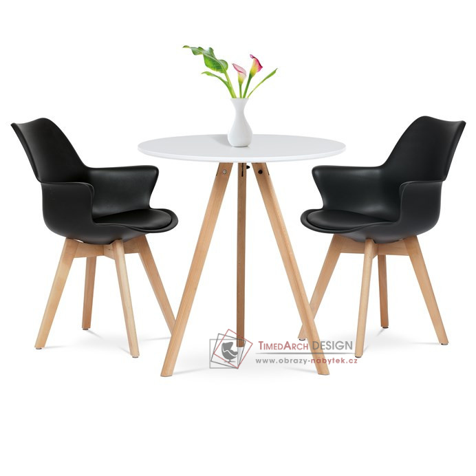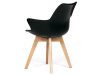 Nábytek zahalený do černého odstínu je vyrobený z vysoce kvalitního plastu, který zajišťuje odolnost a pevnost. Hladká potahová látka z ekokůže nabízí pohodlné polstrování sedadla, které prezentuje pečlivé řemeslné zpracování. Jídelní židle stojí na masivních dřevěných nohách v hnědé barvě a vykazuje harmonický kontrast, který pozvedne interiér. Základna židle slibuje neochvějnou stabilitu přizpůsobenou soukromým domácnostem i pracovnímu prostředí. Židle se bez problémů kombinuje s jakýmkoli vybraným stolem a skvěle se hodí do rozmanitých prostor. Jídelní židle bezvadně snoubí funkčnost a styl a vyjadřuje sofistikovanost jejího majitele. Spojuje v sobě praktické rozměry, které snadno pojmou vaše hosty.