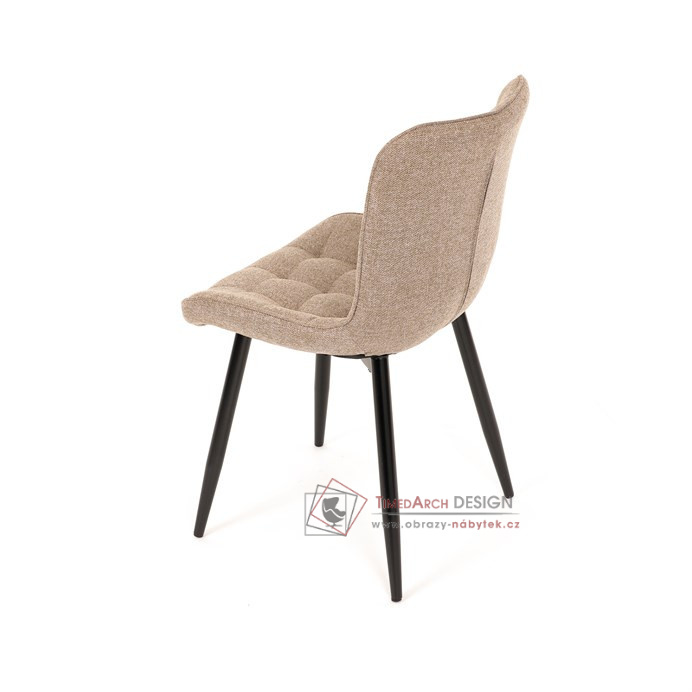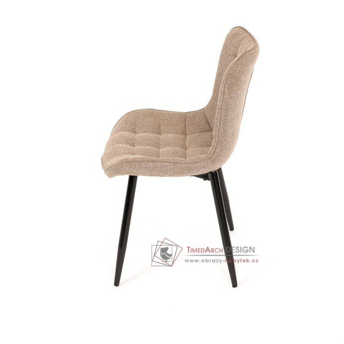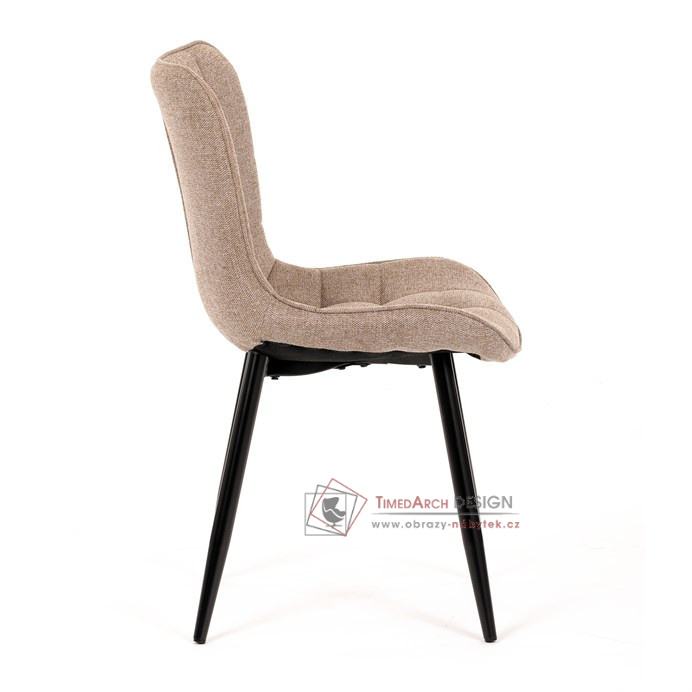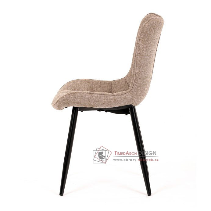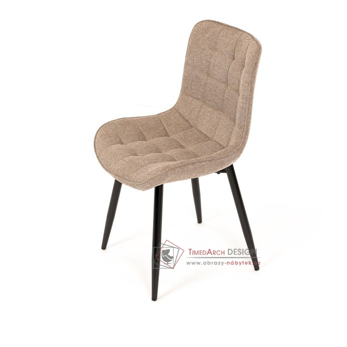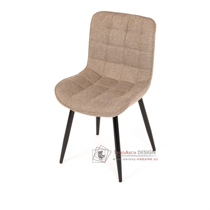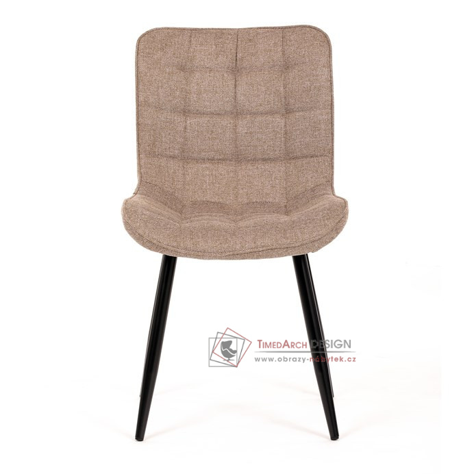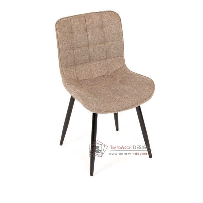 Hnědé čalounění z kvalitní látky je nejen příjemné na dotek, ale díky ozdobnému prošití do čtverců také vyniká esteticky. Stabilitu a trvanlivost zajišťují kovové nohy, které dodávají moderní vzhled a dlouhou životnost. Tato židle bez područek kombinuje funkčnost a styl pro každý interiér.
