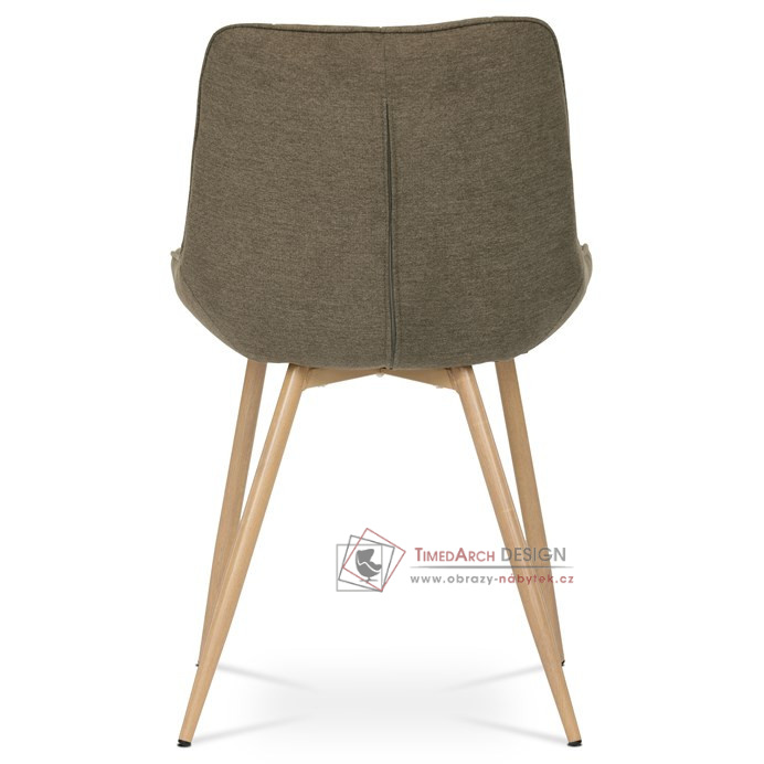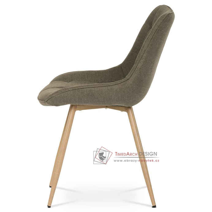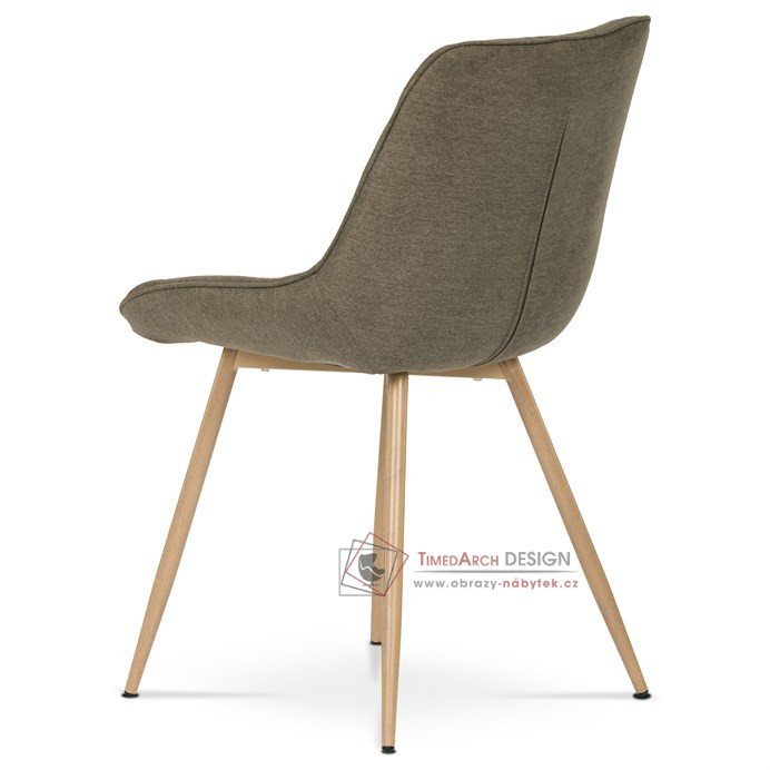 Sedací část je zaoblená a má vyvýšené boky, plynule přecházející do opěráku. Polstrování je z kvalitní PU pěny. Čtyřnohá kovová podnož je v 3D dekoru dub. Nohy jsou kruhového průřezu a kónické, ukončené černými platovými kluzáky. Celá podnož je svařená a dodávána jako celek, nehrozí tedy občasné dotahování šroubů jako u podnože šroubované.Toto vše působí nejen jako stylový designový prvek, ale dělá židli velmi pevnou, pohodlnou a praktickou na kratší i delší posezení. Svým provedením ve Skandinávském stylu a decentní barevností se židle hodí nejen k jídelnímu stolu, ale i jako součást pracoven či konferenčních místností.