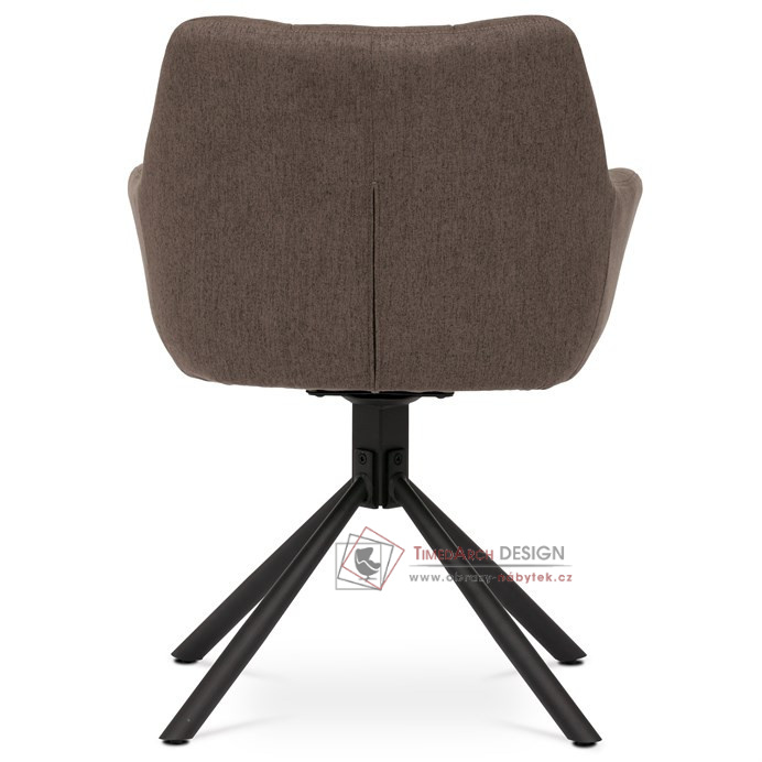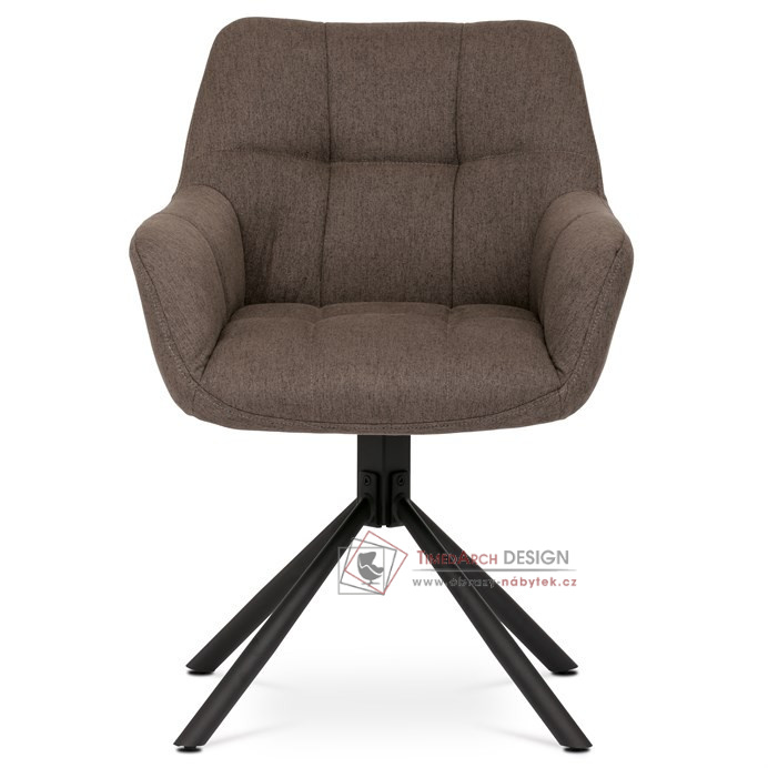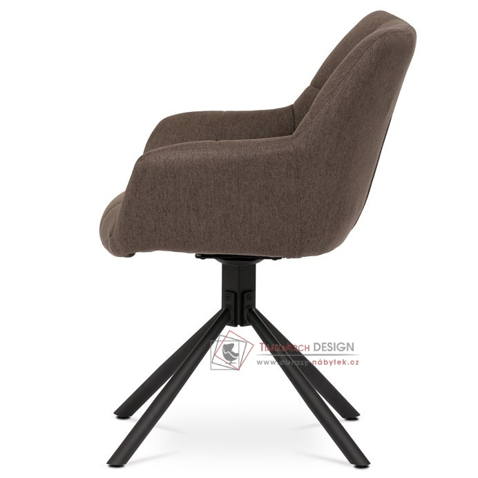Čalounění v hnědém odstínu v kombinaci s prošívanými detaily vytváří luxusní vzhled, který se skvěle hodí do obývacího pokoje, pracovny nebo kanceláře. Stabilní kovová podnož v černé barvě zajišťuje pevnost a odolnost, zatímco otočný mechanismus umožňuje flexibilní pohyb a komfortní užívání. Ergonomicky tvarovaný sedák s područkami poskytuje vynikající oporu a pohodlí, díky čemuž je toto křeslo ideální volbou pro relaxaci i pracovní činnosti.