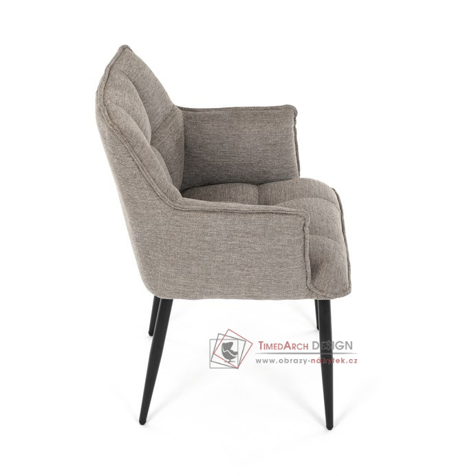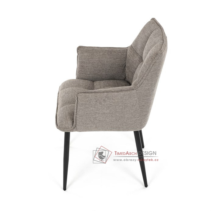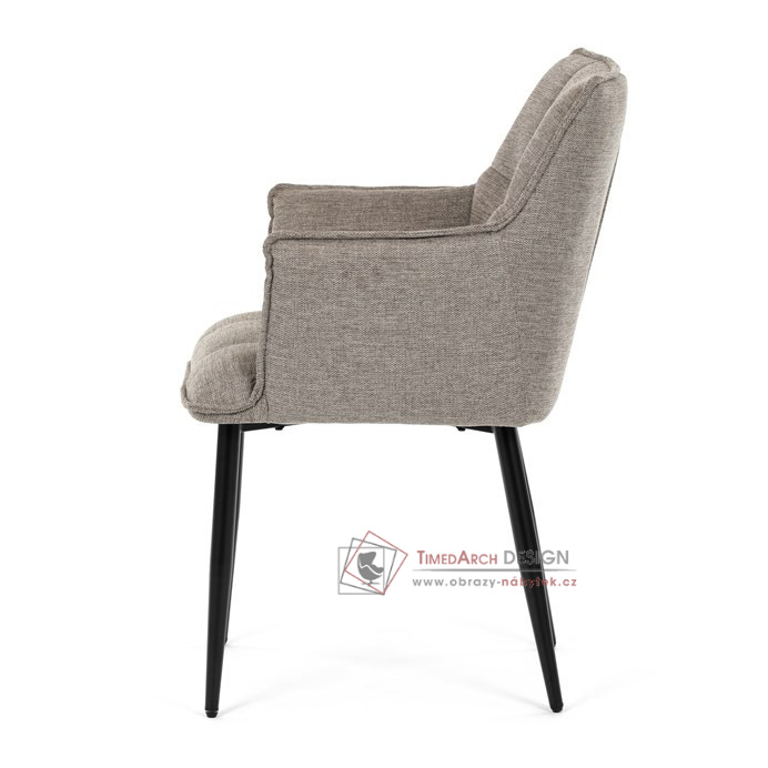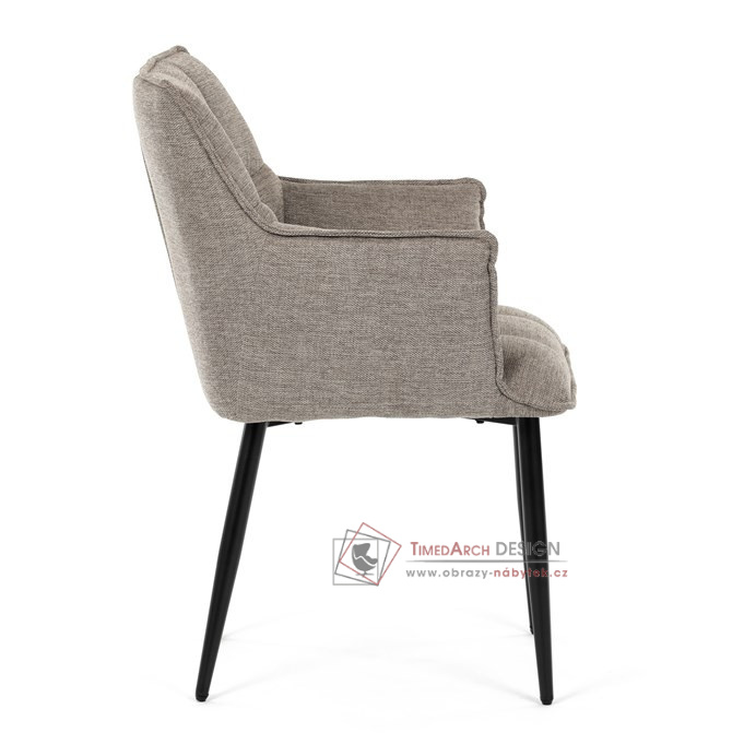 Elegantní béžové čalounění z vodoodpudivé látky zajišťuje snadnou údržbu a odolnost proti nečistotám, což oceníte v každodenním provozu. Pohodlí při sezení zaručuje měkká PU pěna a integrované područky, které podporují správnou ergonomii. Stabilitu zajišťují čtyři kovové nohy v černém provedení, které podtrhují moderní vzhled. Tato židle skvěle doplní jakýkoliv jídelní prostor a přinese do něj sofistikovaný styl a pohodlí.