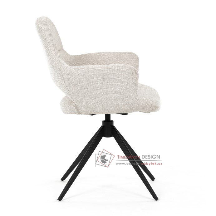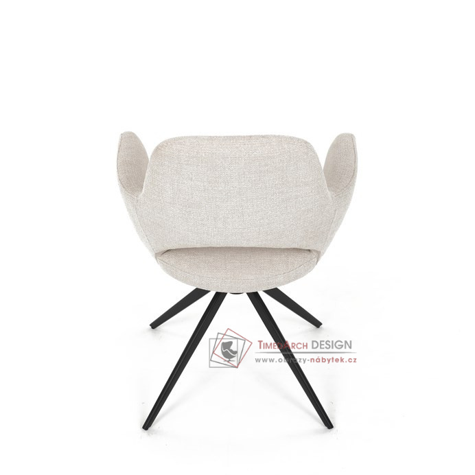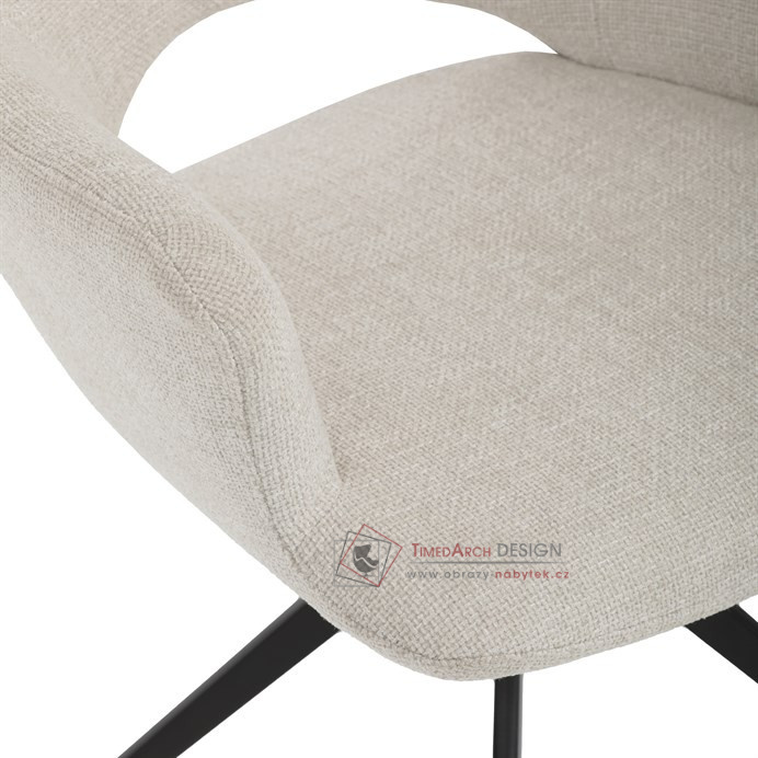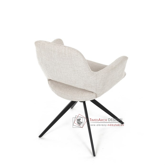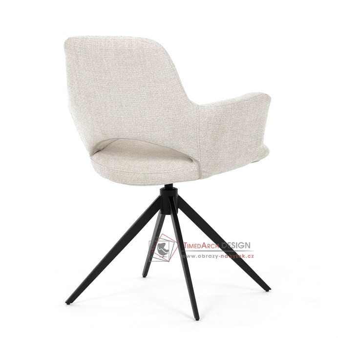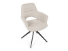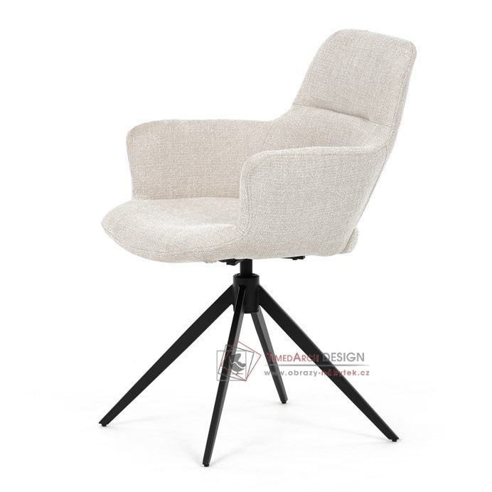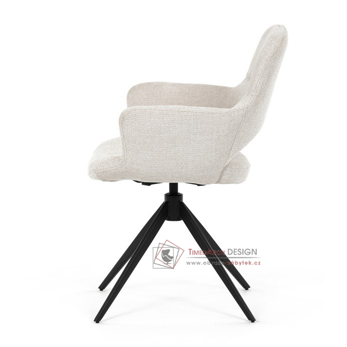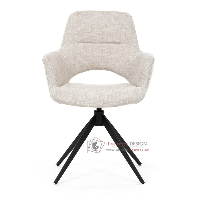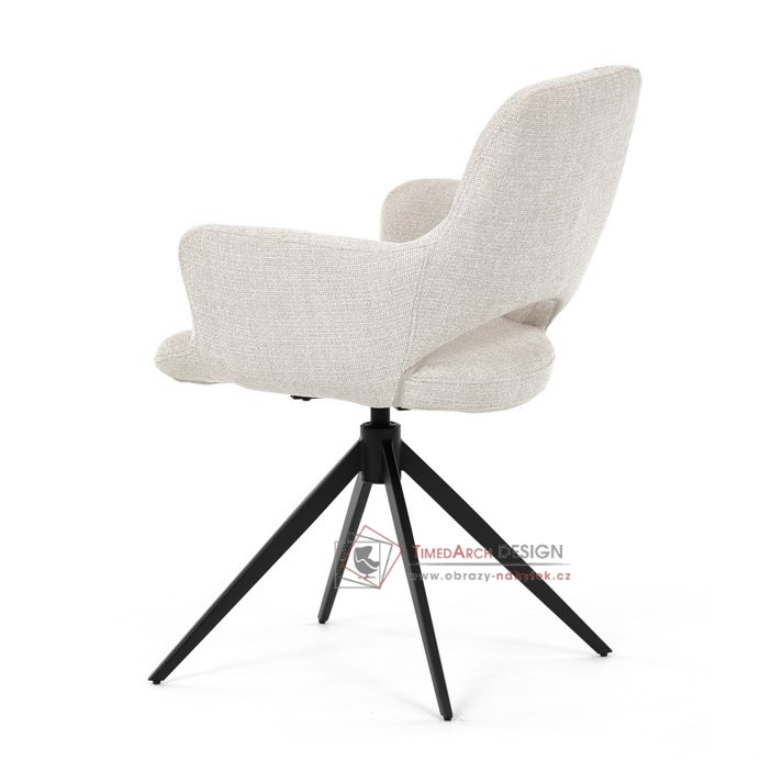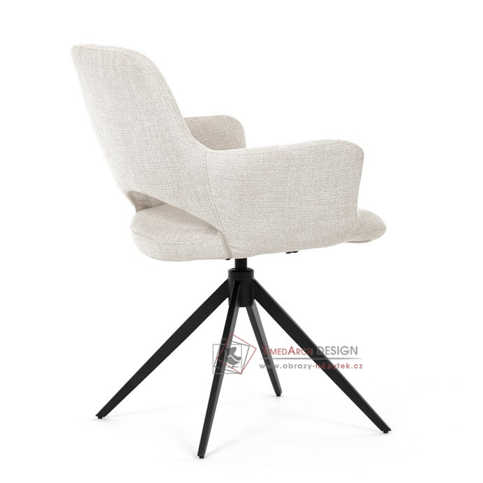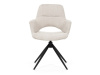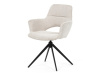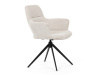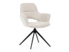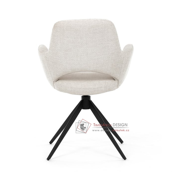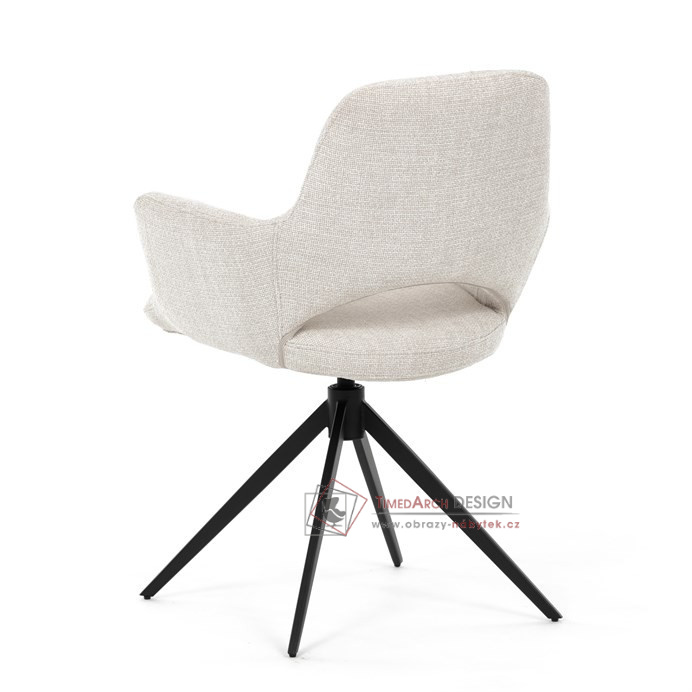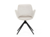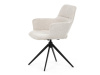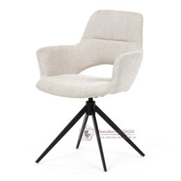 Čalounění z měkké látky s výplní z PU pěny zajišťuje komfortní sezení, zatímco černá kovová základna dodává židli stabilitu a stylový vzhled. Vratný otočný mechanismus 360° umožňuje snadné otáčení a automatické vrácení do původní polohy. Židle je vybavena praktickými područkami, které zvyšují pohodlí při sezení. Perfektní volba pro každou jídelnu, která hledá stylový a praktický doplněk.