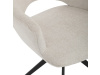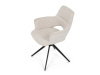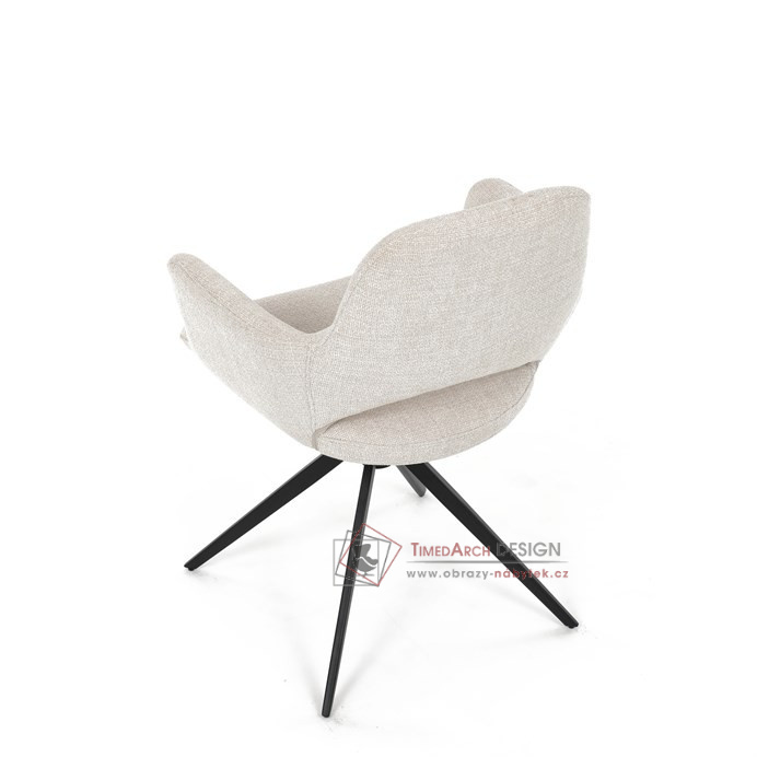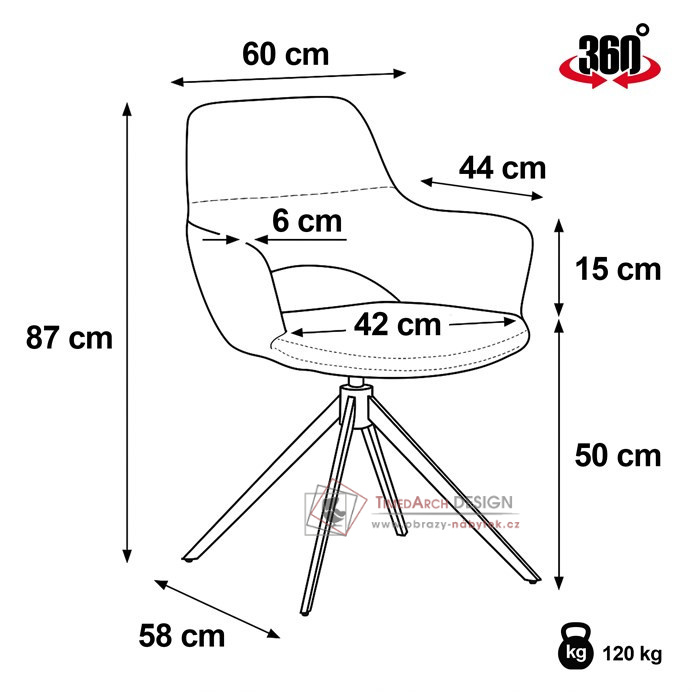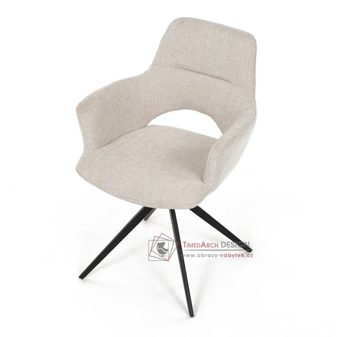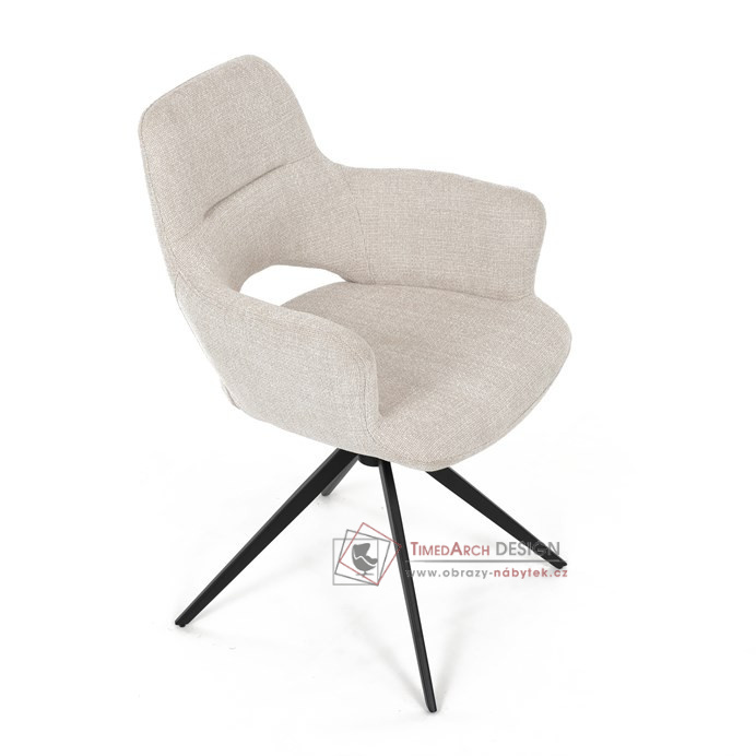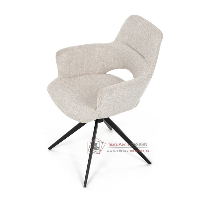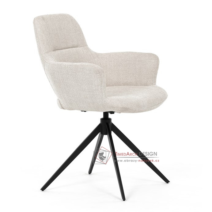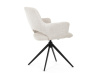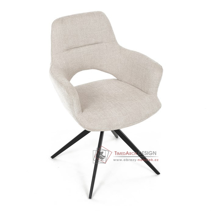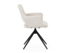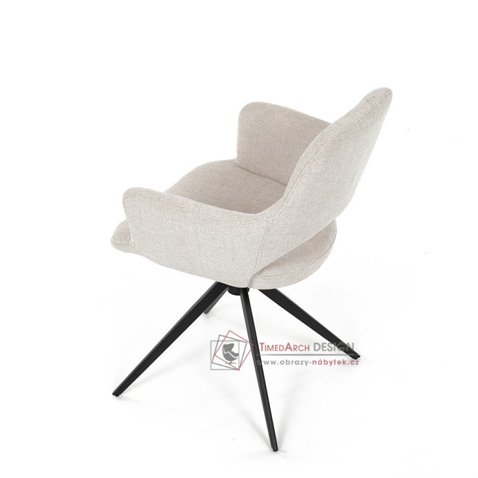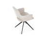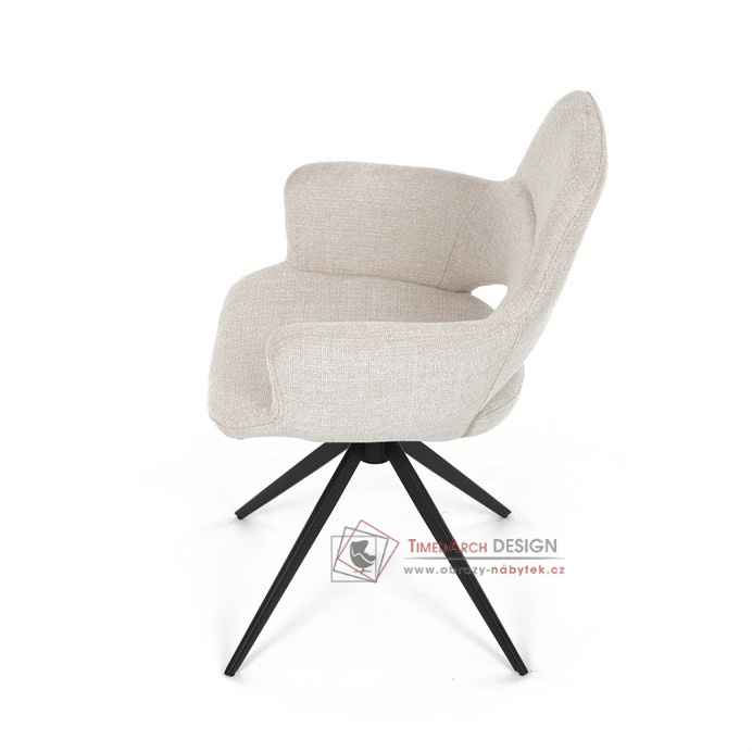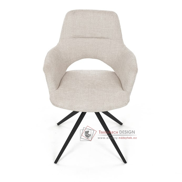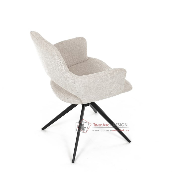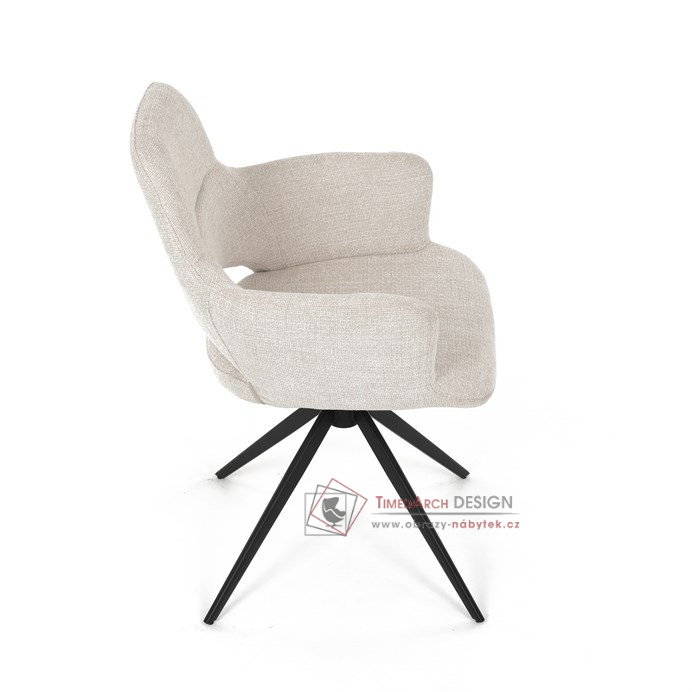 Čalounění z měkké látky s výplní z PU pěny zajišťuje komfortní sezení, zatímco černá kovová základna dodává židli stabilitu a stylový vzhled. Vratný otočný mechanismus 360° umožňuje snadné otáčení a automatické vrácení do původní polohy. Židle je vybavena praktickými područkami, které zvyšují pohodlí při sezení. Perfektní volba pro každou jídelnu, která hledá stylový a praktický doplněk.