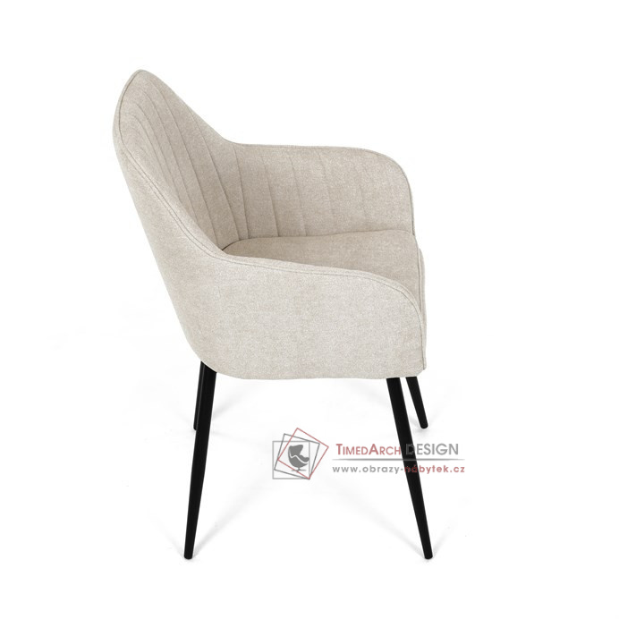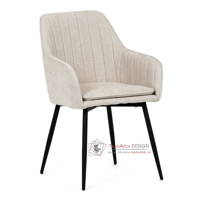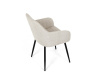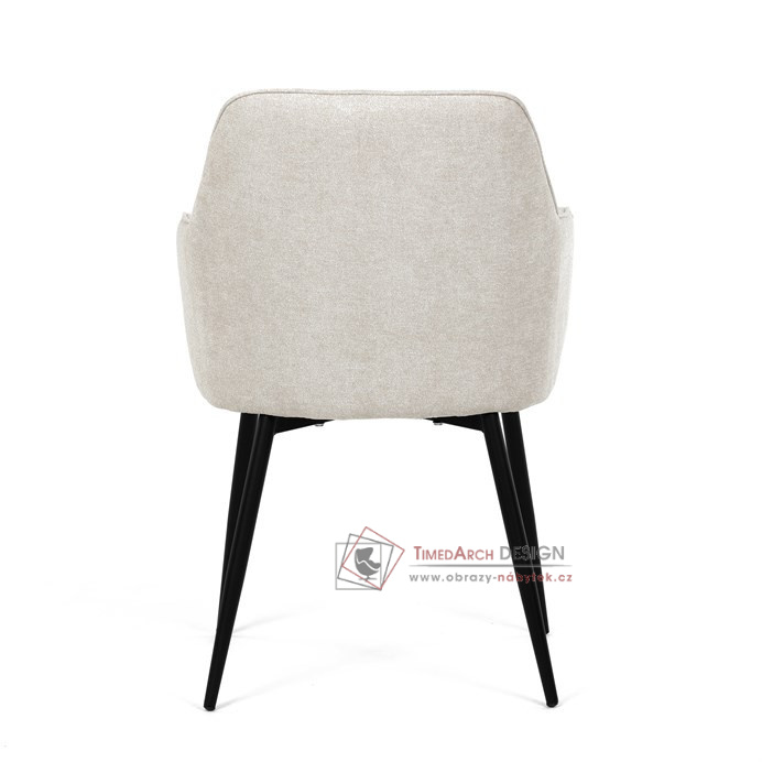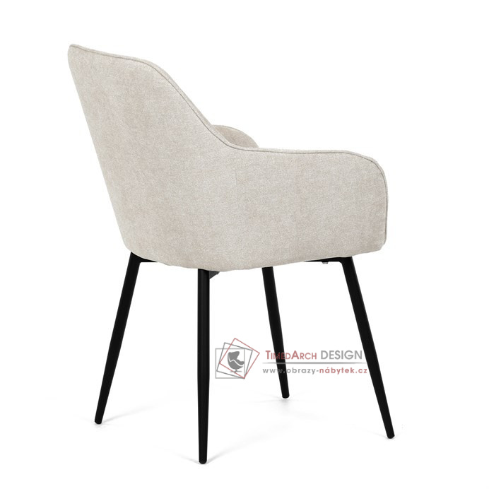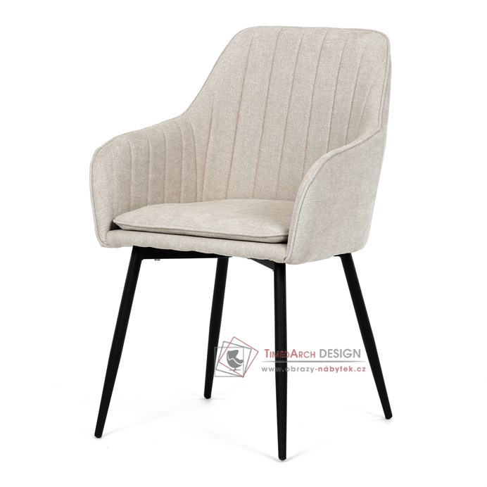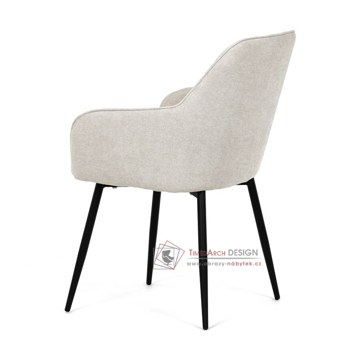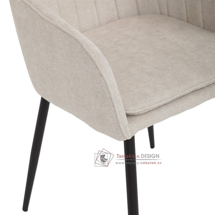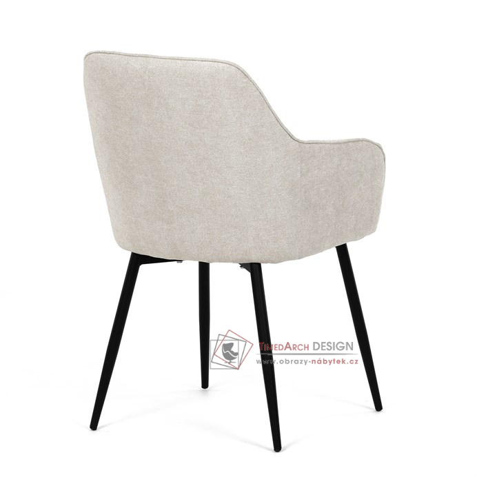 Je čalouněné hladkou béžovou látkou, která je nejen trvanlivá, ale také příjemná na dotek. Komfort při sezení zajistí pohodlné područky a měkká pěnová výplň. Pevná kovová konstrukce černé barvy s s nohami kruhového profilu dodává stabilitu a elegantní vzhled. Toto jídelní křeslo je ideální volbou pro moderní jídelny, kde se snoubí pohodlí s estetikou a dlouhou životností.