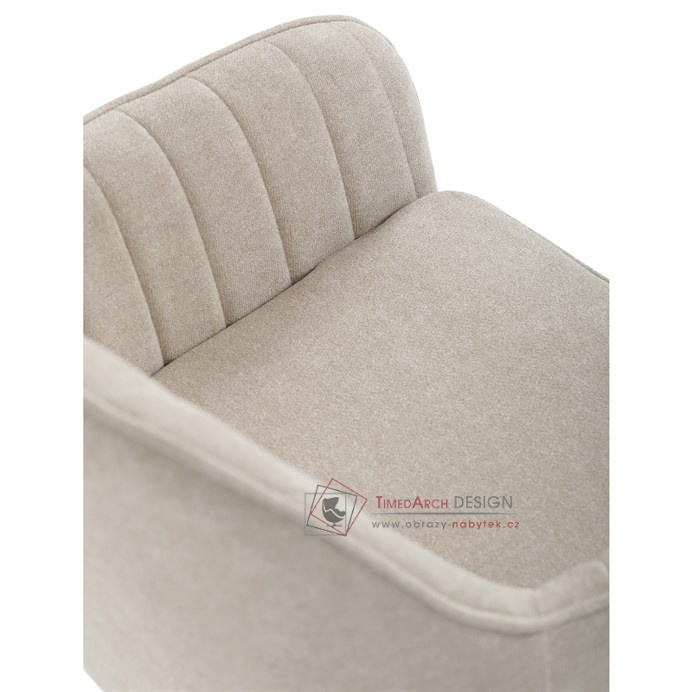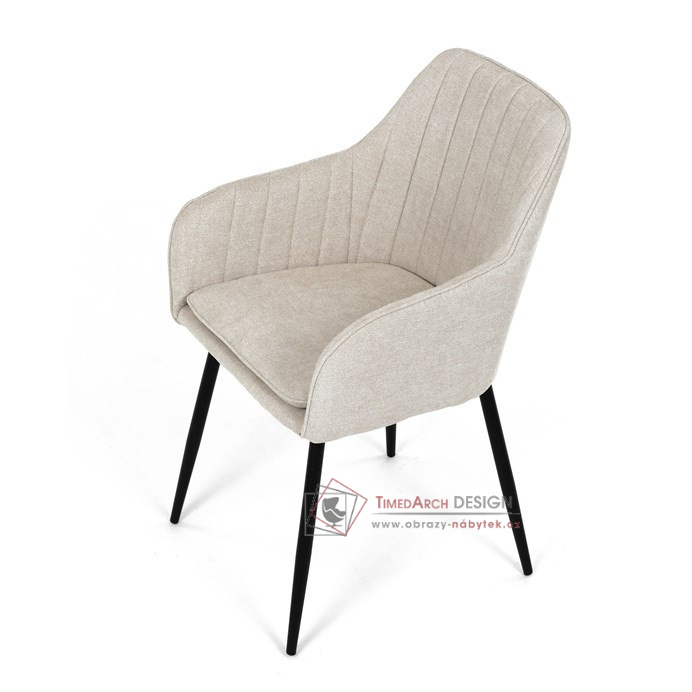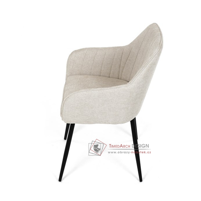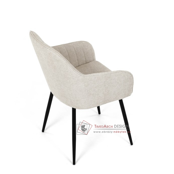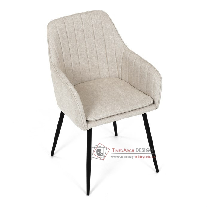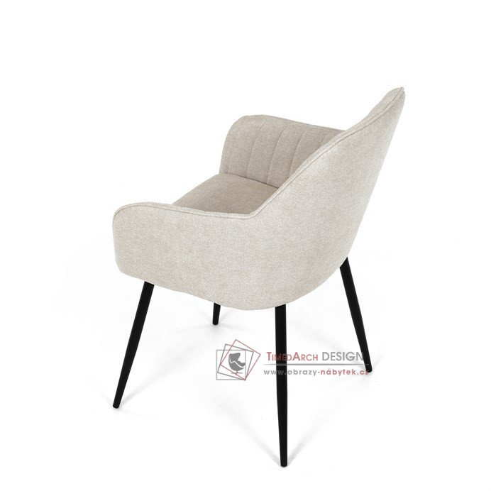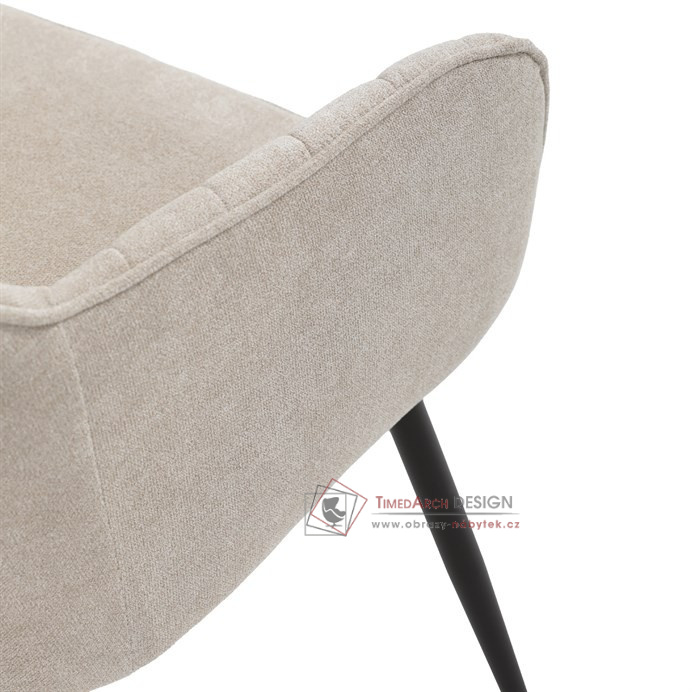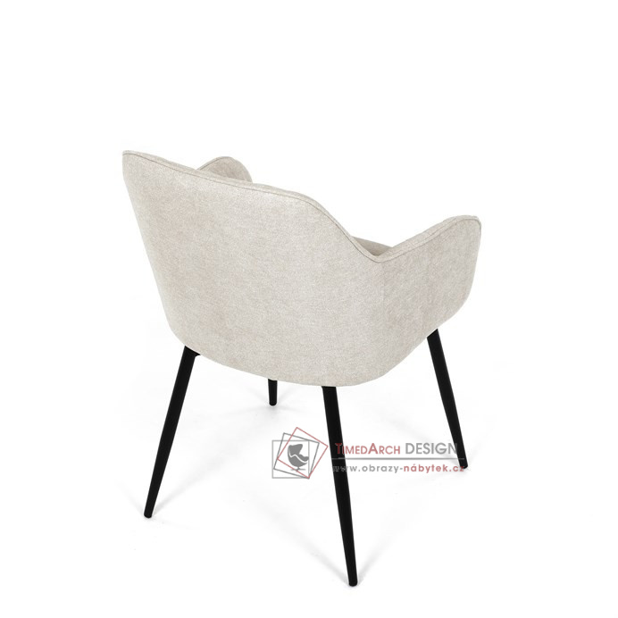 Je čalouněné hladkou béžovou látkou, která je nejen trvanlivá, ale také příjemná na dotek. Komfort při sezení zajistí pohodlné područky a měkká pěnová výplň. Pevná kovová konstrukce černé barvy s s nohami kruhového profilu dodává stabilitu a elegantní vzhled. Toto jídelní křeslo je ideální volbou pro moderní jídelny, kde se snoubí pohodlí s estetikou a dlouhou životností.