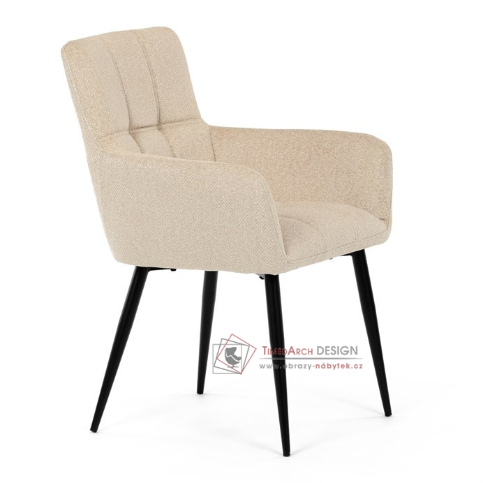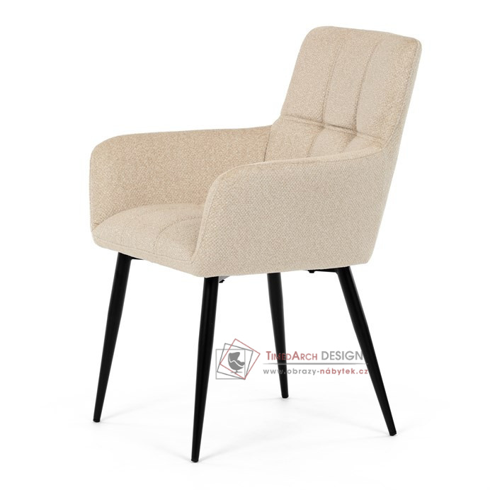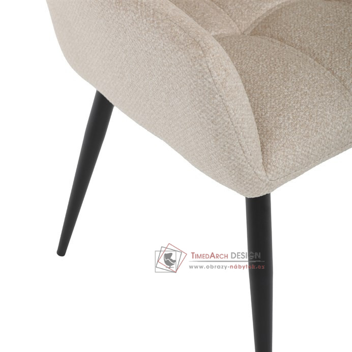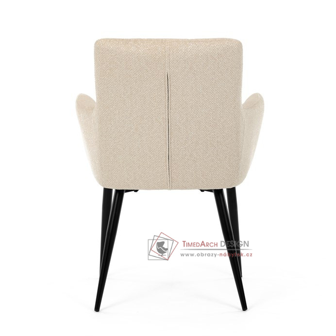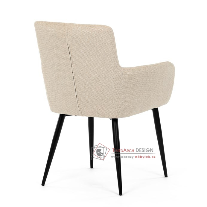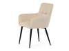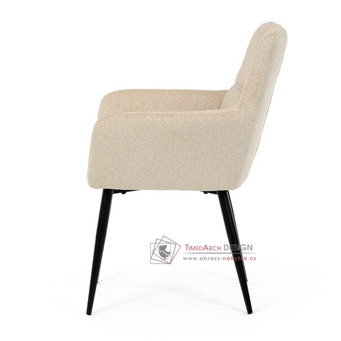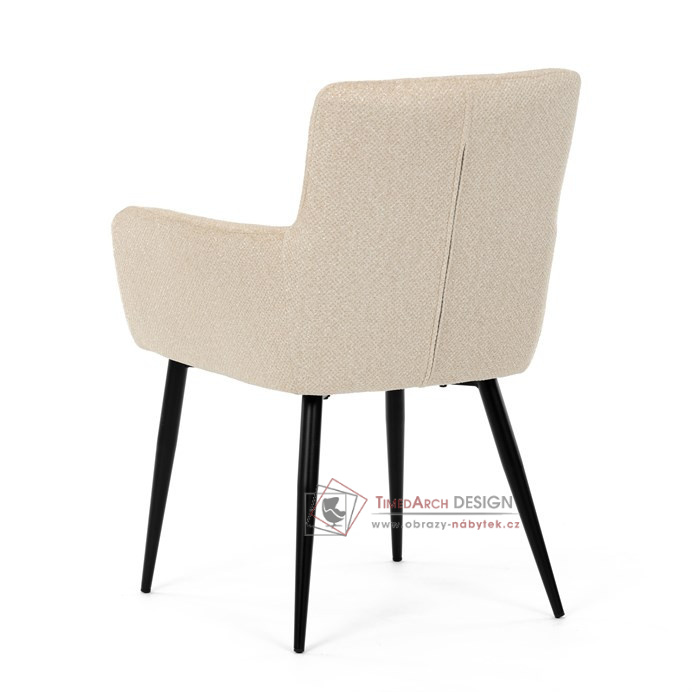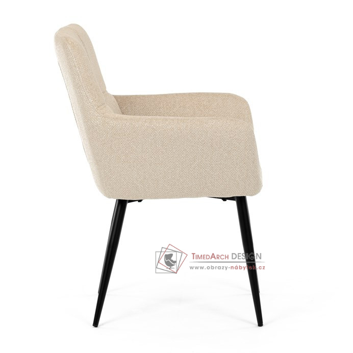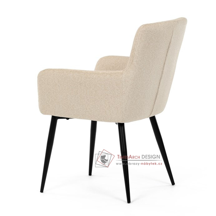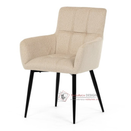 Toto stylová jídelní křeslo nabízí vysoký komfort díky čalounění z kvalitní látky a mekkému sedáku z PU pěny. Černé kovové nohy zajišťují stabilitu a dodávají židli jemný industriální nádech. Komfortní područky a ergonomické provedení oceníte při každém posezení. Křeslo se hodí nejen do domácí jídelny, ale i do restauračních prostor, kde vytvoří útulnou atmosféru.