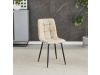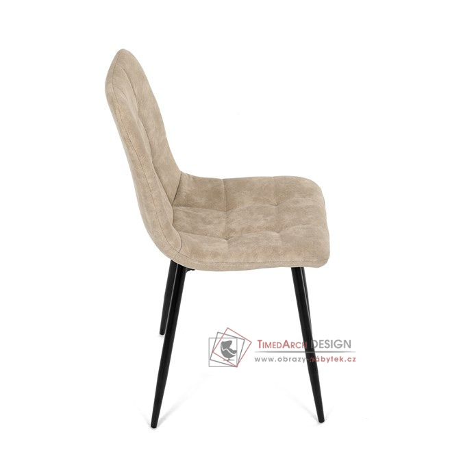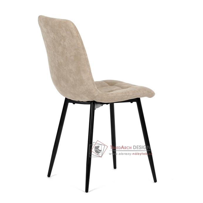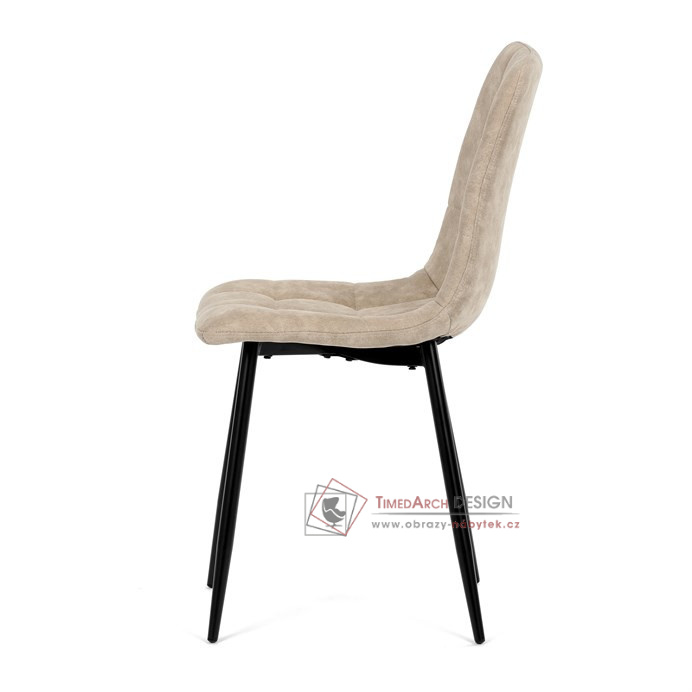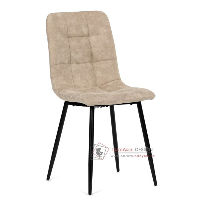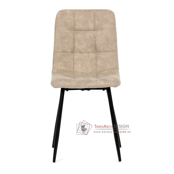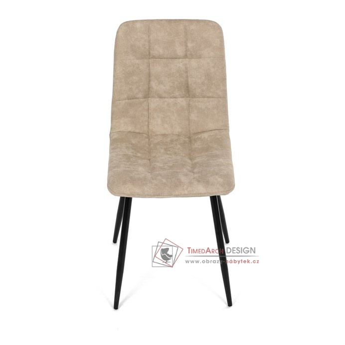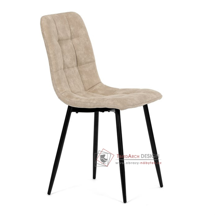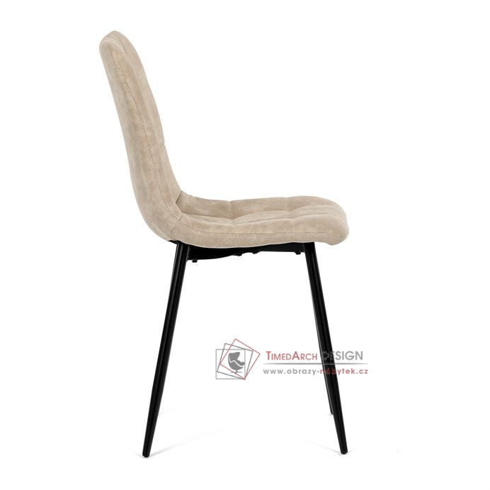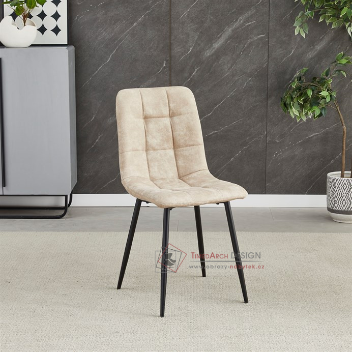 Potah z látky vintage v krémovém odstínu dodává nábytku osobitý charakter, zatímco elegantní čtvercové prošívání podtrhuje její vzhled. Černé kovové nohy poskytují stabilitu a ladí s minimalistickým designem. Komfort při sezení zajišťuje měkké polstrování z PU pěny, díky kterému je židle ideální jak pro každodenní používání, tak pro slavnostní chvíle.