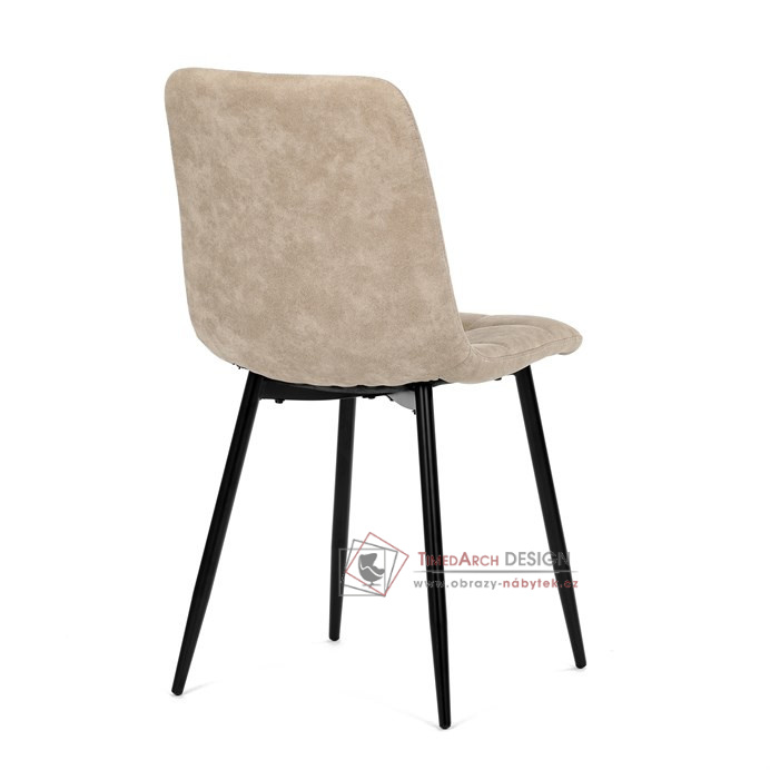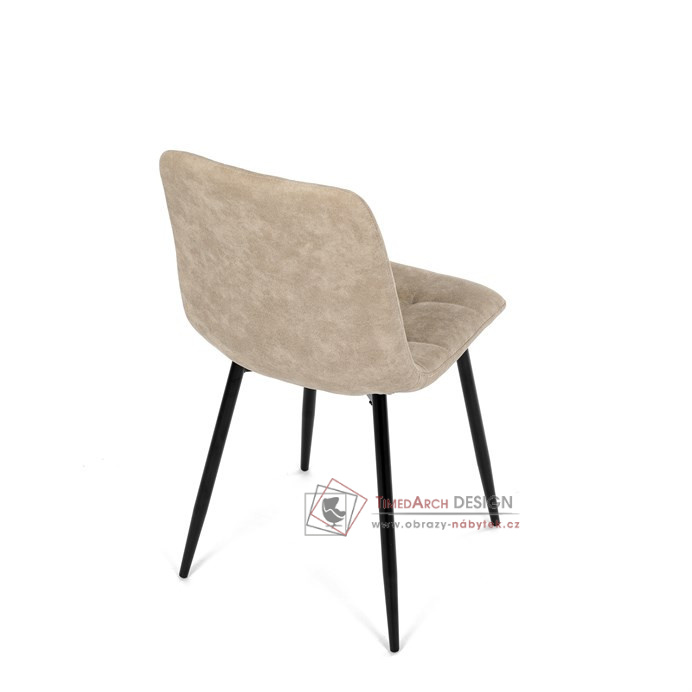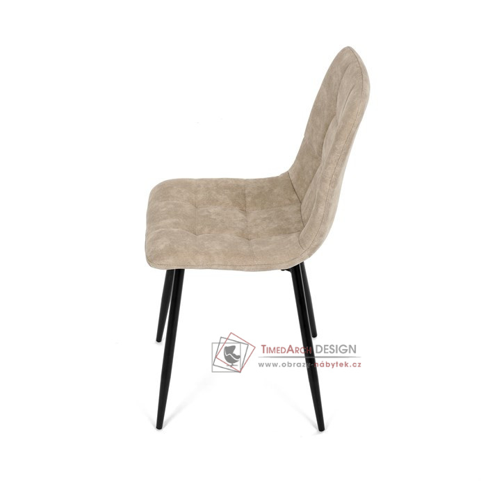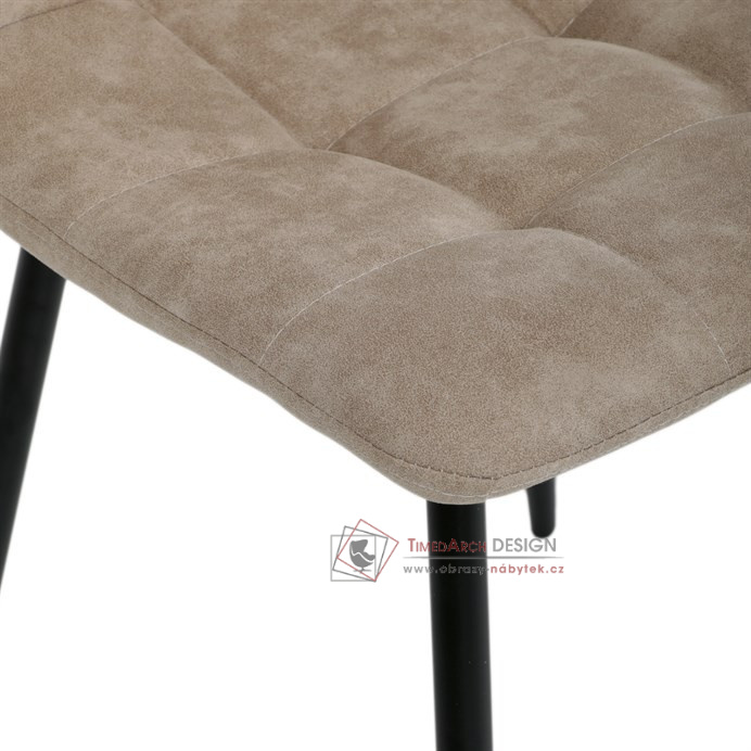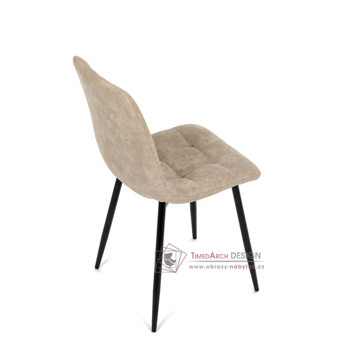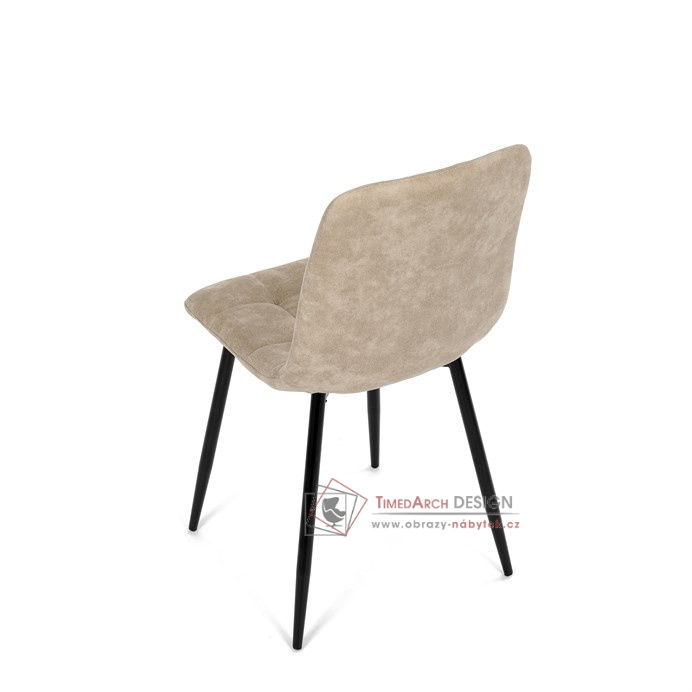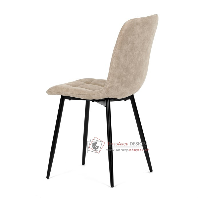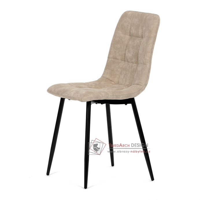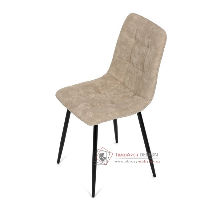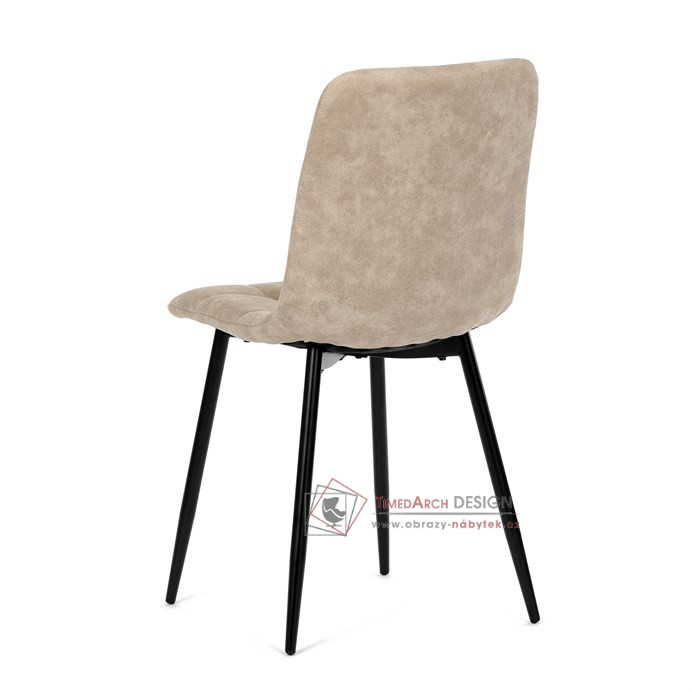 Potah z látky vintage v krémovém odstínu dodává nábytku osobitý charakter, zatímco elegantní čtvercové prošívání podtrhuje její vzhled. Černé kovové nohy poskytují stabilitu a ladí s minimalistickým designem. Komfort při sezení zajišťuje měkké polstrování z PU pěny, díky kterému je židle ideální jak pro každodenní používání, tak pro slavnostní chvíle.