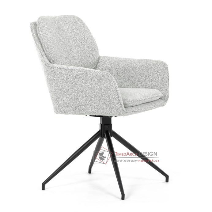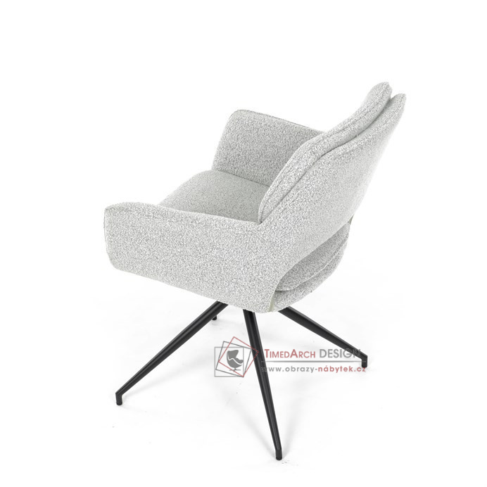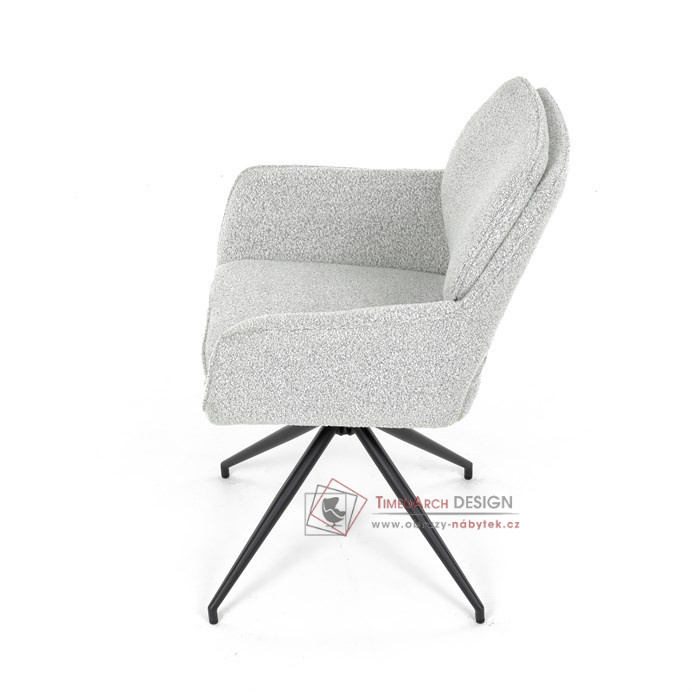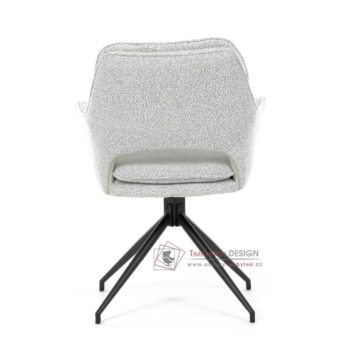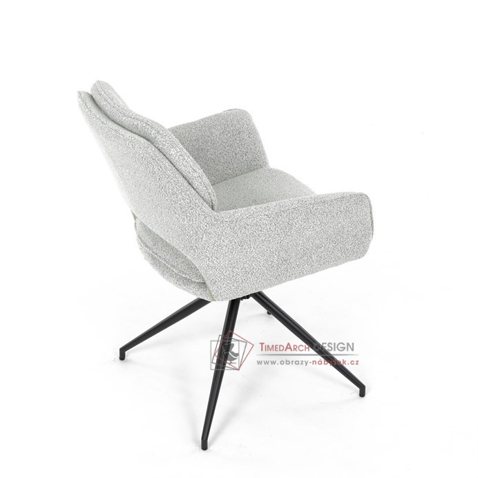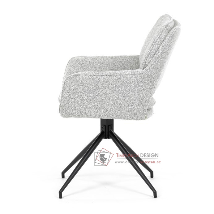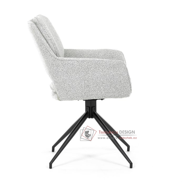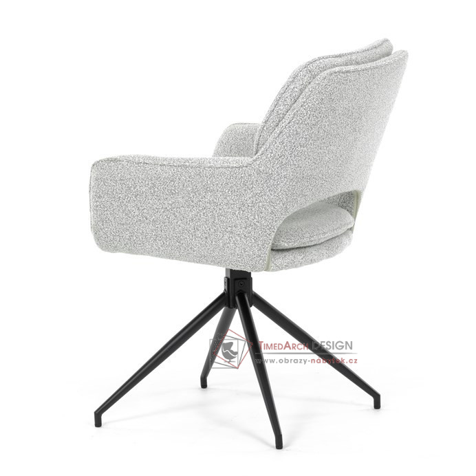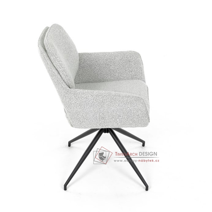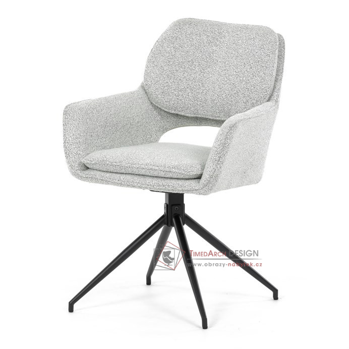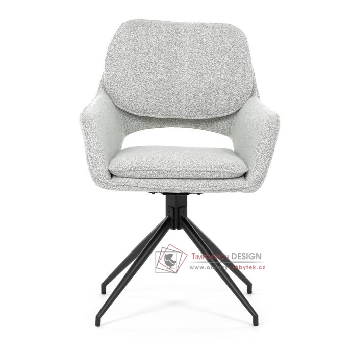Pohodlné čalounění z hladké látky v kombinaci s výplní z PU pěny zajišťuje komfort i při delším sezení. Otočný mechanismus 180° s funkcí resetu vrátí křeslo do původní pozice, což je praktické zejména pro vizuální vzhled jídelny. Kovové nohy s centrálním podnožím zajišťují stabilitu a stylový industriální vzhled. Područky a vysoké opěradlo poskytují oporu pro maximální pohodlí. Toto křeslo je skvělou volbou pro moderní interiéry.