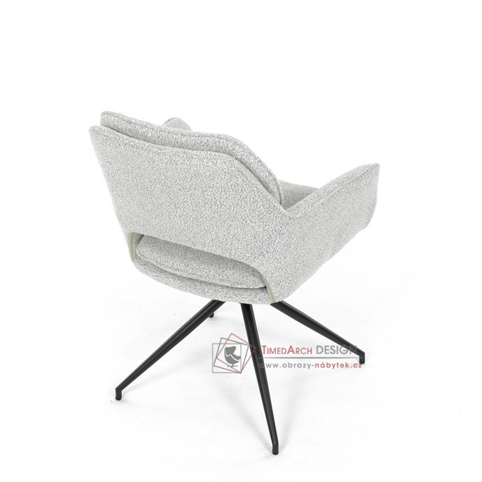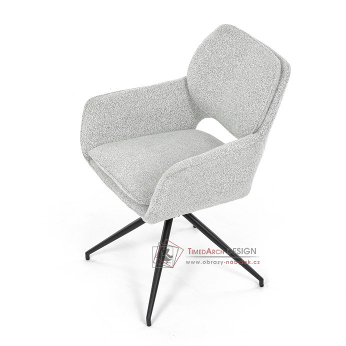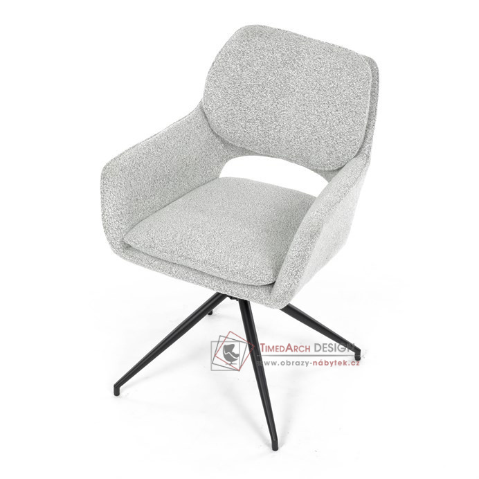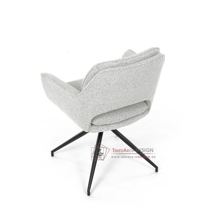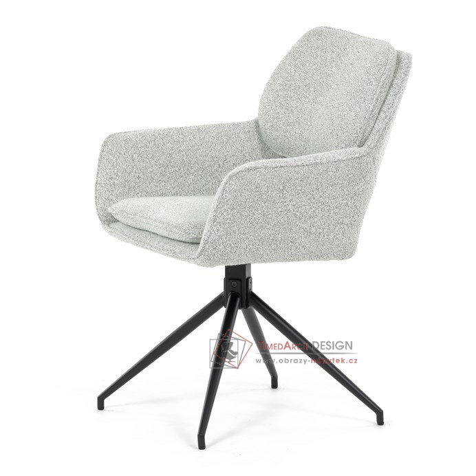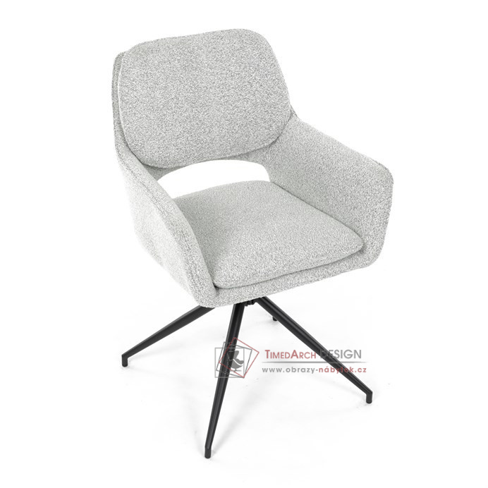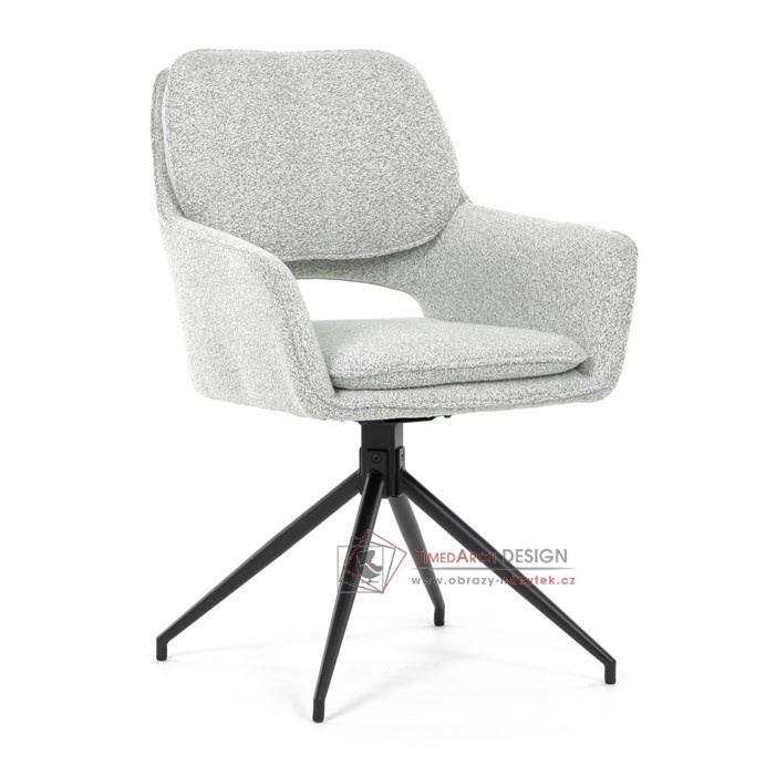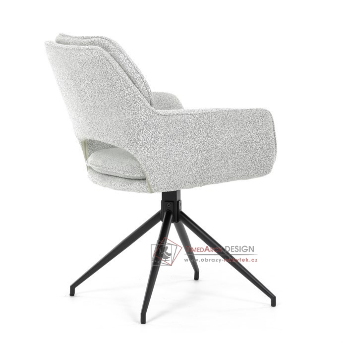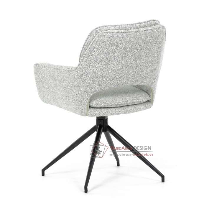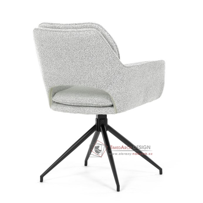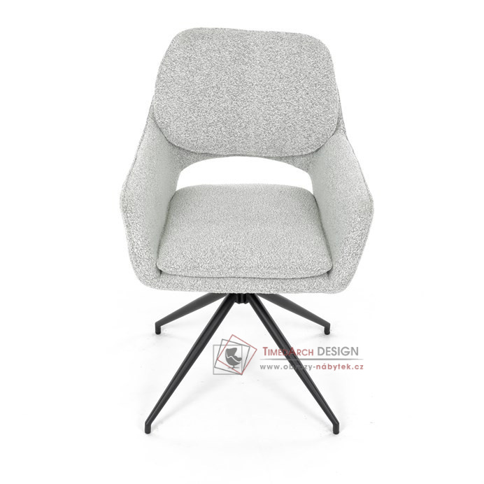 Pohodlné čalounění z hladké látky v kombinaci s výplní z PU pěny zajišťuje komfort i při delším sezení. Otočný mechanismus 180° s funkcí resetu vrátí křeslo do původní pozice, což je praktické zejména pro vizuální vzhled jídelny. Kovové nohy s centrálním podnožím zajišťují stabilitu a stylový industriální vzhled. Područky a vysoké opěradlo poskytují oporu pro maximální pohodlí. Toto křeslo je skvělou volbou pro moderní interiéry.