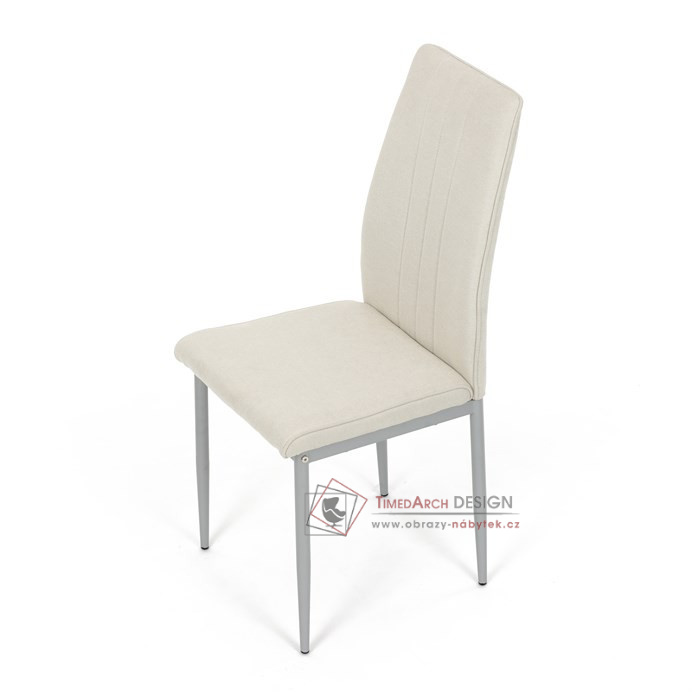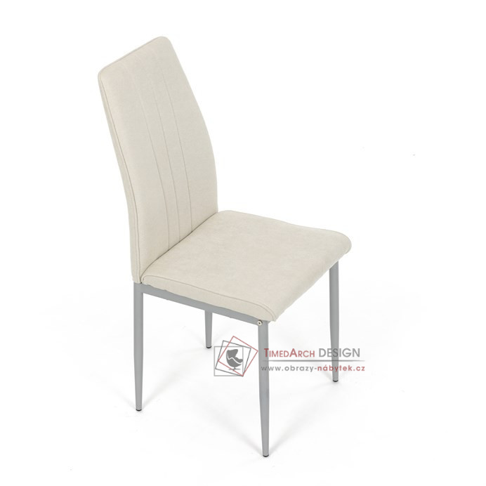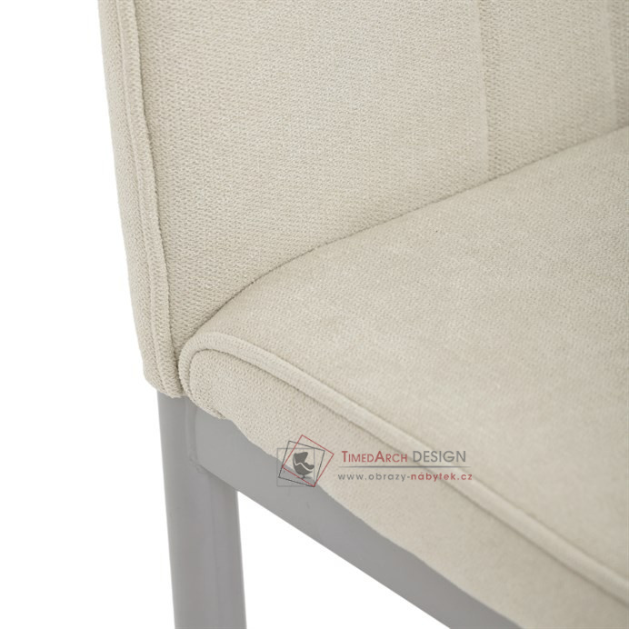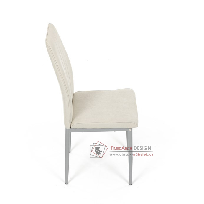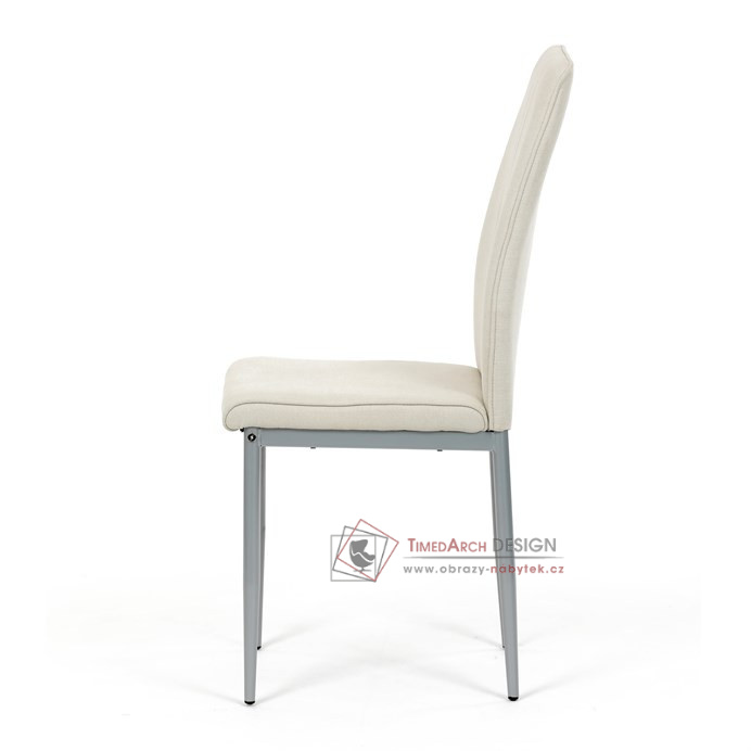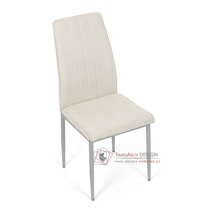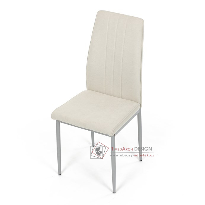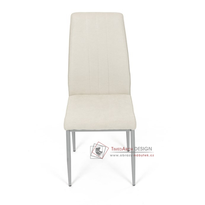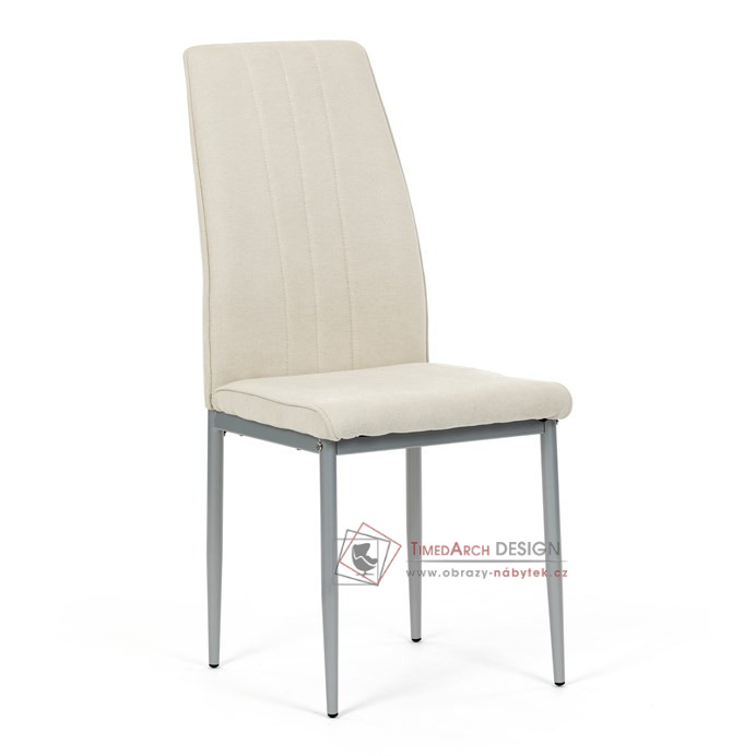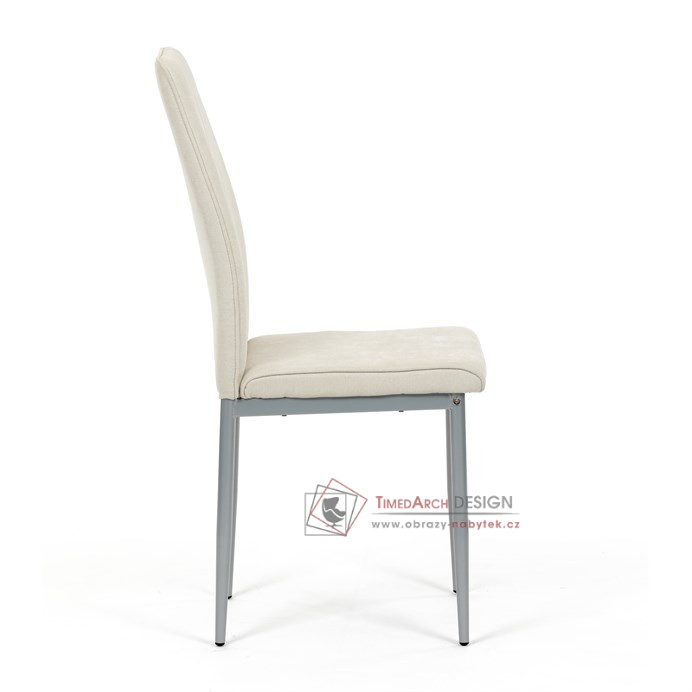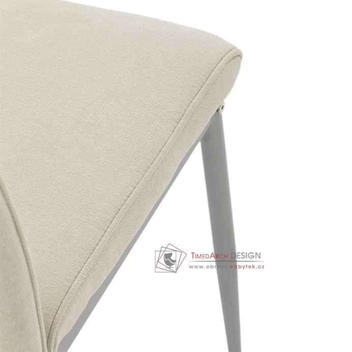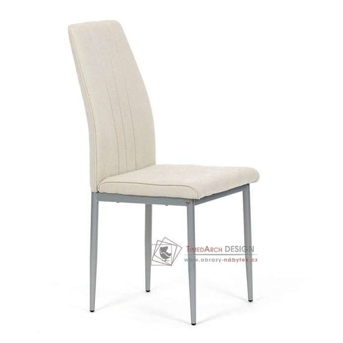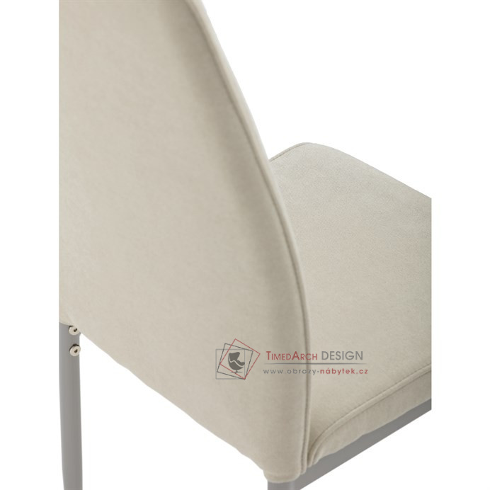 Potah je vyroben z odolné hladké látky v barvě lanýže, který snadno zapadne do různých interiérů. Pohodlí zajišťuje měkká PU pěna ve výplni, zatímco kovové nohy v šedé barvě dodávají stabilitu a pevnost. Elegantní prošívání dodává židli elegantní vzhled. Tento model je skvělou volbou pro moderní i klasické interiéry.