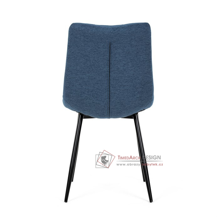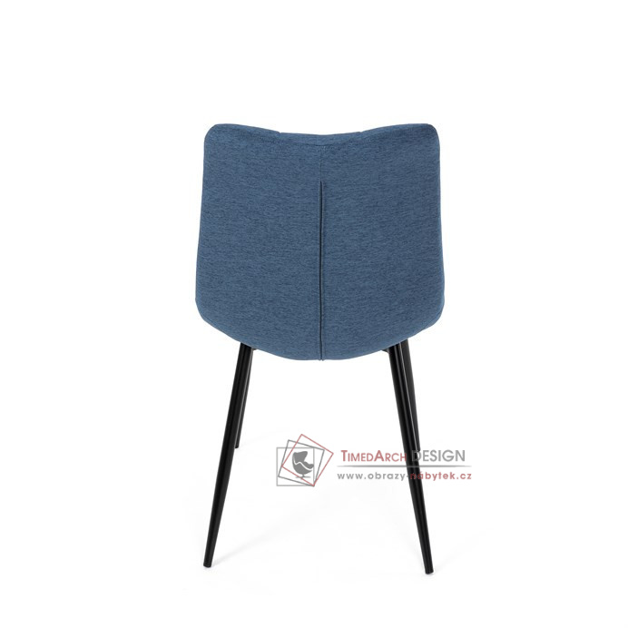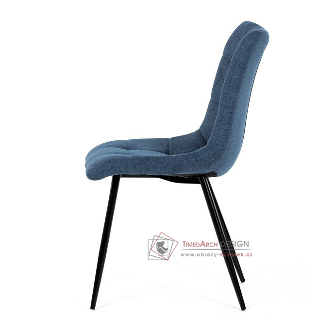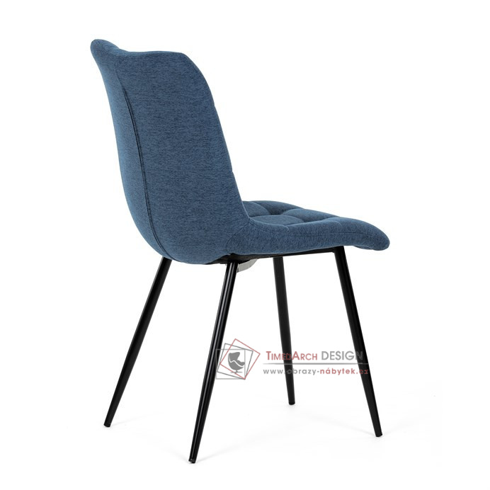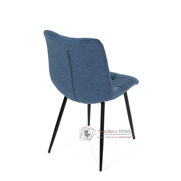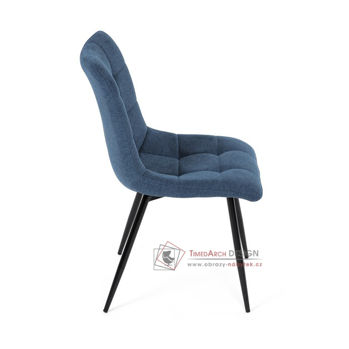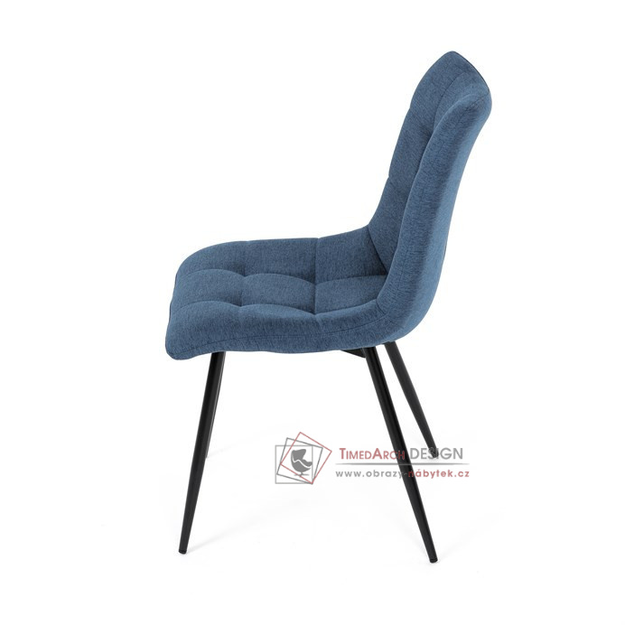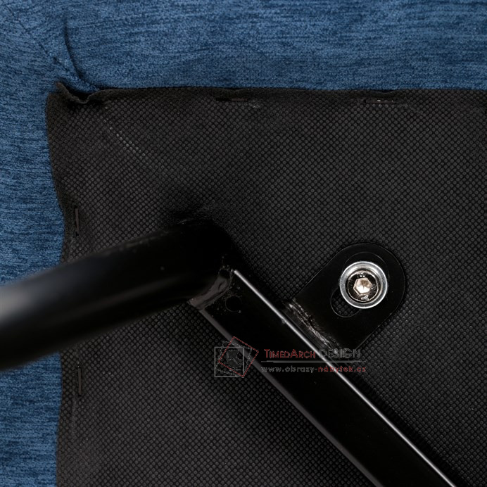 Sedák a opěrák je očalouněný látkou barvy modré se čtvercovým prošitím.