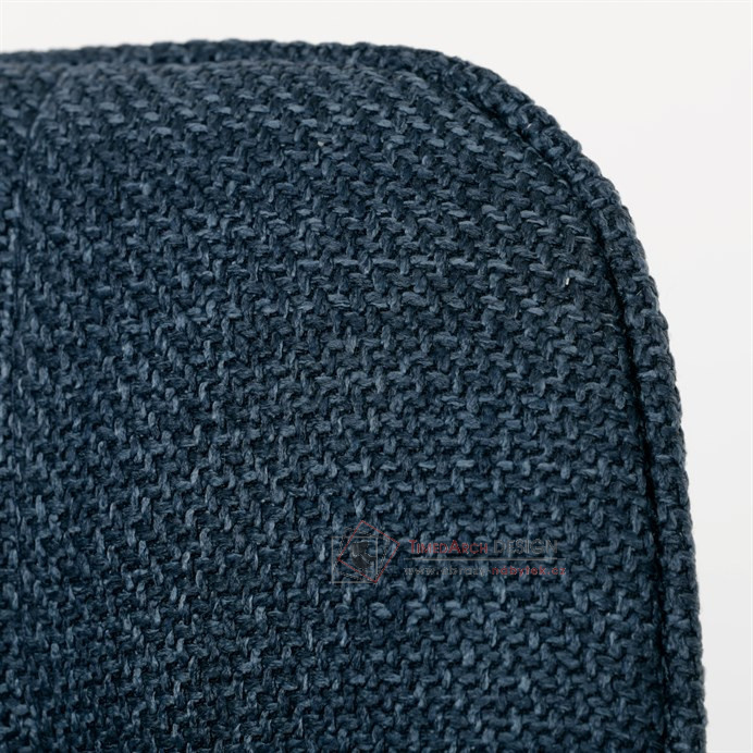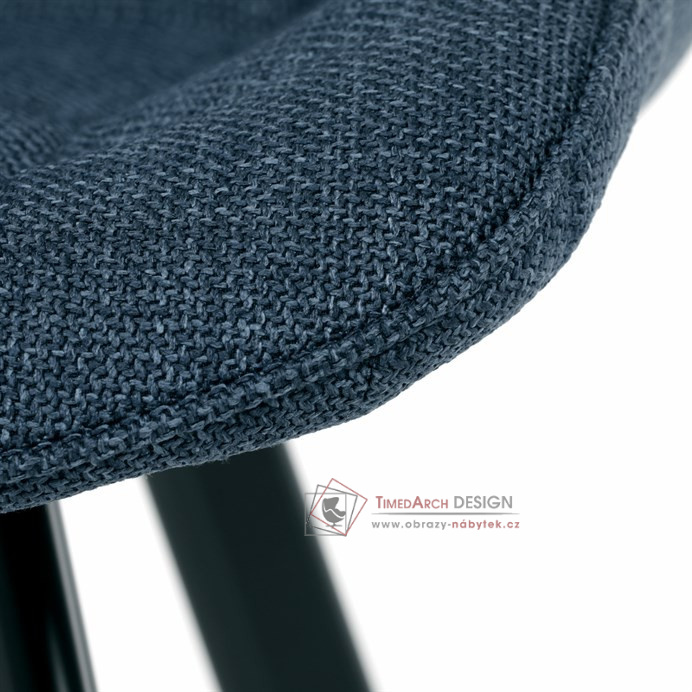 Sedák a opěrák je očalouněný látkou modré barvy.