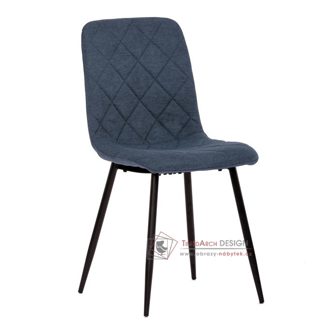 Moderní, stylová a pohodlná – to jsou hlavní atributy této černé jídelní židle s látkovým potahem a černými kovovými nohami.