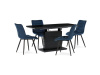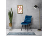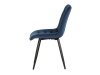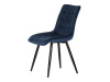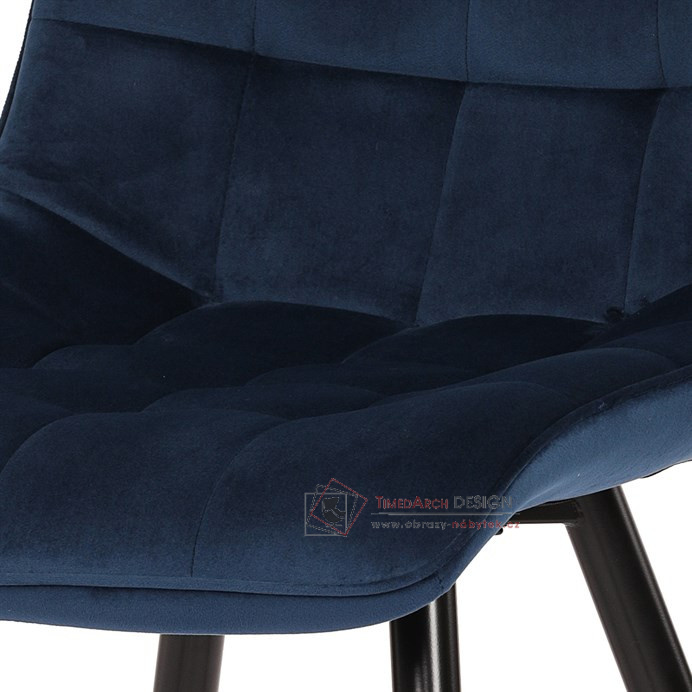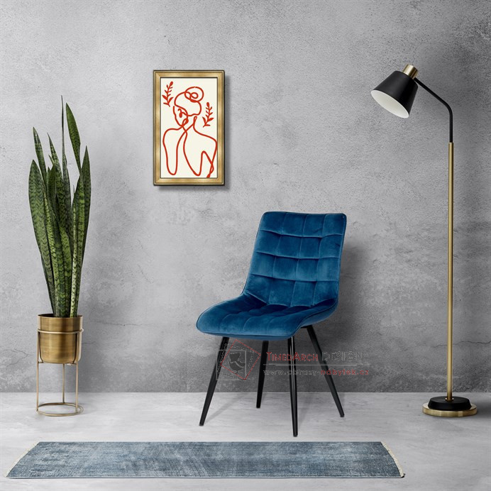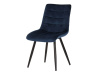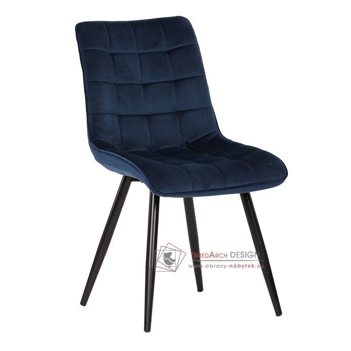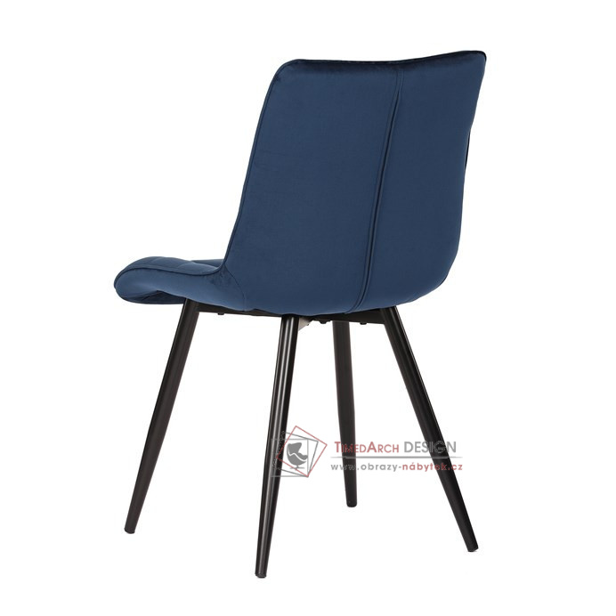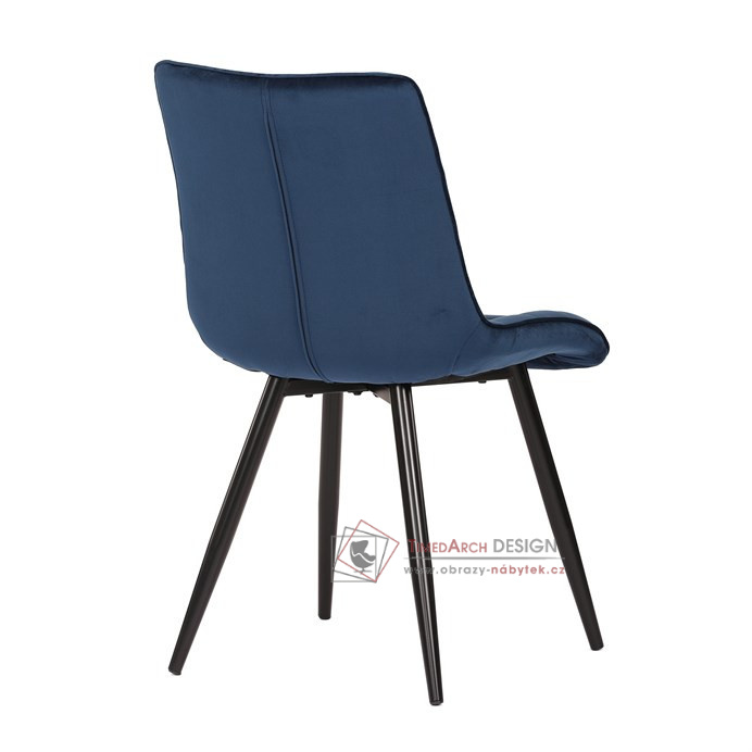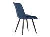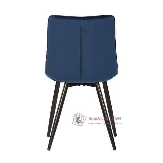 Moderní jídelní židle je potažena do hebkého sametu v modré barvě.