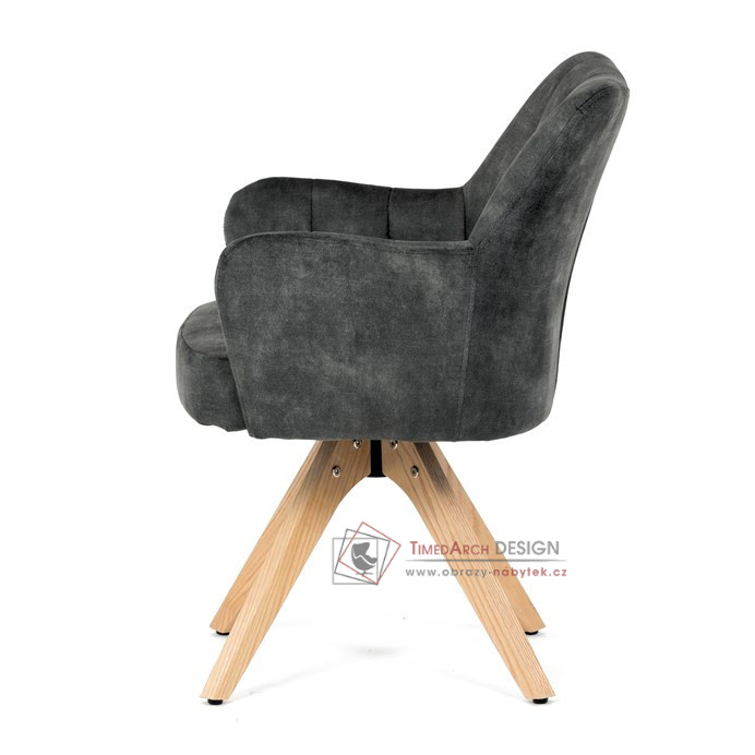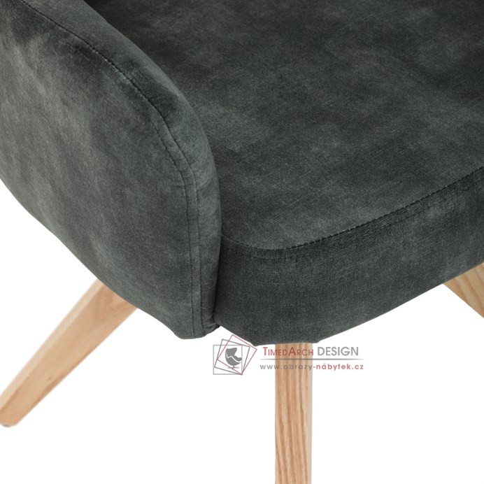 Masivní nohy v přírodní barvě vytvářejí stabilní základ a skvěle harmonizují s celkovým designem. Komfortní područky zajistí pohodlí při sezení. Navíc, integrovaný 360° otočný mechanismus poskytuje maximální flexibilitu a pohybový komfort. Ideální volba pro stylové i funkční bydlení.