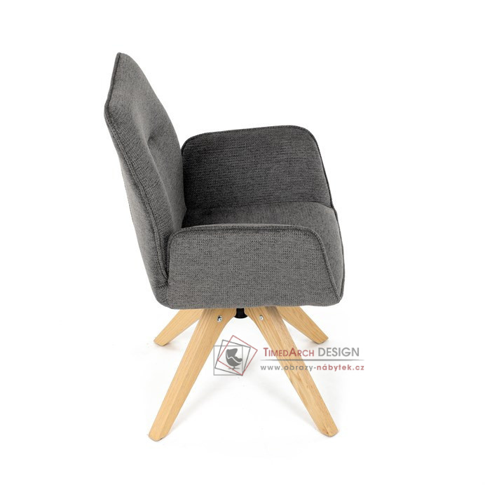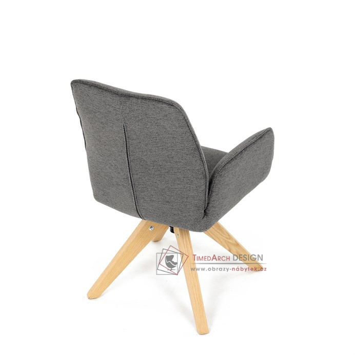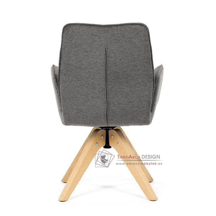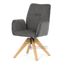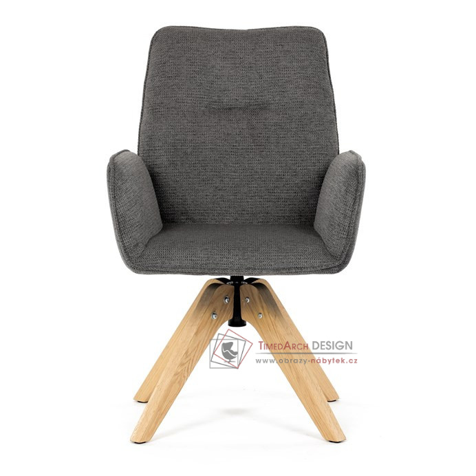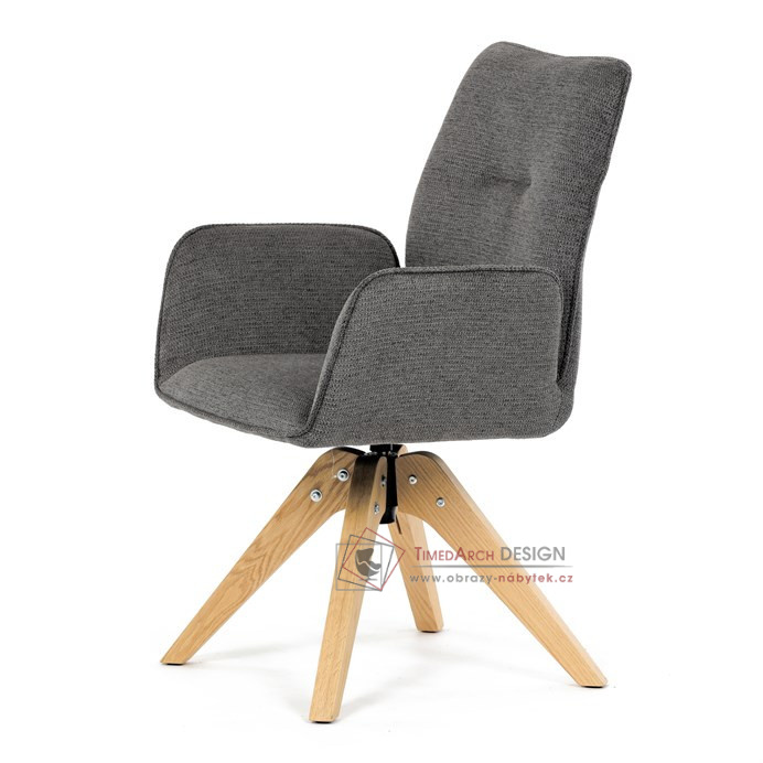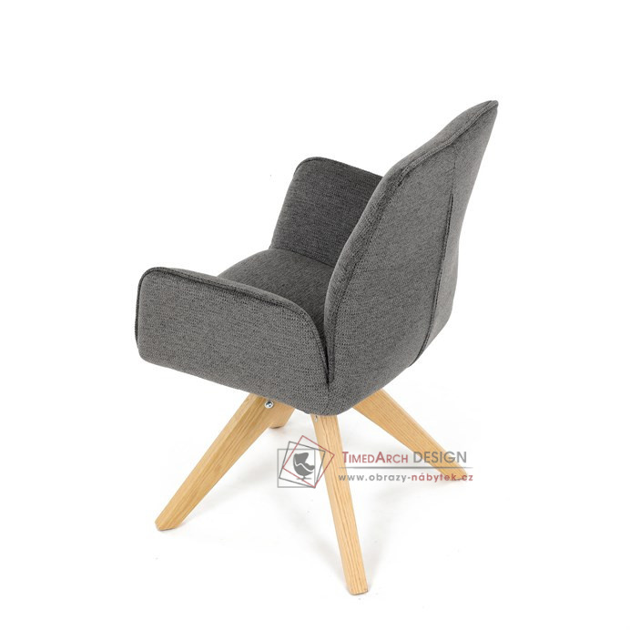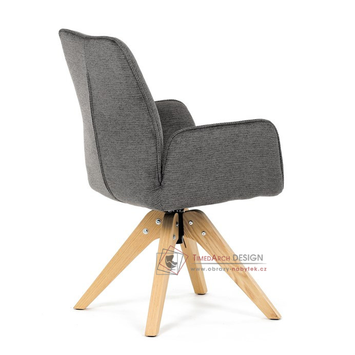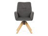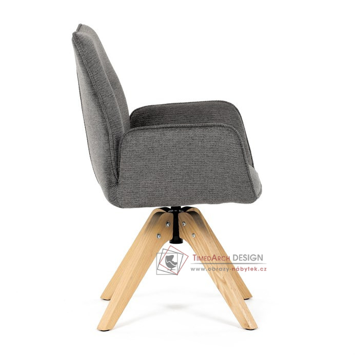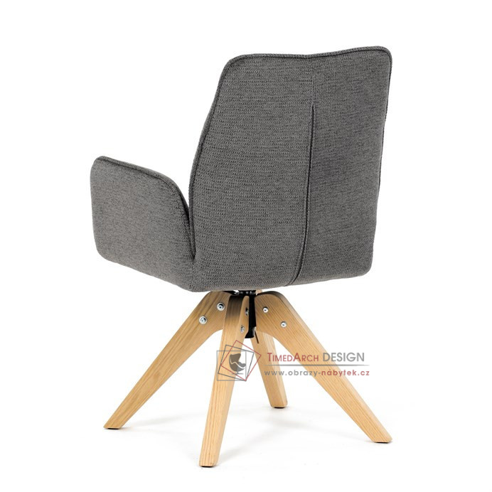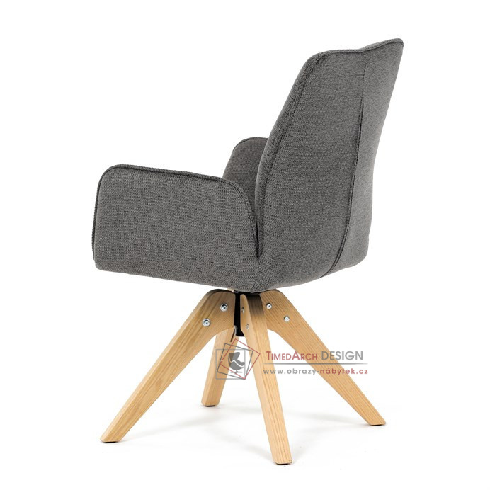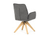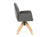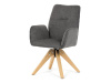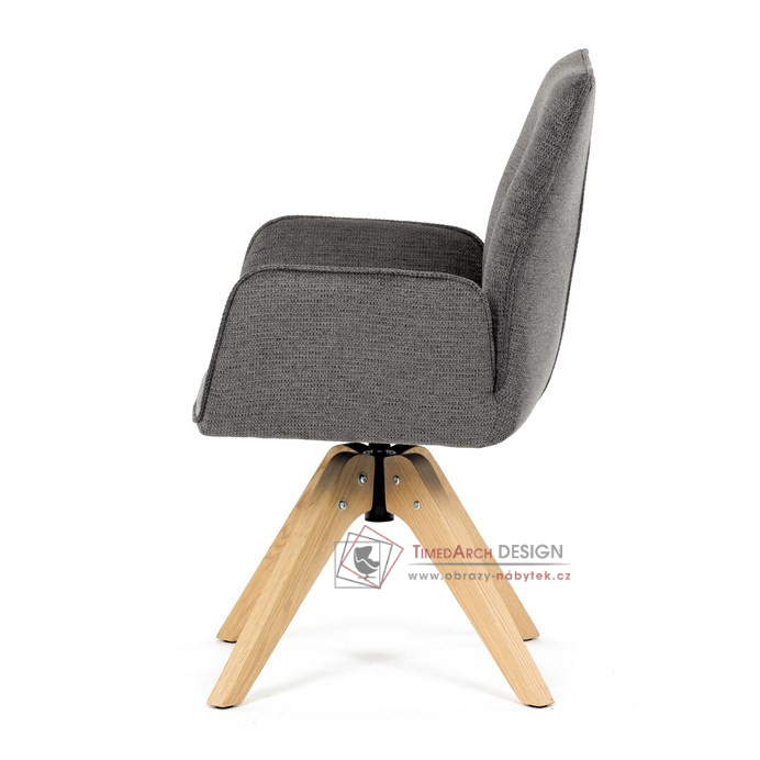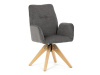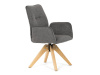 Její pohodlný sedák i opěrák jsou čalouněny voděodolnou látkou v příjemném tmavě šedém odstínu, což z ní činí skvělý doplněk do jakéhokoliv interiéru. Masivní dřevěné nohy v přírodní barvě dodávají židli stabilitu a odolnost, zatímco otočný mechanismus s funkcí 360° přináší uživatelský komfort. Tato jídelní židle je ideální nejen do domácností, ale také do kaváren či restaurací, kde je požadován moderní a funkční nábytek.