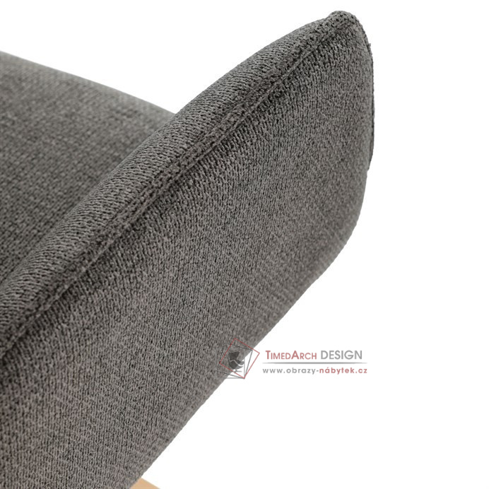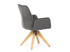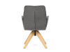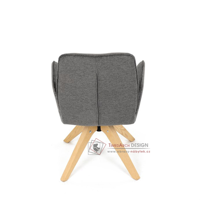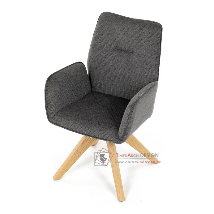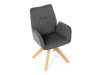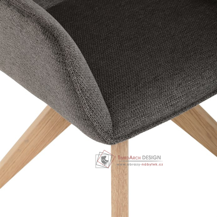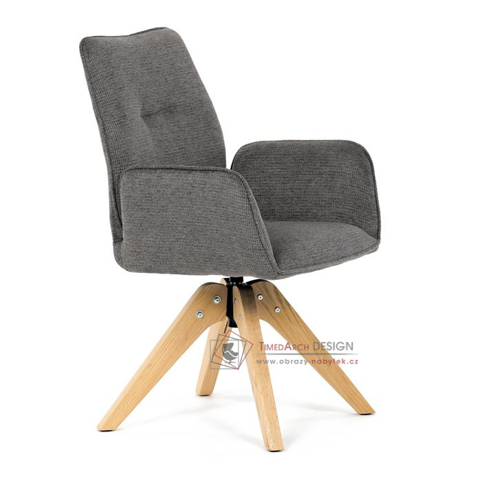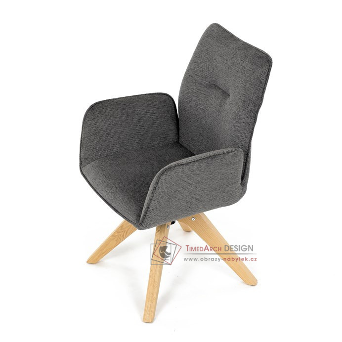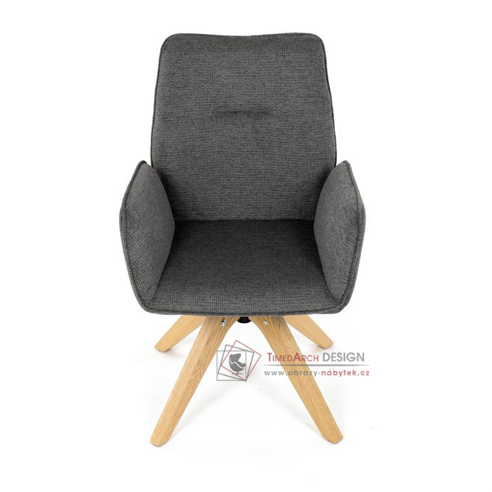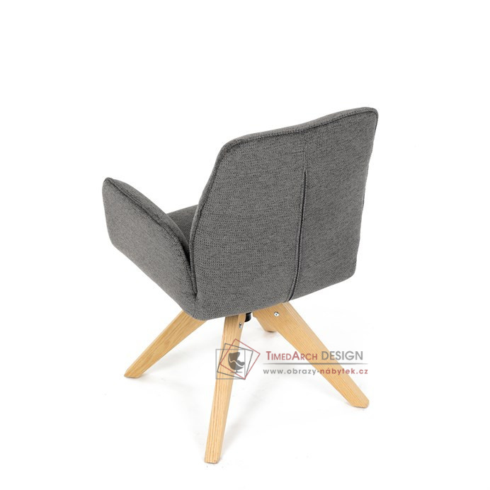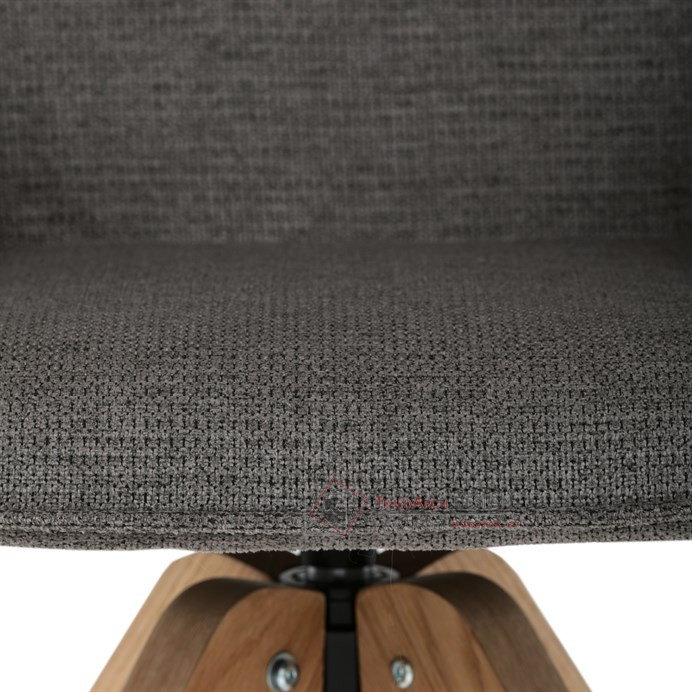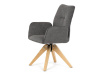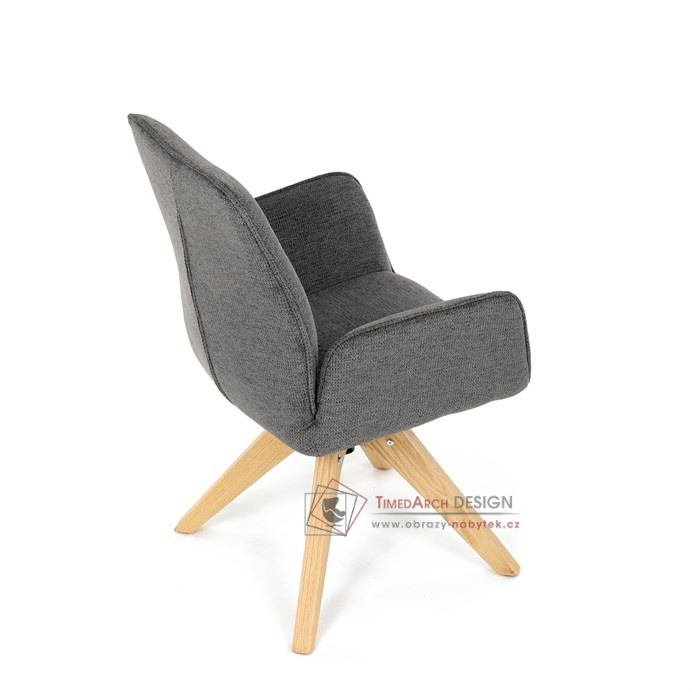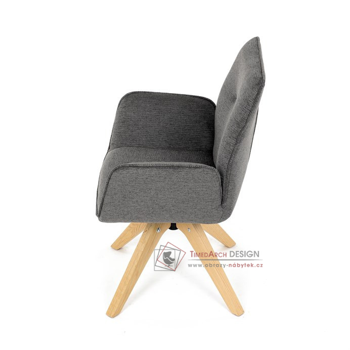 Její pohodlný sedák i opěrák jsou čalouněny voděodolnou látkou v příjemném tmavě šedém odstínu, což z ní činí skvělý doplněk do jakéhokoliv interiéru. Masivní dřevěné nohy v přírodní barvě dodávají židli stabilitu a odolnost, zatímco otočný mechanismus s funkcí 360° přináší uživatelský komfort. Tato jídelní židle je ideální nejen do domácností, ale také do kaváren či restaurací, kde je požadován moderní a funkční nábytek.