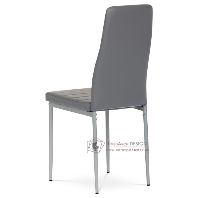 Prémiová šedá eko kůže dotváří exkluzivní vzhled a zároveň zajišťuje pohodlí při každodenním posezení. Ekologická kůže je snadno udržovatelná a odolná vůči poškrábání, což ji činí ideální volbou pro rodiny s dětmi nebo domácnosti s mazlíčky. Šedé kovové nohy dodávají židli elegantní vzhled a zajišťují stabilitu na jakém koliv povrchu. Nosnost jídelní židle činí 120 kg.