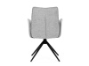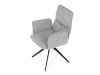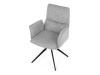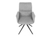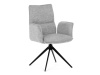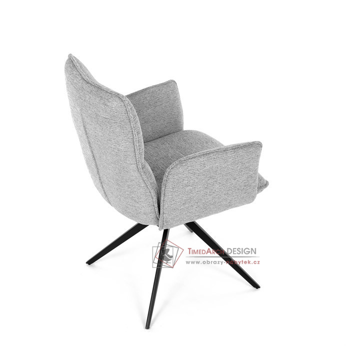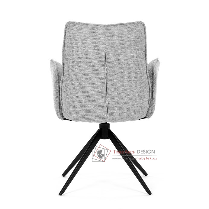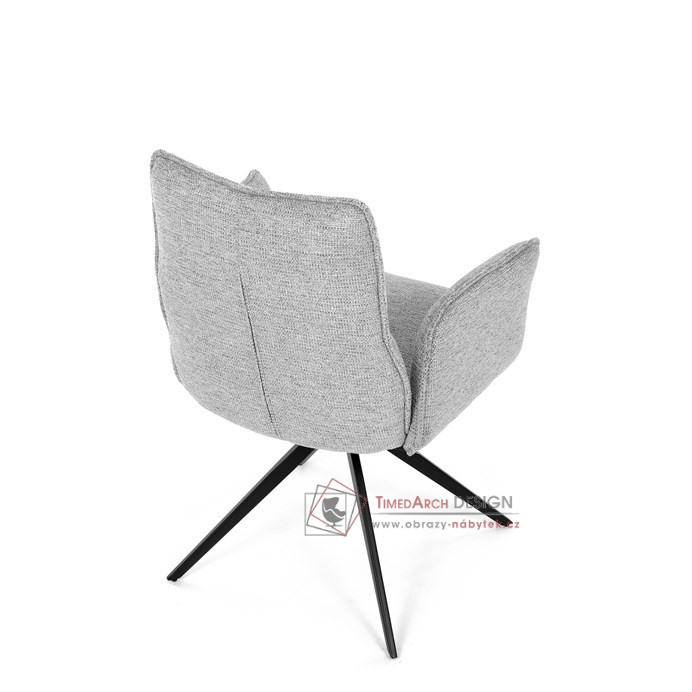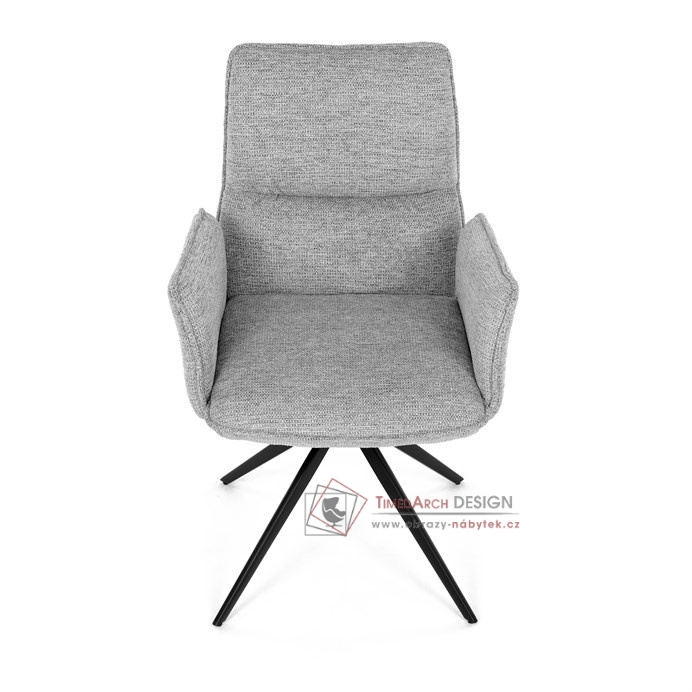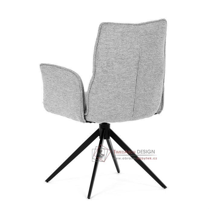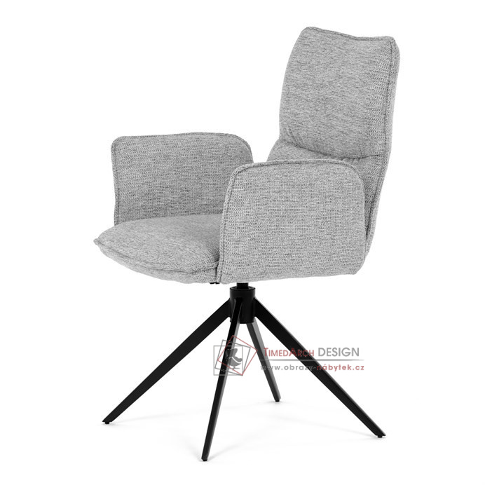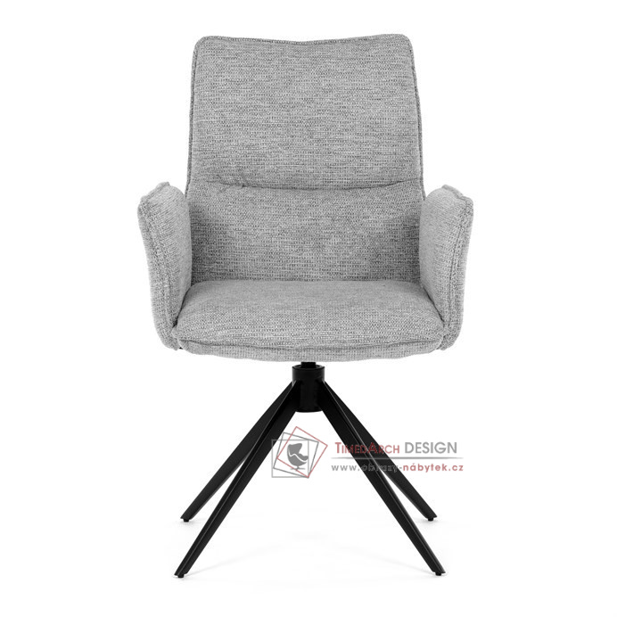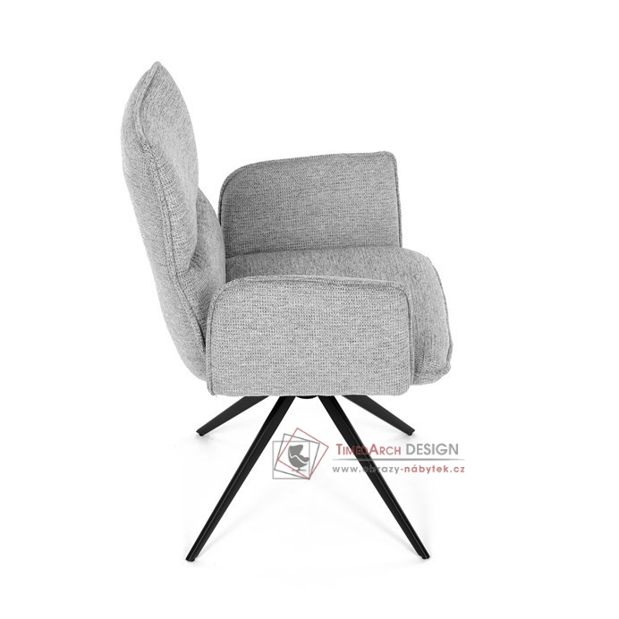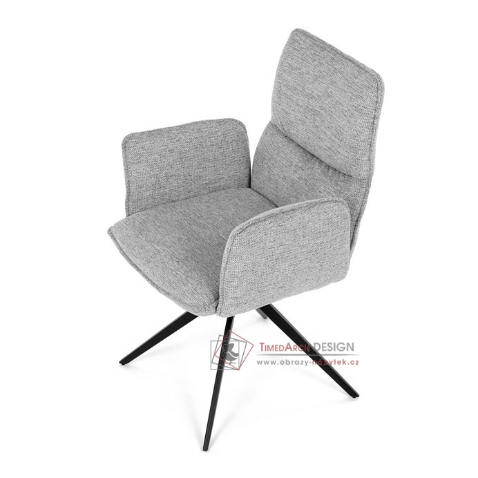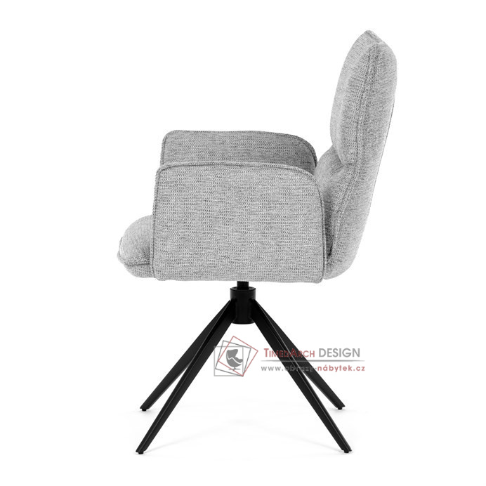 Čalounění z kvalitní šedé látky poskytuje příjemný a měkký povrch, který je zároveň odolný vůči běžnému opotřebení. Konstrukce židle je podpořena pevnou kovovou podnoží v černé barvě, která zajišťuje stabilitu a dlouhou životnost. Integrované područky jsou ergonomicky tvarované a čalouněné stejným materiálem jako sedák a opěradlo, což zvyšuje komfort při delším sezení. Sedák i opěradlo jsou vyplněny hustou pěnou, která poskytuje dostatečnou oporu a pohodlí. Díky kompaktním rozměrům a elegantnímu vzhledu je židle vhodná do moderních jídelních prostor i kancelářských zasedacích místností. Nosnost židle odpovídá standardním požadavkům pro běžné uživatele, což z ní činí univerzální řešení pro různé typy interiérů.