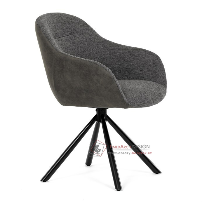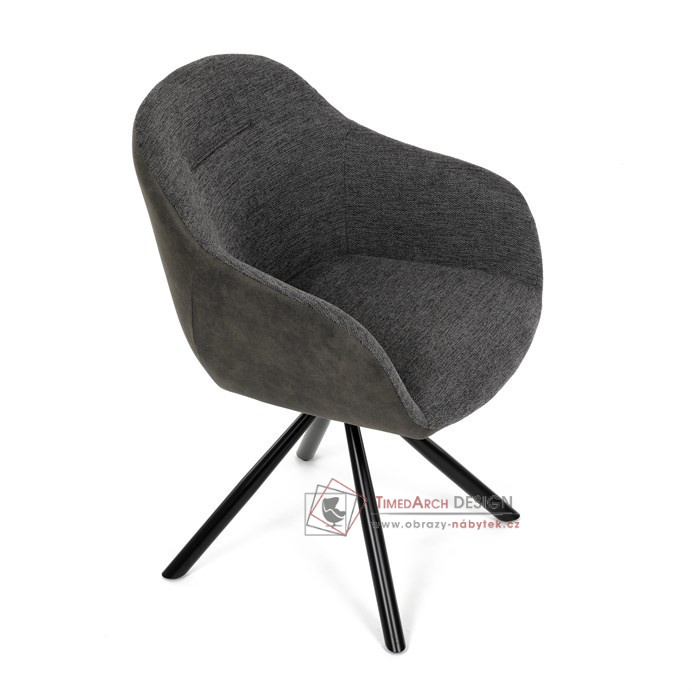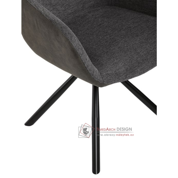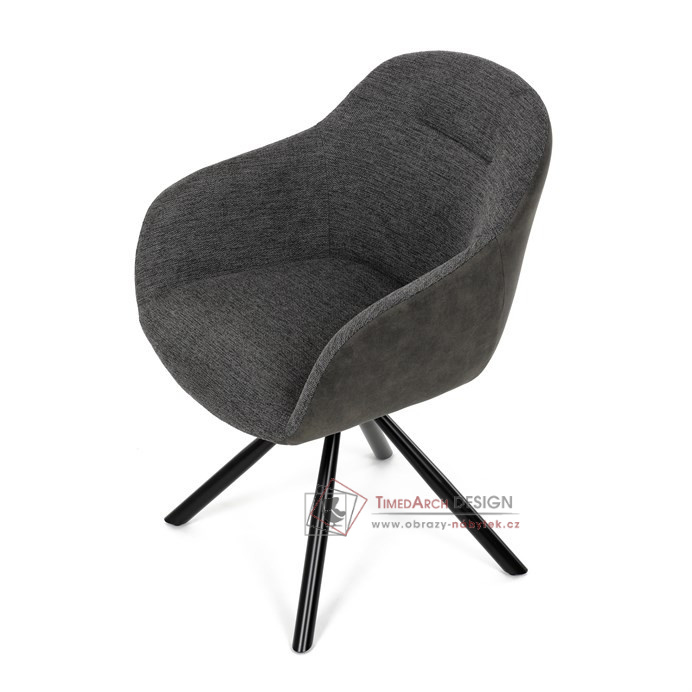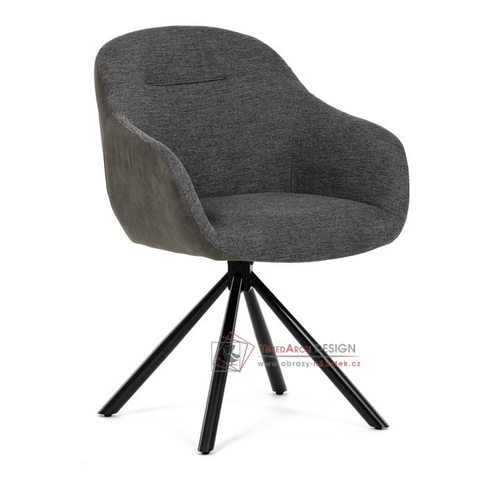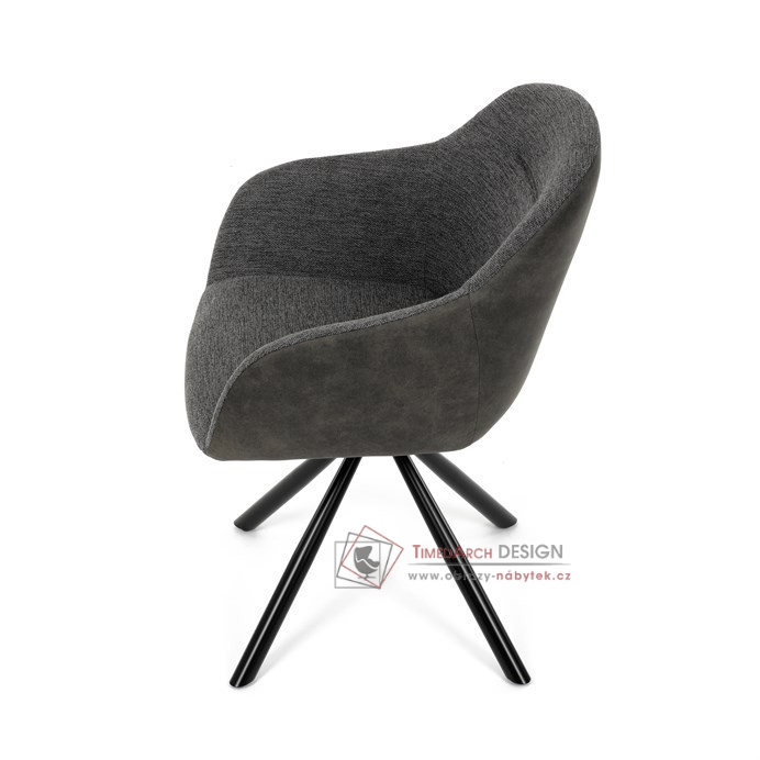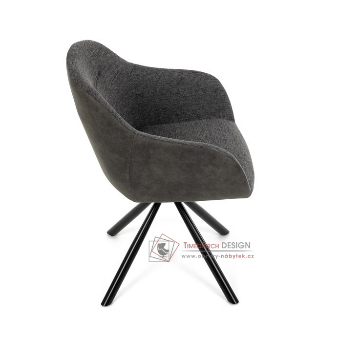 Židle dodává interiéru šmrnc a originalitu. Odolné látkové čalounění slibuje pohodlí a dlouhou životnost. Kovové nohy zajišťují stabilitu a moderní vzhled. Díky otočné funkci L90°/P90° s vratným mechanismem snadno přizpůsobíte směr sezení svým potřebám. Područky poskytují extra komfort při delším sezení, ideální pro pracovny nebo obývací pokoje.