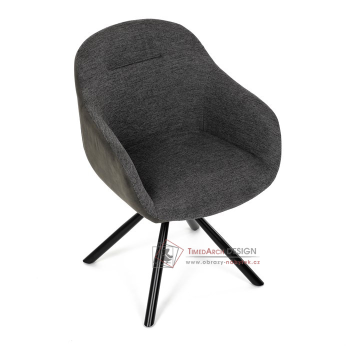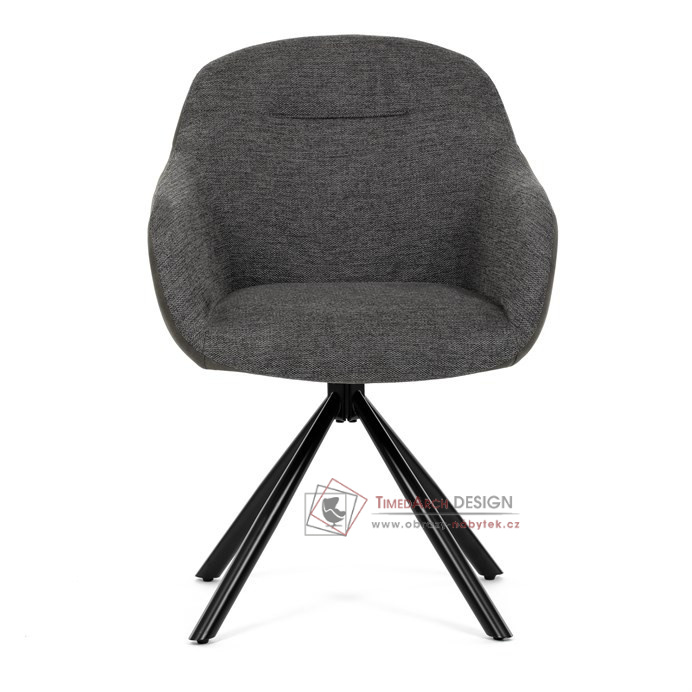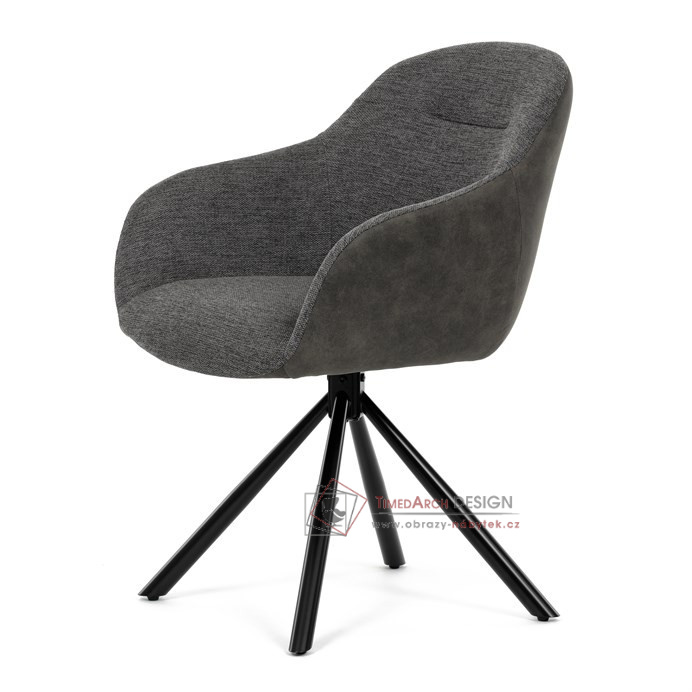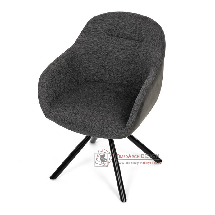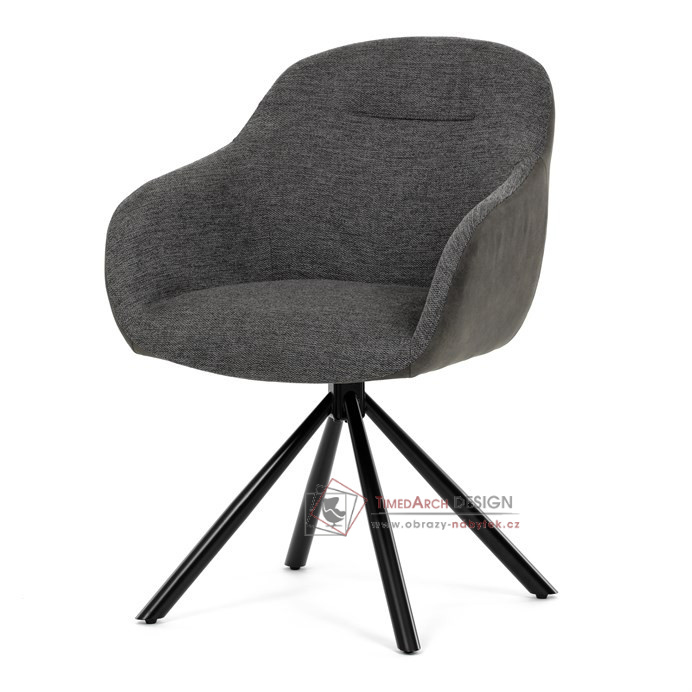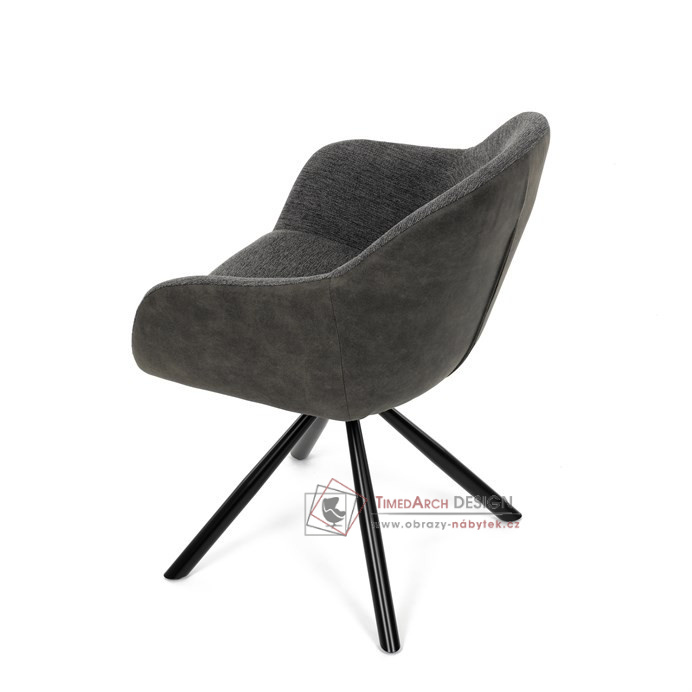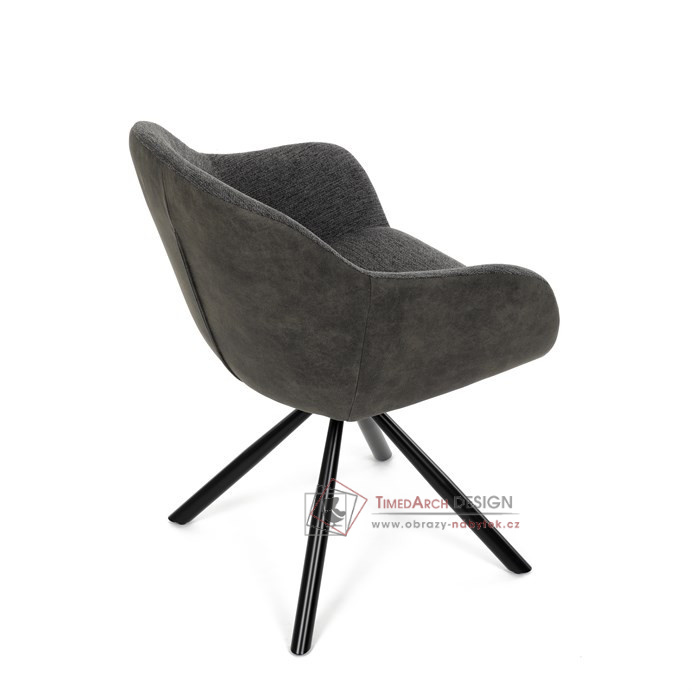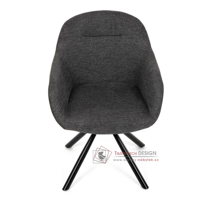 Židle dodává interiéru šmrnc a originalitu. Odolné látkové čalounění slibuje pohodlí a dlouhou životnost. Kovové nohy zajišťují stabilitu a moderní vzhled. Díky otočné funkci L90°/P90° s vratným mechanismem snadno přizpůsobíte směr sezení svým potřebám. Područky poskytují extra komfort při delším sezení, ideální pro pracovny nebo obývací pokoje.
