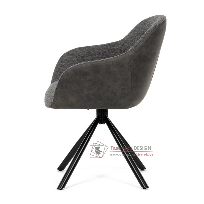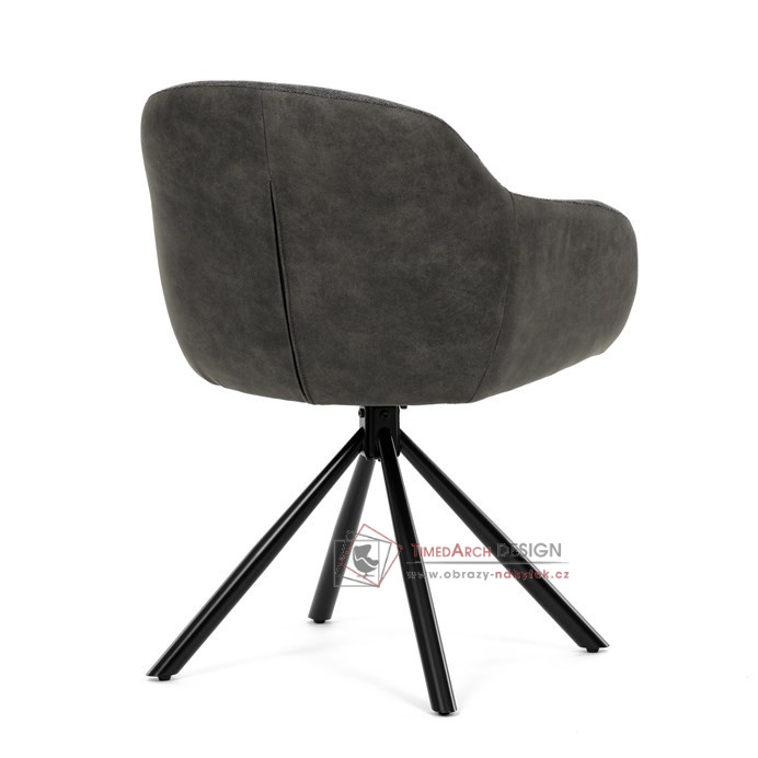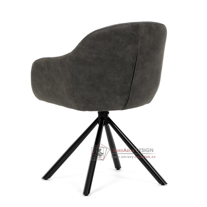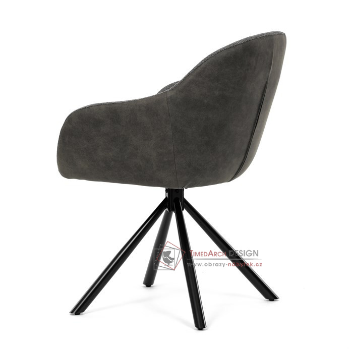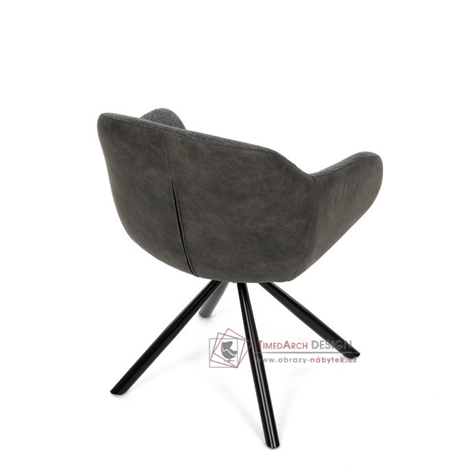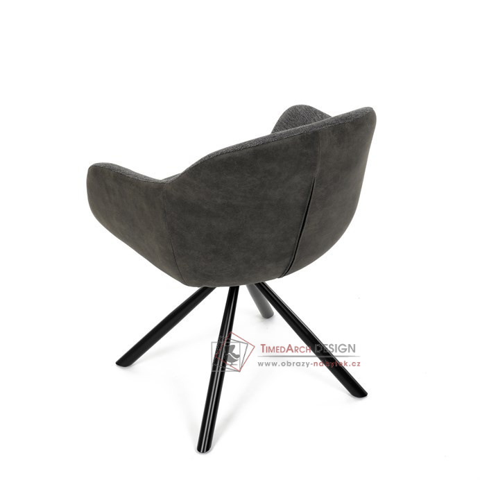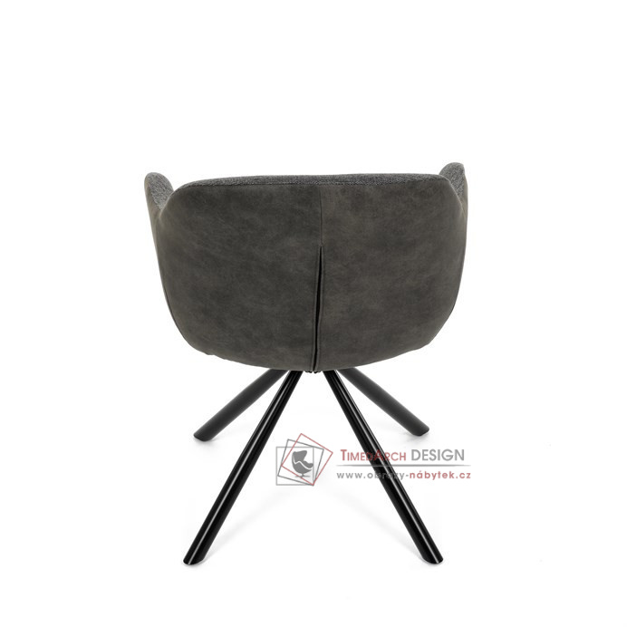 Čalouněné křeslo DCH-Y1143 GREY2 vyniká kombinací barev a potahových materiálů v dekoru vintage kůže na sedáku, opěradle a bocích.