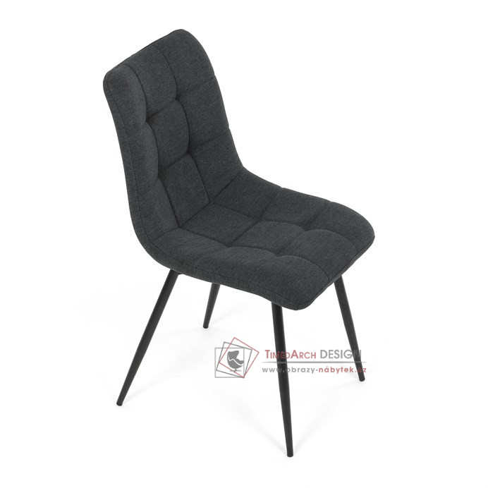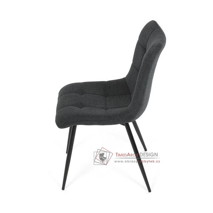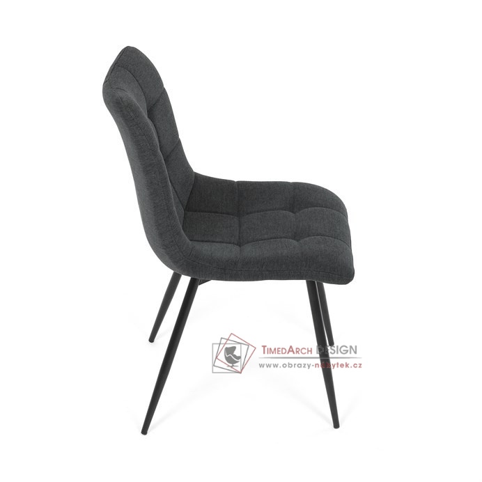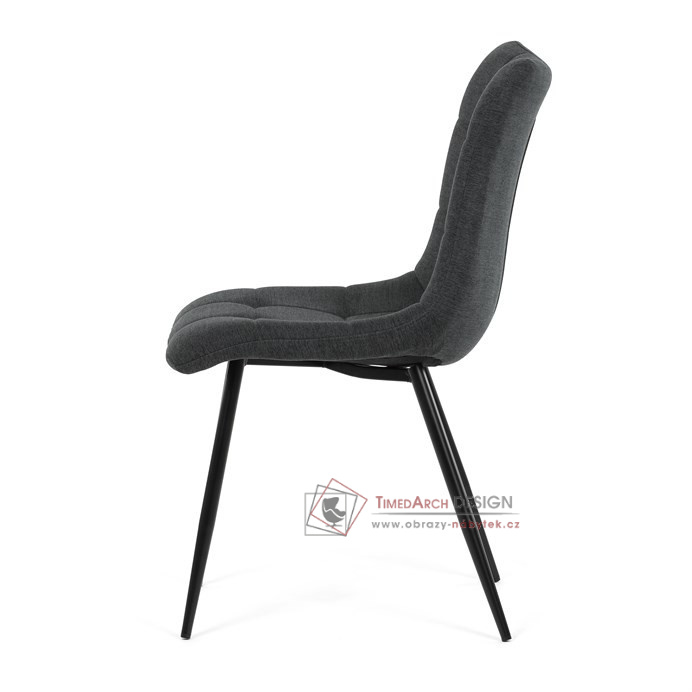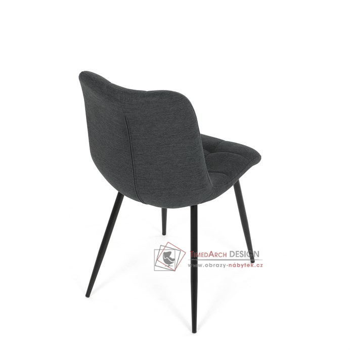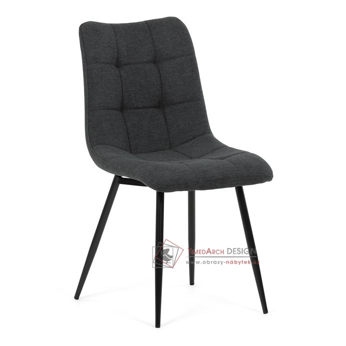 Čalounění v elegantní šedé barvě je doplněno výrazným prošíváním. Stabilní kovové nohy v černé barvě poskytují pevnou oporu a zároveň dodávají židli lehkost a vzdušnost. Tato židle nejen skvěle vypadá, ale také poskytuje vysoký komfort při sezení díky ergonomicky tvarovanému sedáku. Je ideální volbou pro stylové jídelny nebo pracovny, kde vynikne její moderní design.