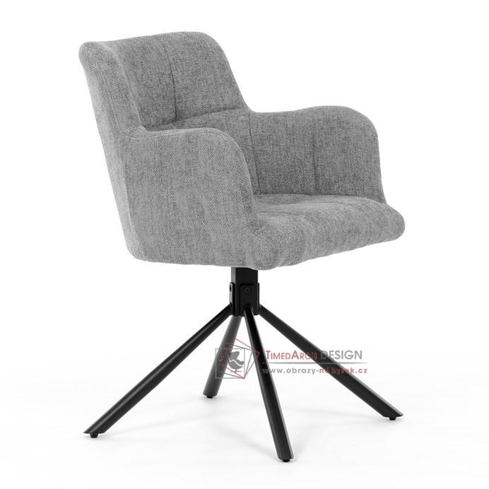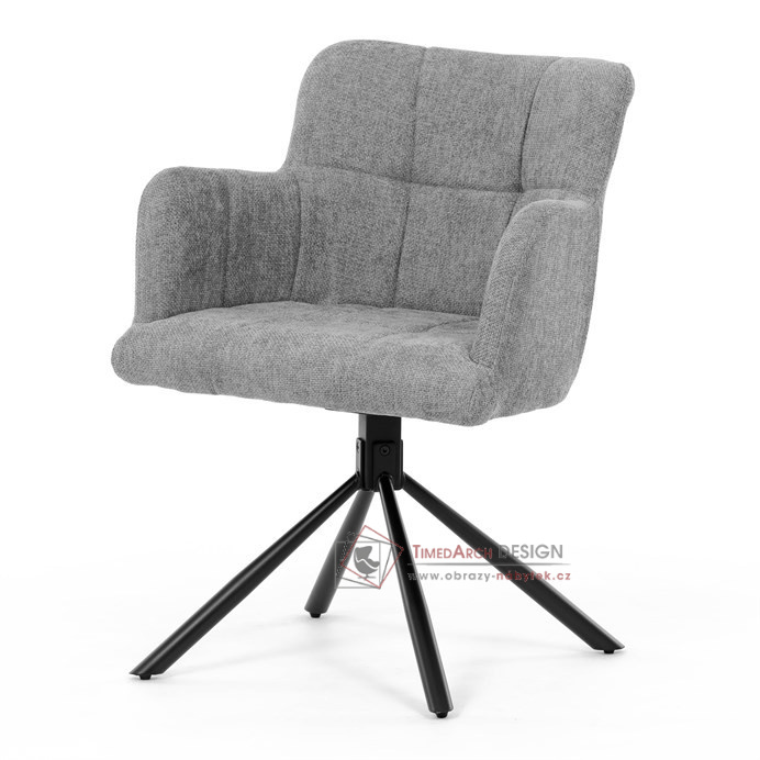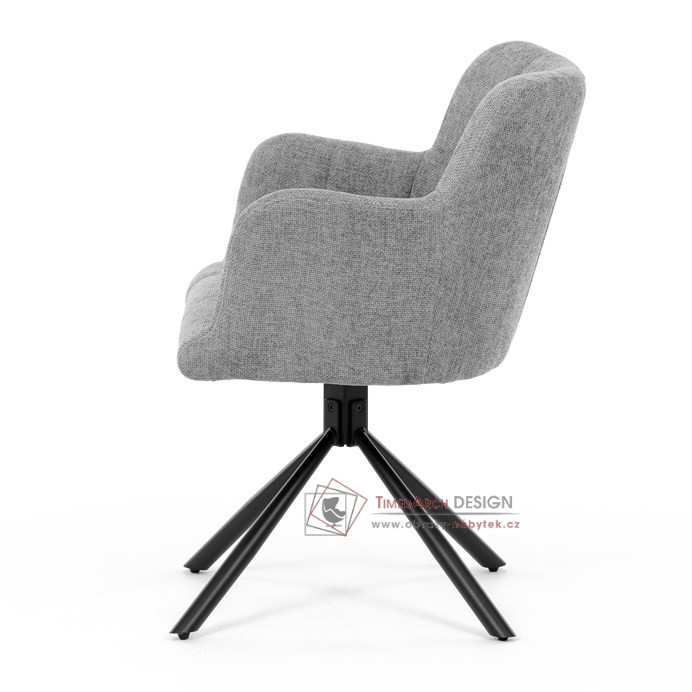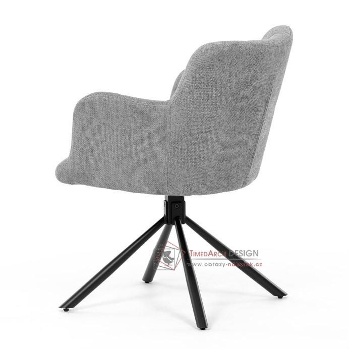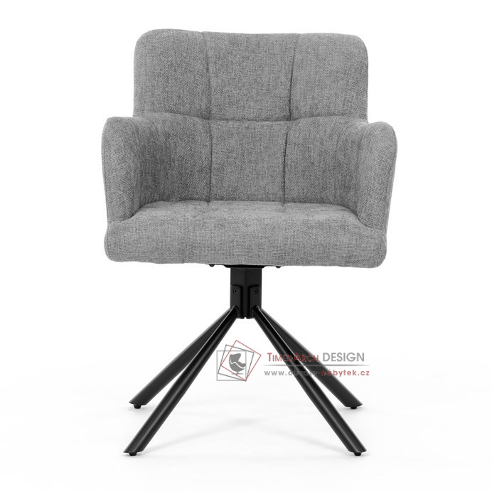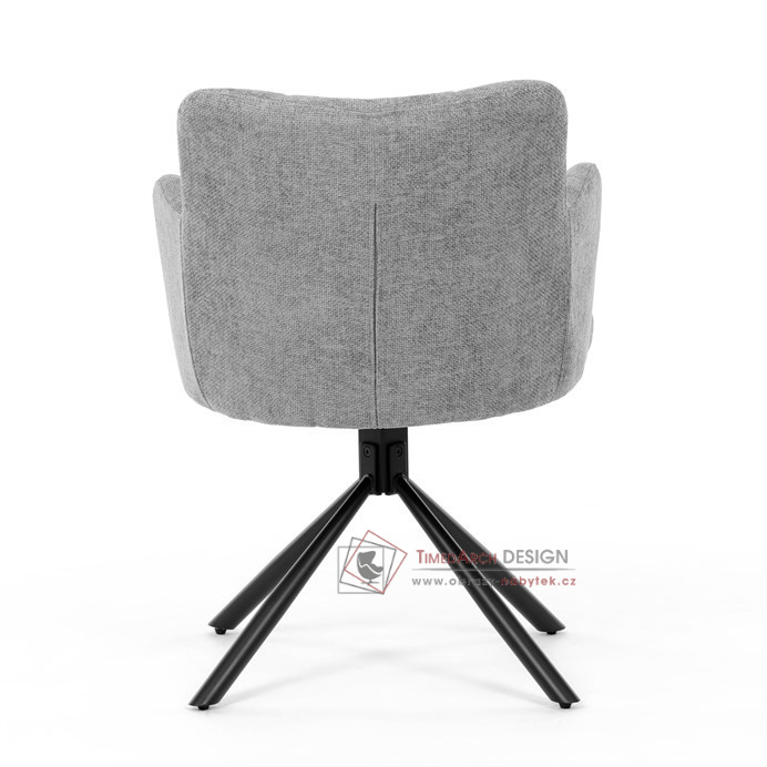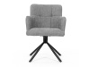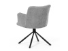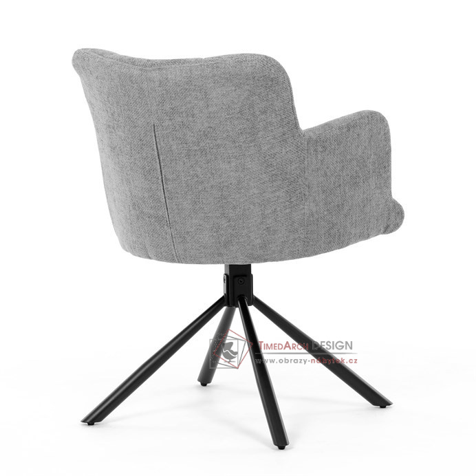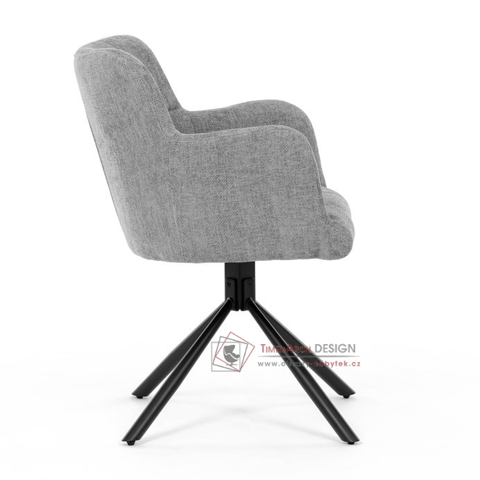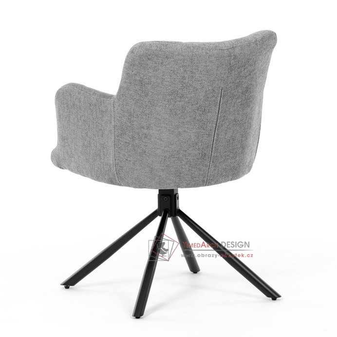 Pohodlné čalounění z hladké látky v kombinaci s výplní z PU pěny zajišťuje komfort i při delším sezení. Otočný mechanismus 180° s funkcí resetu vrátí křeslo do původní pozice, což je praktické zejména pro vizuální vzhled jídelny. Kovové nohy s centrálním podnožím zajišťují stabilitu a stylový industriální vzhled. Područky a vysoké opěradlo poskytují oporu pro maximální pohodlí. Tato židle je skvělou volbou pro moderní interiéry