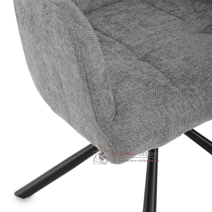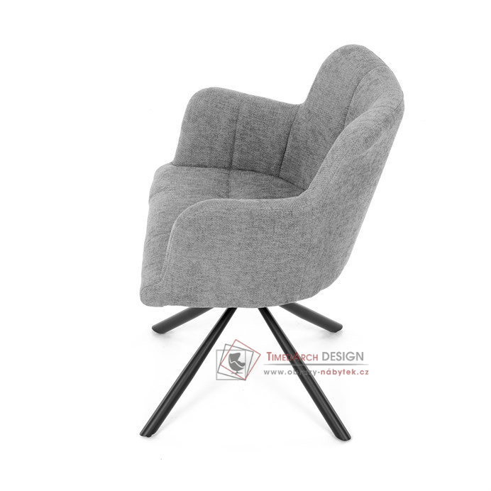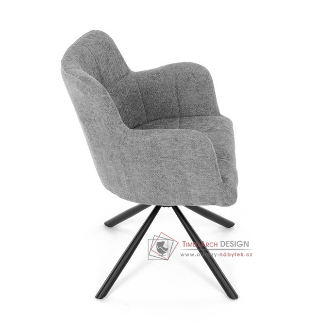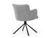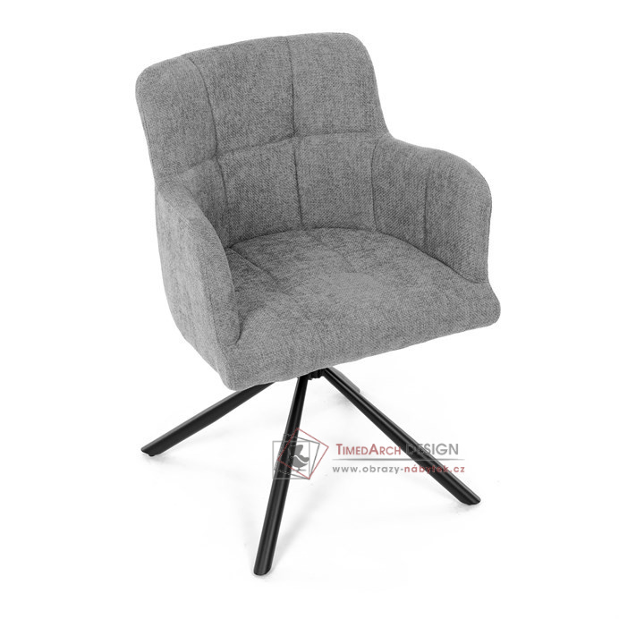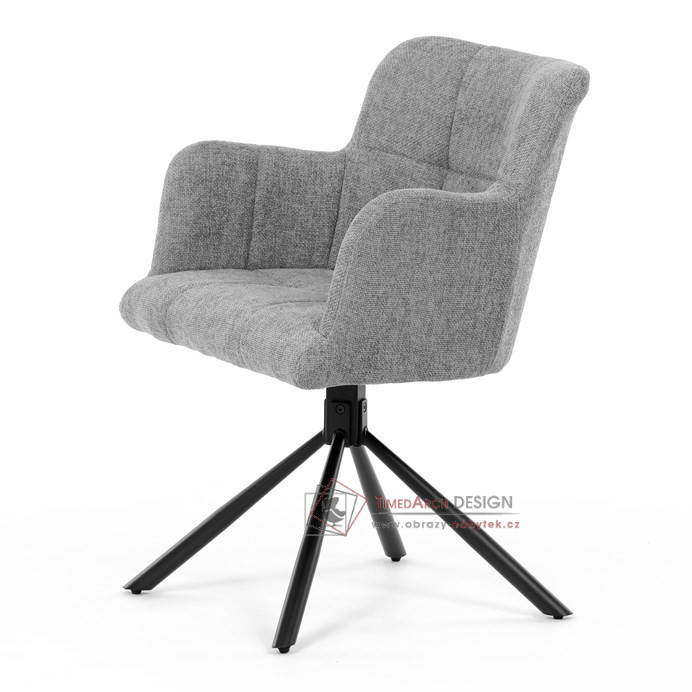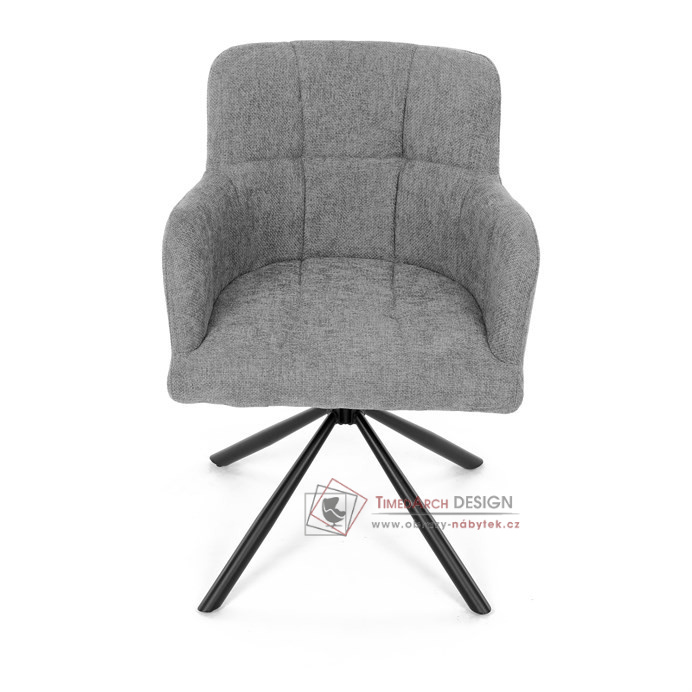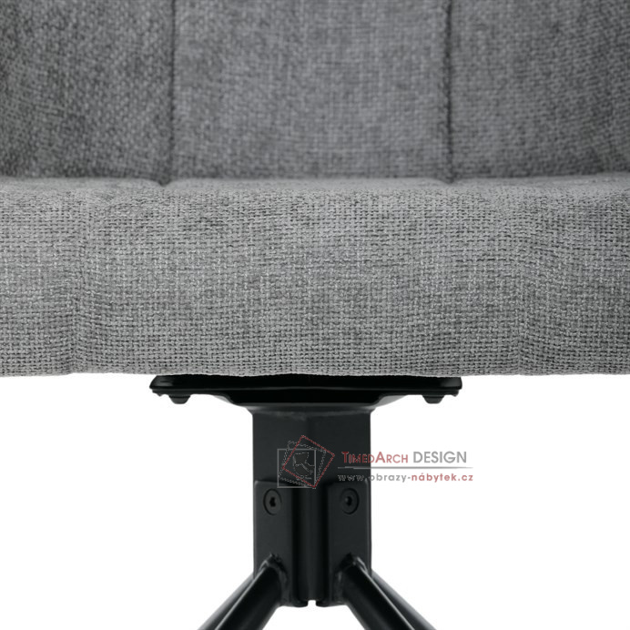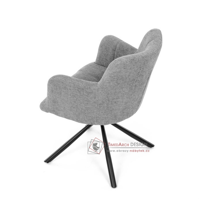 Pohodlné čalounění z hladké látky v kombinaci s výplní z PU pěny zajišťuje komfort i při delším sezení. Otočný mechanismus 180° s funkcí resetu vrátí křeslo do původní pozice, což je praktické zejména pro vizuální vzhled jídelny. Kovové nohy s centrálním podnožím zajišťují stabilitu a stylový industriální vzhled. Područky a vysoké opěradlo poskytují oporu pro maximální pohodlí. Tato židle je skvělou volbou pro moderní interiéry