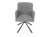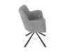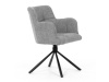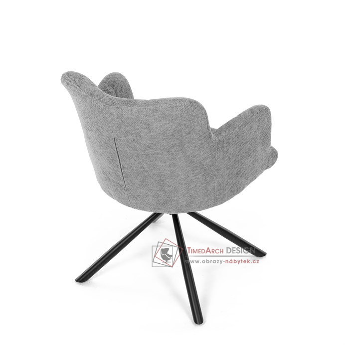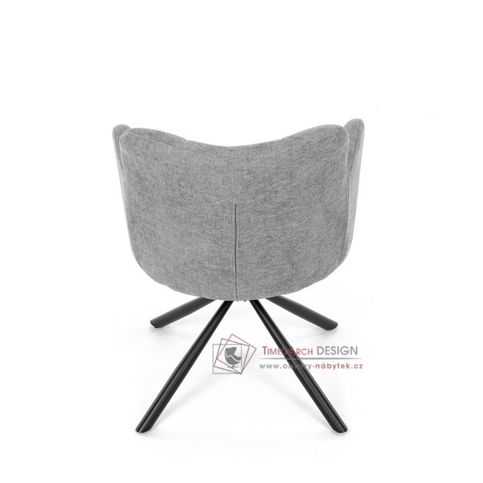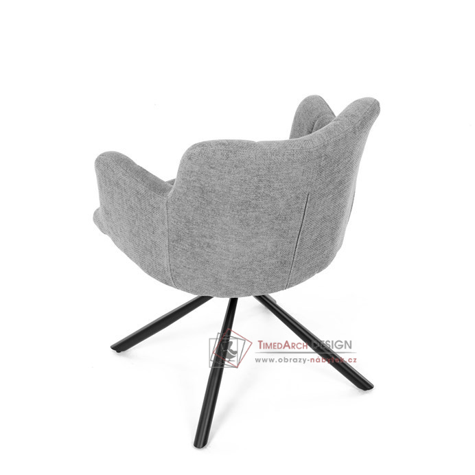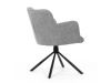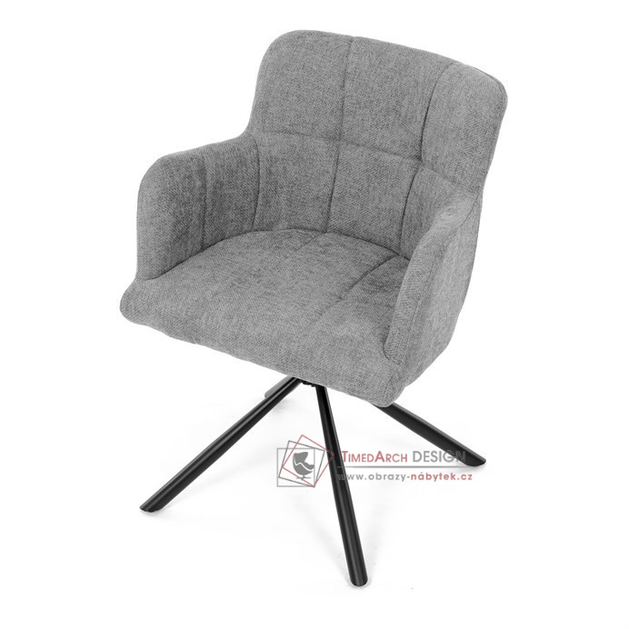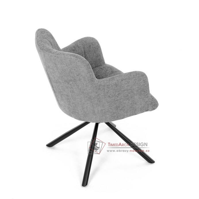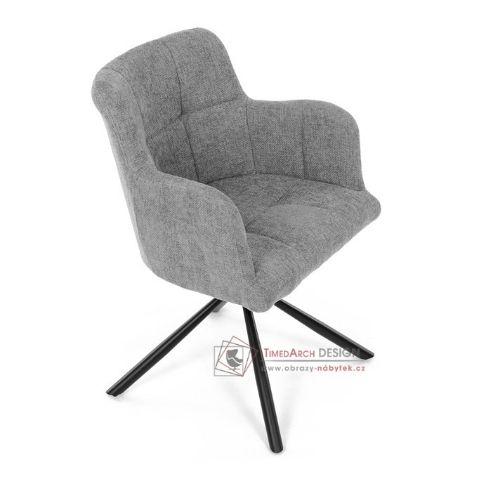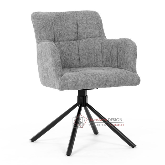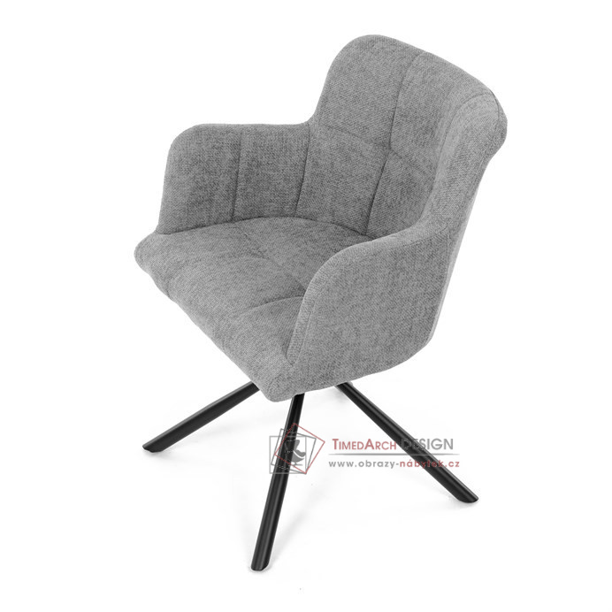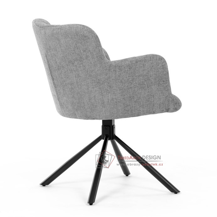 Pohodlné čalounění z hladké látky v kombinaci s výplní z PU pěny zajišťuje komfort i při delším sezení. Otočný mechanismus 180° s funkcí resetu vrátí křeslo do původní pozice, což je praktické zejména pro vizuální vzhled jídelny. Kovové nohy s centrálním podnožím zajišťují stabilitu a stylový industriální vzhled. Područky a vysoké opěradlo poskytují oporu pro maximální pohodlí. Tato židle je skvělou volbou pro moderní interiéry