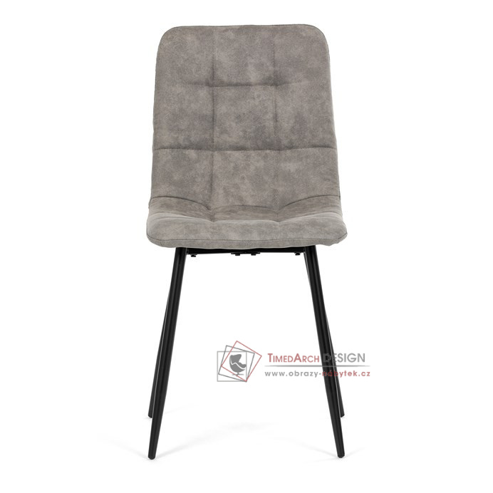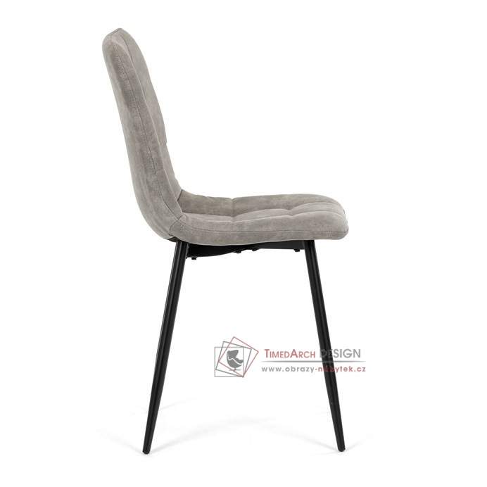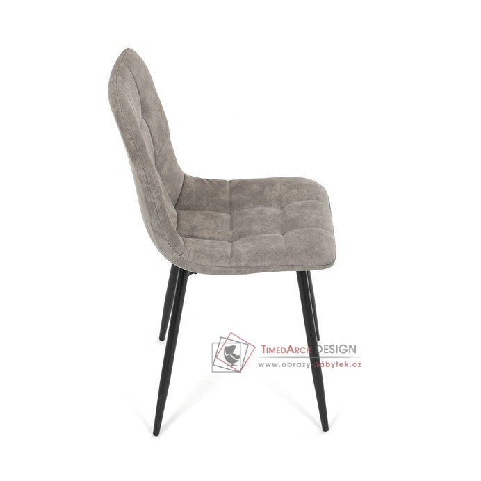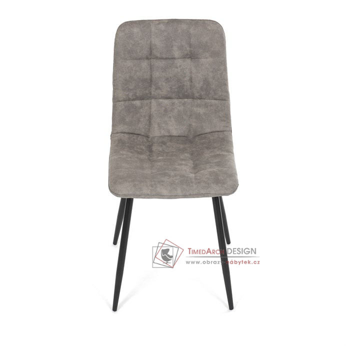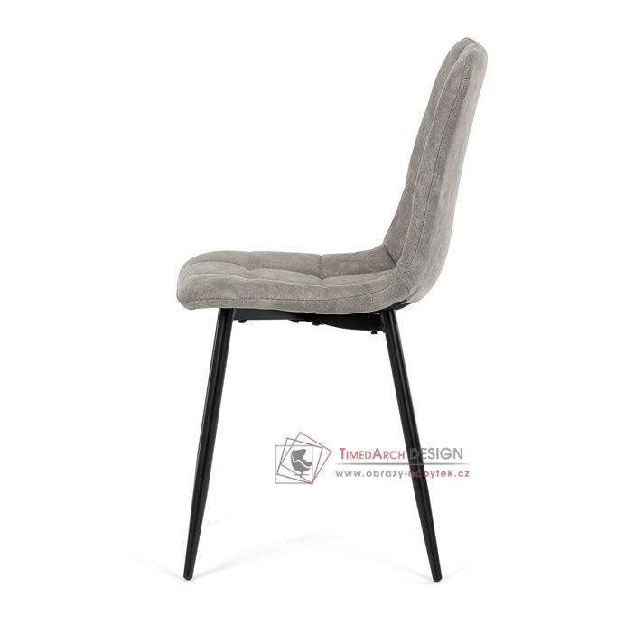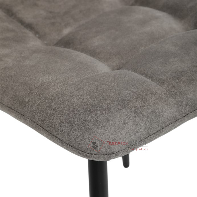 Potah z látky vintage v šedém odstínu dodává nábytku osobitý charakter, zatímco elegantní čtvercové prošívání podtrhuje její vzhled. Černé kovové nohy poskytují stabilitu a ladí s minimalistickým designem. Komfort při sezení zajišťuje měkké polstrování z PU pěny, díky kterému je židle ideální jak pro každodenní používání, tak pro slavnostní chvíle.