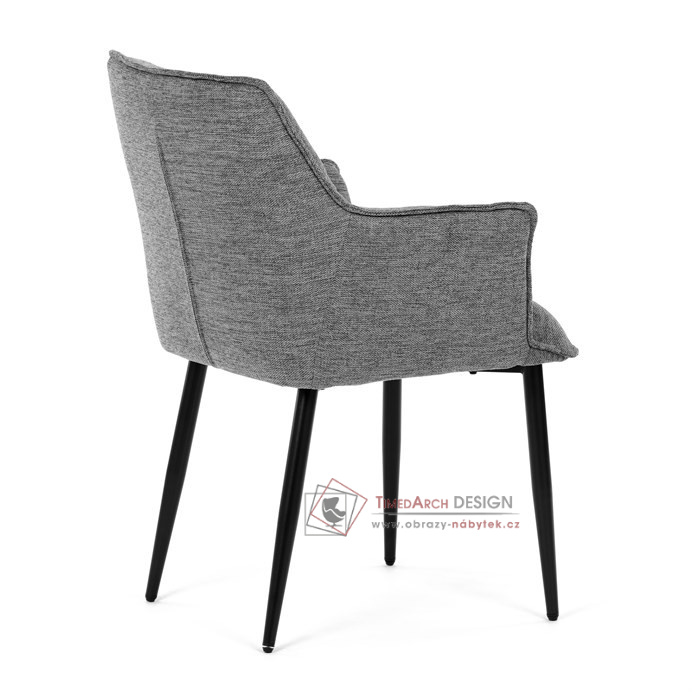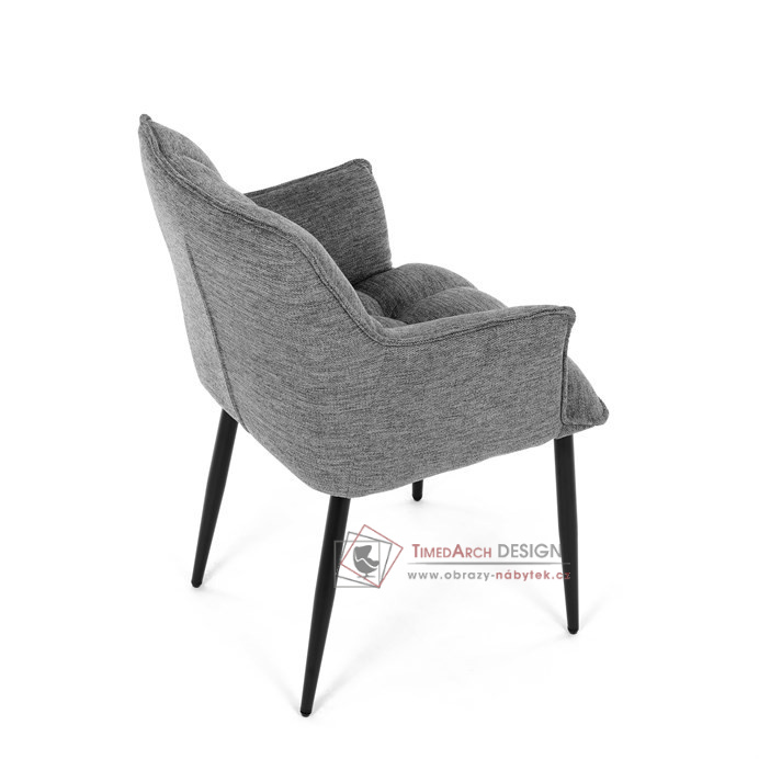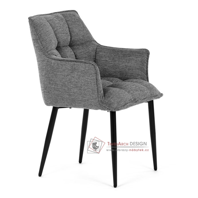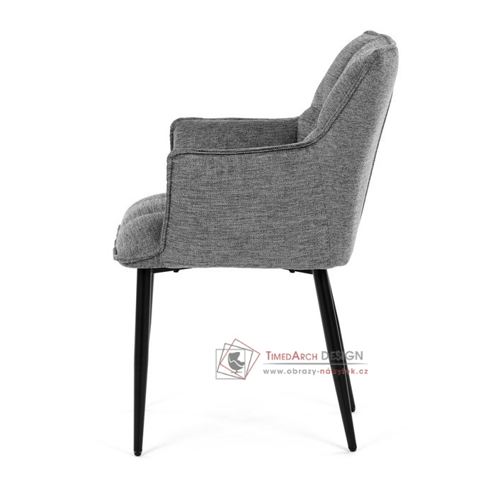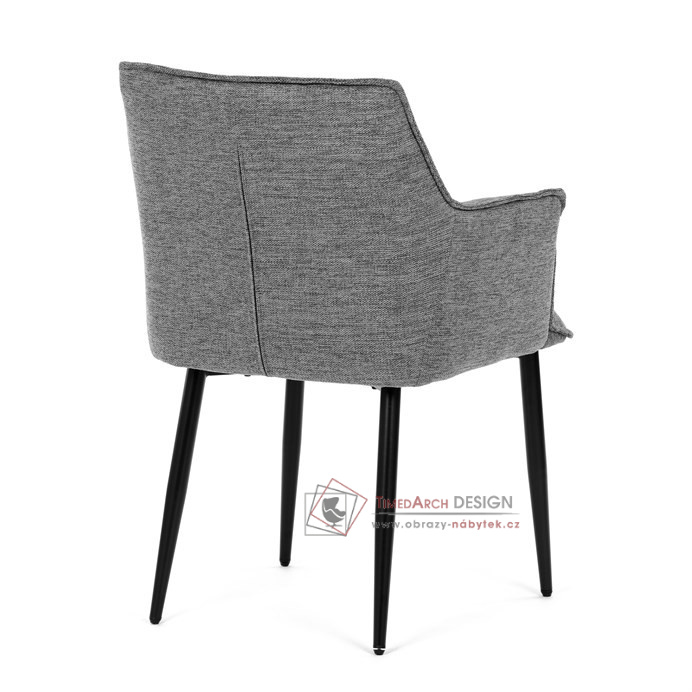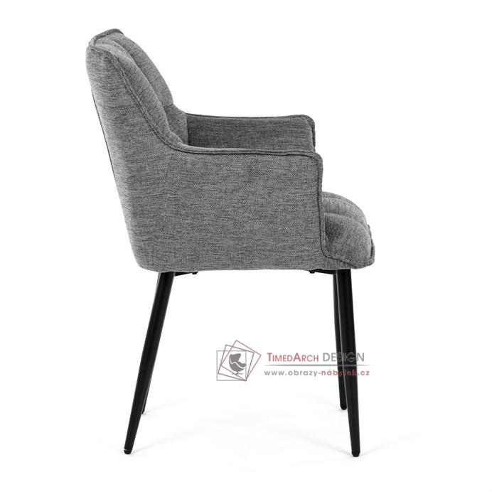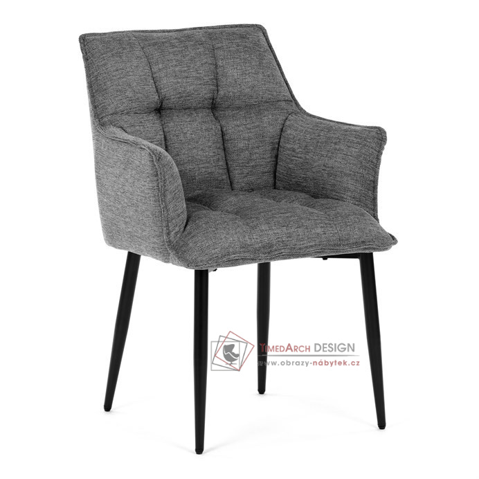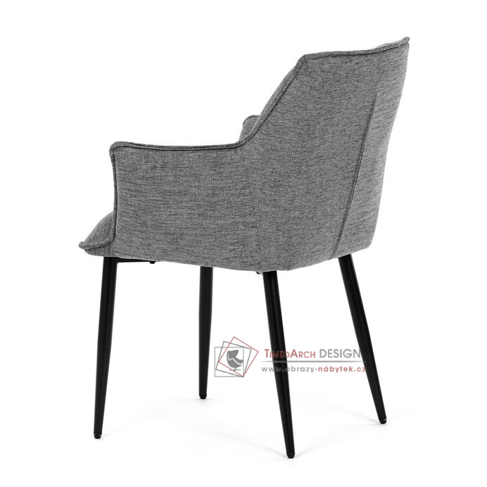 Elegantní šedé čalounění z vodoodpudivé látky zajišťuje snadnou údržbu a odolnost proti nečistotám, což oceníte v každodenním provozu. Pohodlí při sezení zaručuje měkká PU pěna a integrované područky, které podporují správnou ergonomii. Stabilitu zajišťují čtyři kovové nohy v černém provedení, které podtrhují moderní vzhled. Tato židle skvěle doplní jakýkoliv jídelní prostor a přinese do něj sofistikovaný styl a pohodlí.