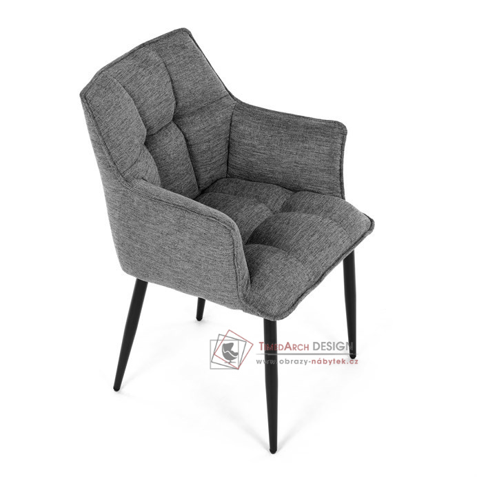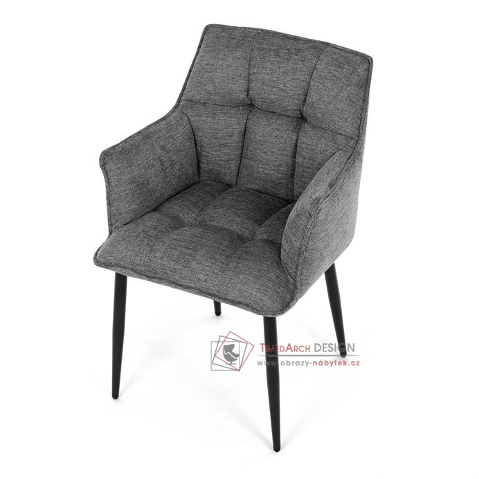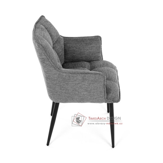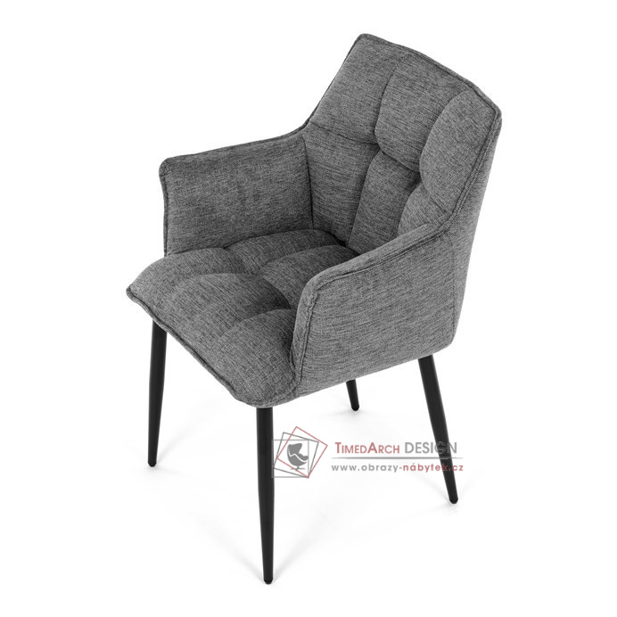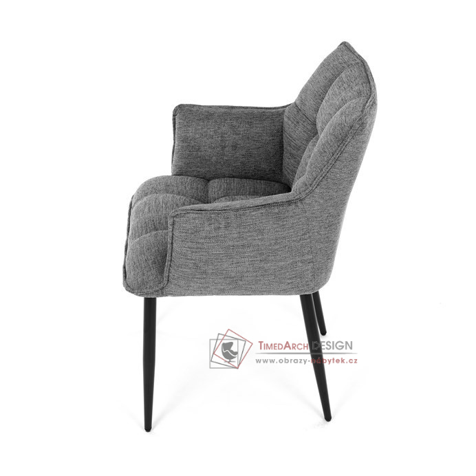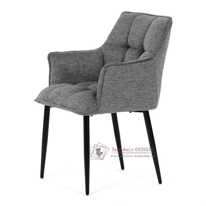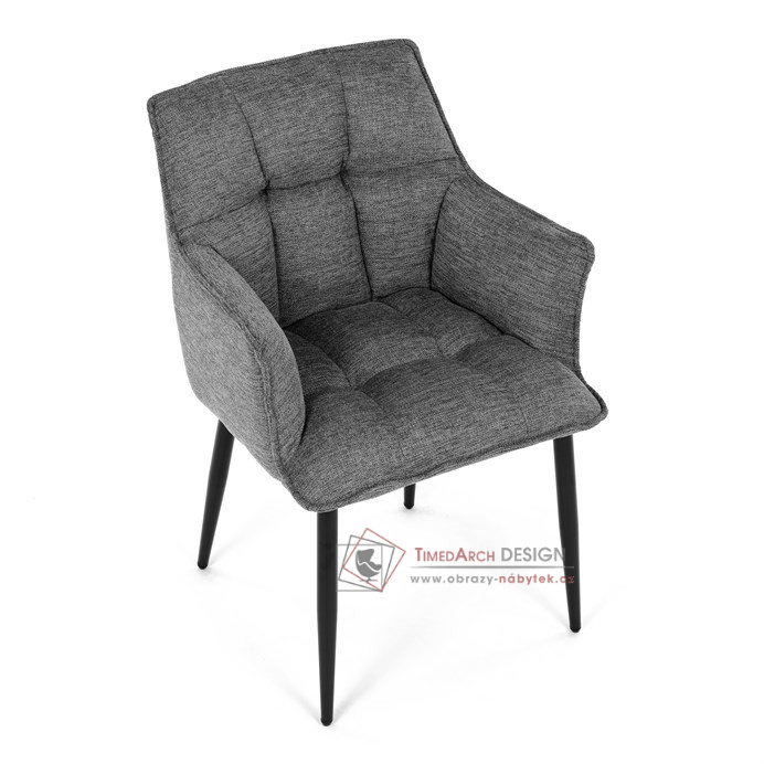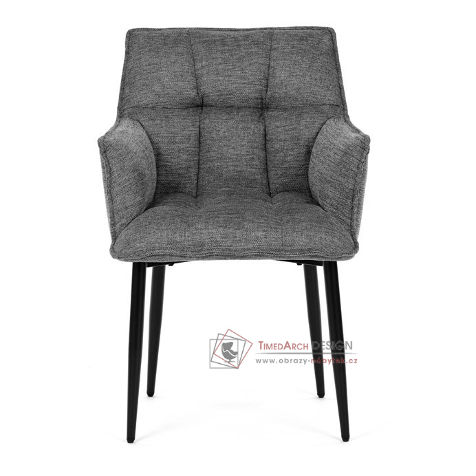 Elegantní šedé čalounění z vodoodpudivé látky zajišťuje snadnou údržbu a odolnost proti nečistotám, což oceníte v každodenním provozu. Pohodlí při sezení zaručuje měkká PU pěna a integrované područky, které podporují správnou ergonomii. Stabilitu zajišťují čtyři kovové nohy v černém provedení, které podtrhují moderní vzhled. Tato židle skvěle doplní jakýkoliv jídelní prostor a přinese do něj sofistikovaný styl a pohodlí.