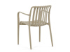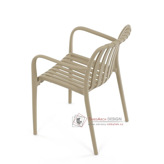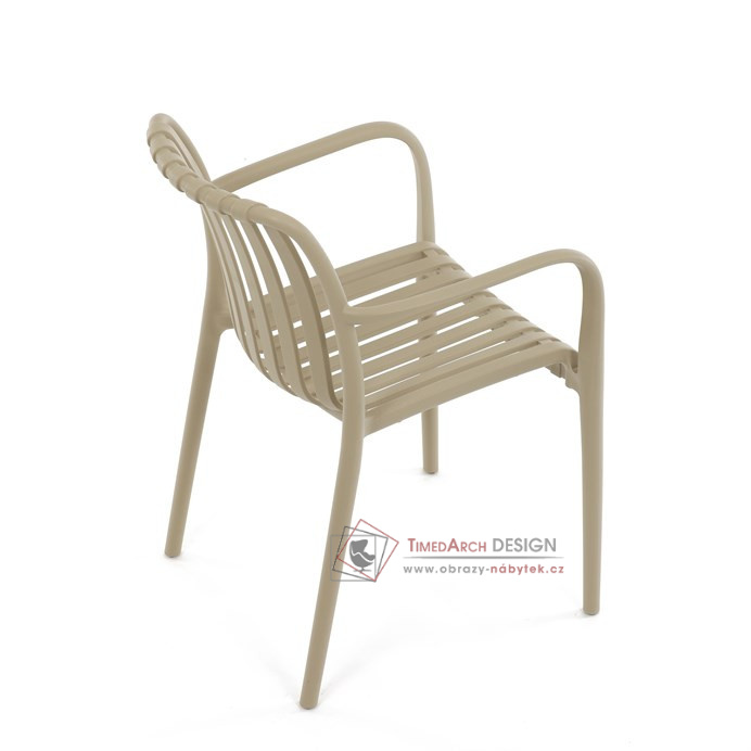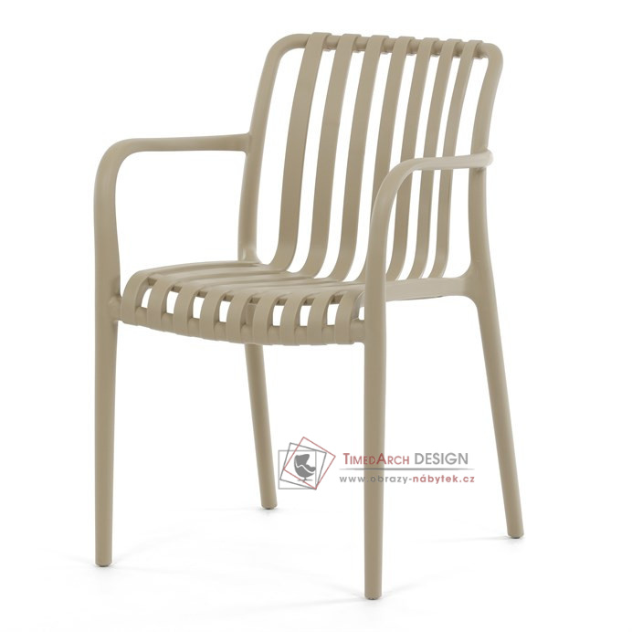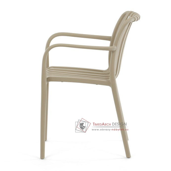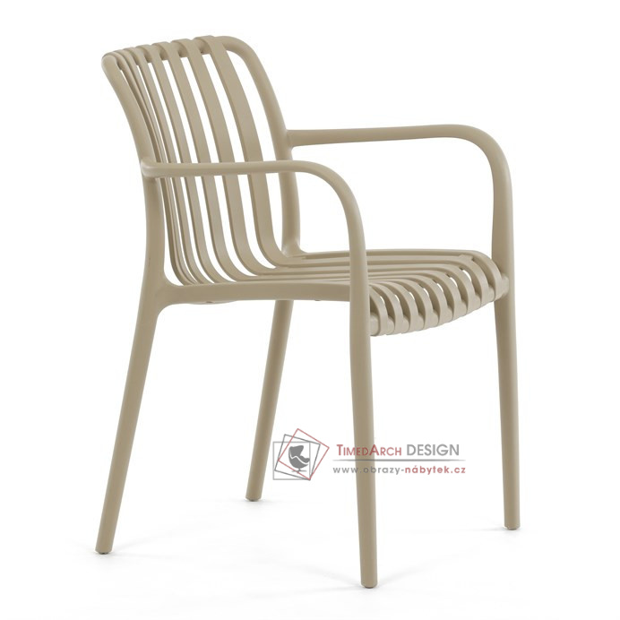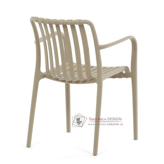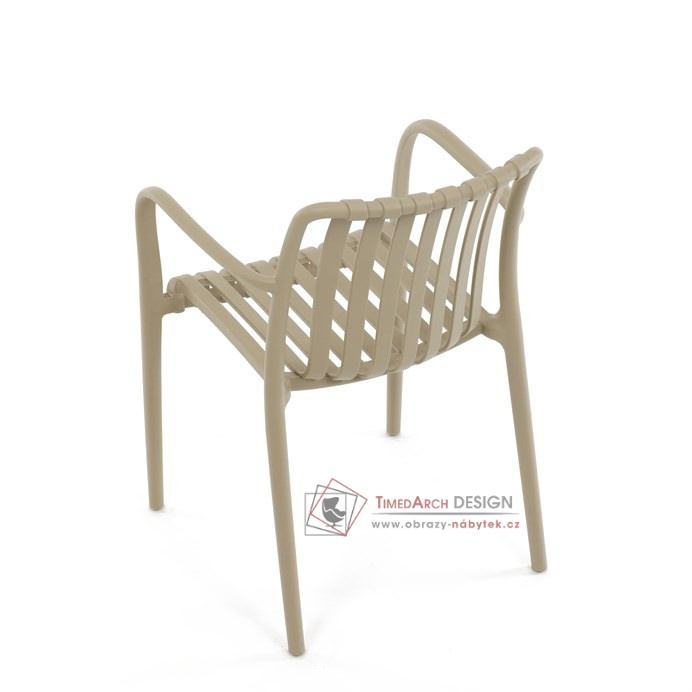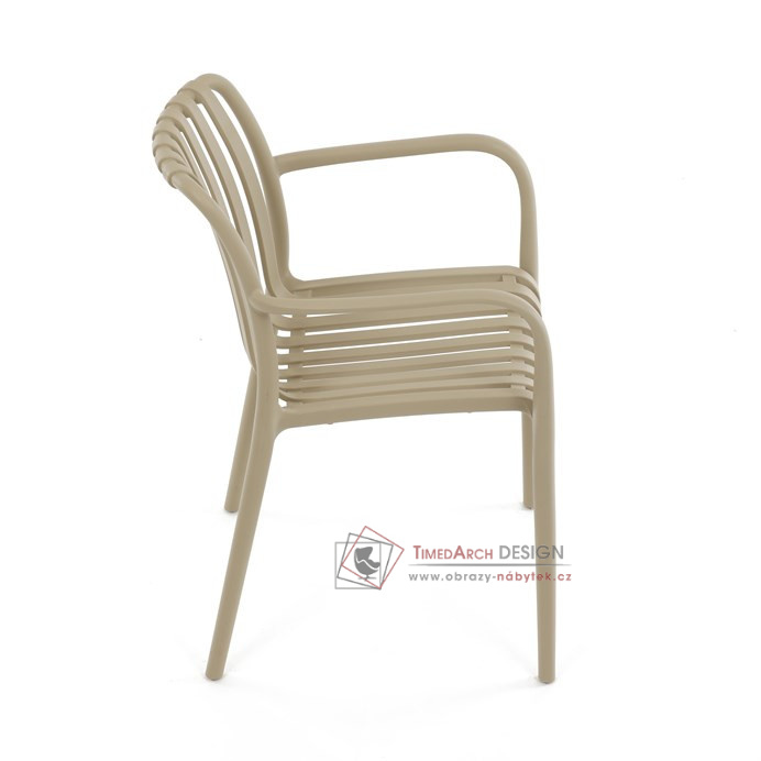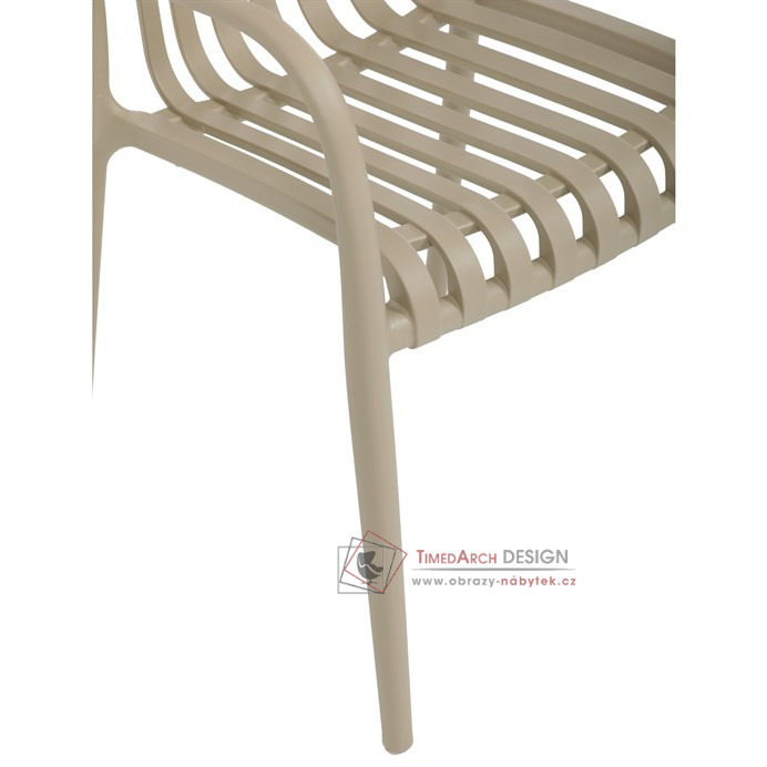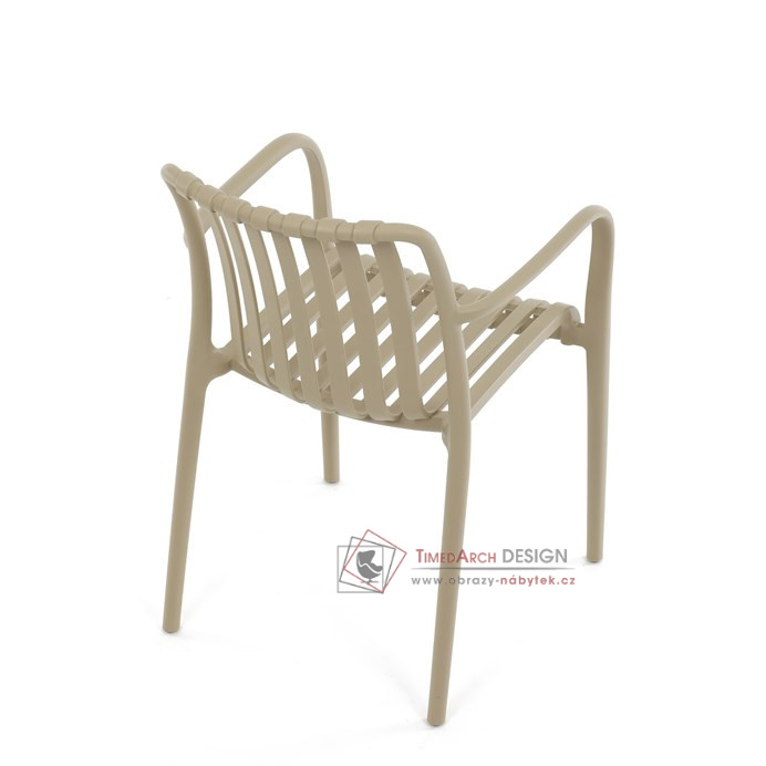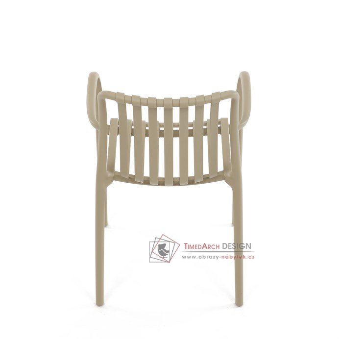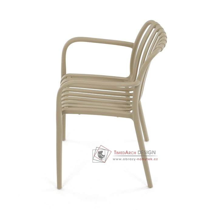Vyrobena z kvalitního plastu v barvě cappucino, působí svěžím a čistým dojmem. Praktickou vlastností této židle je její stohovatelnost, což šetří prostor při uskladnění. Díky použití plastového materiálu je židle odolná a snadno se čistí.