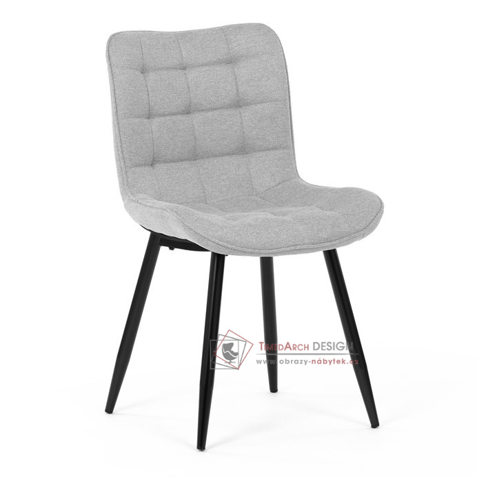 Stříbrné čalounění z kvalitní látky je nejen příjemné na dotek, ale díky ozdobnému prošití do čtverců také vyniká esteticky. Stabilitu a trvanlivost zajišťují kovové nohy, které dodávají moderní vzhled a dlouhou životnost. Tato židle bez područek kombinuje funkčnost a styl pro každý interiér.