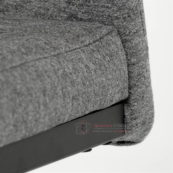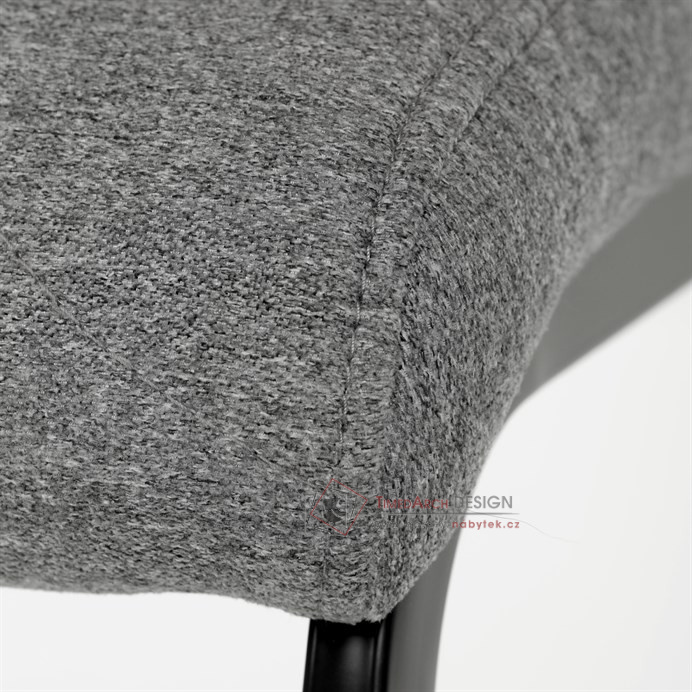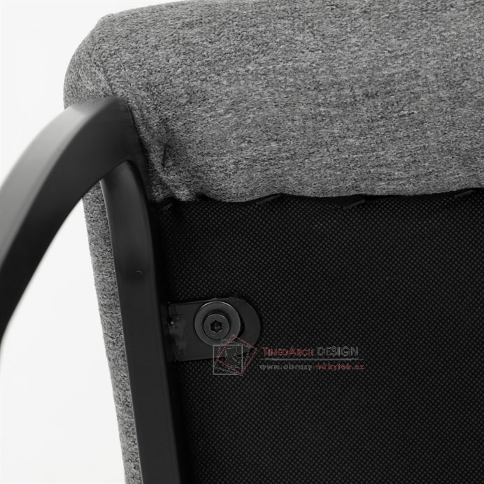 Sedák a opěrák je očalouněný látkou stříbrné barvy.