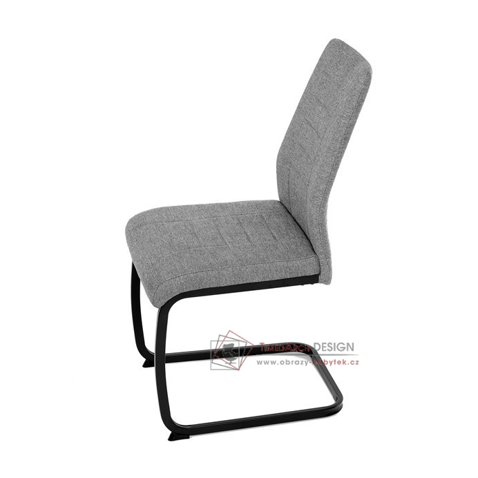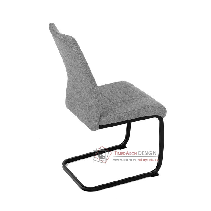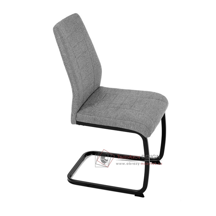 Atraktívní jídelní židle na kovové, pohupové podnoži černé barvy.