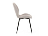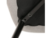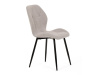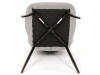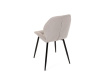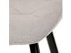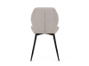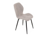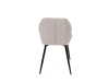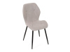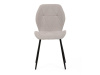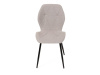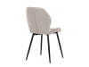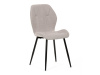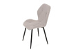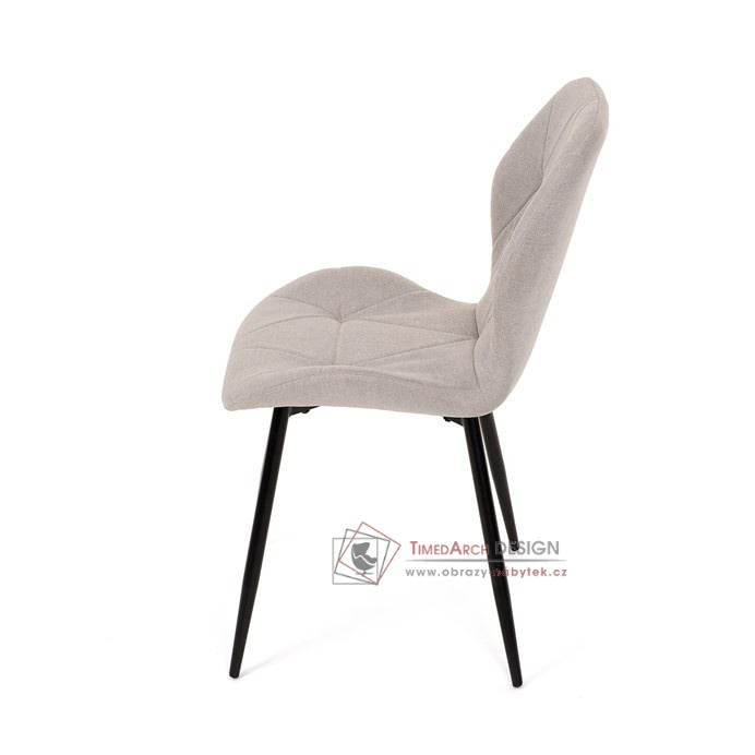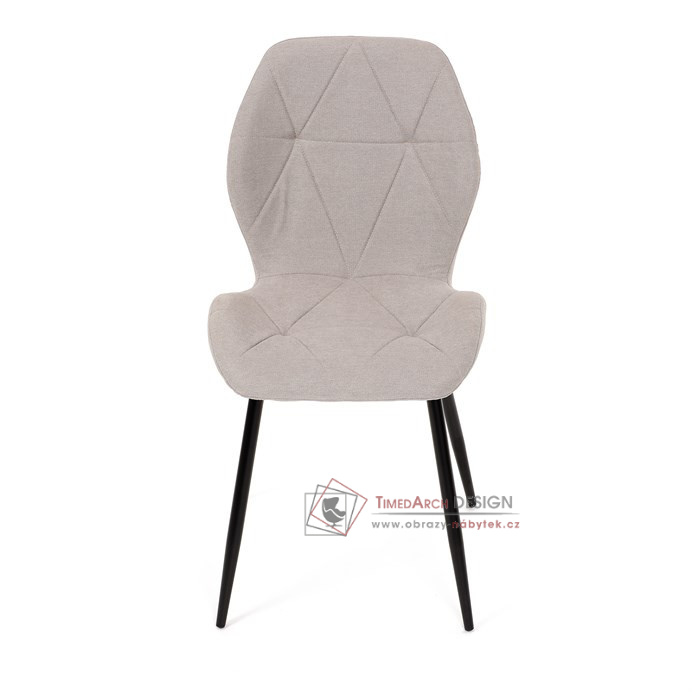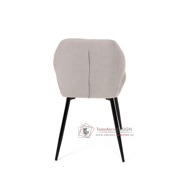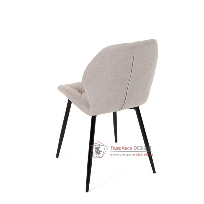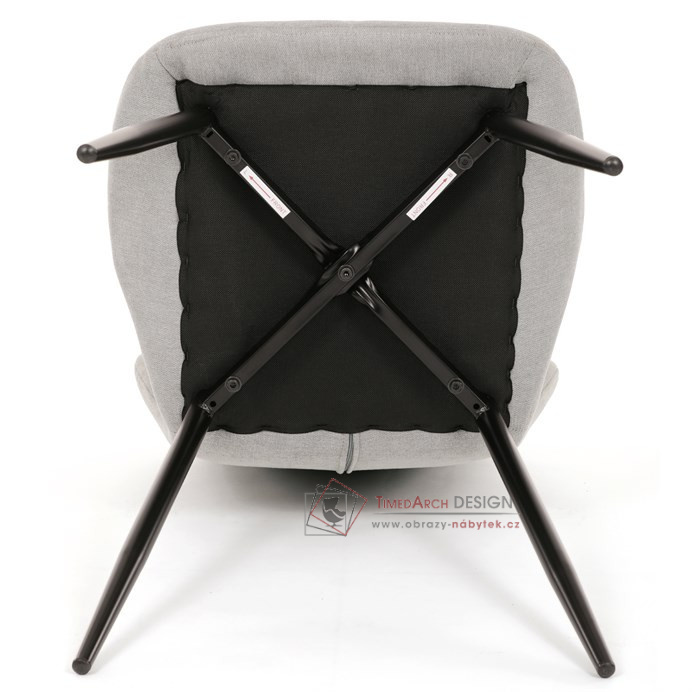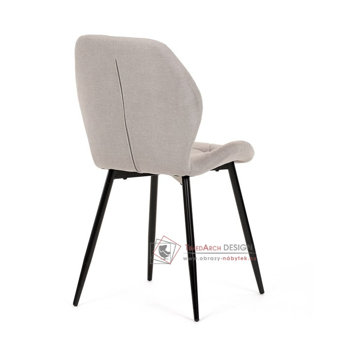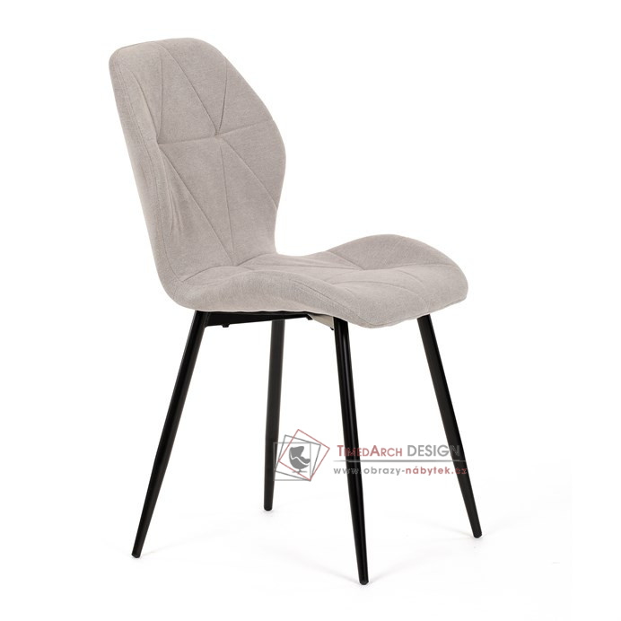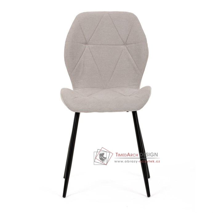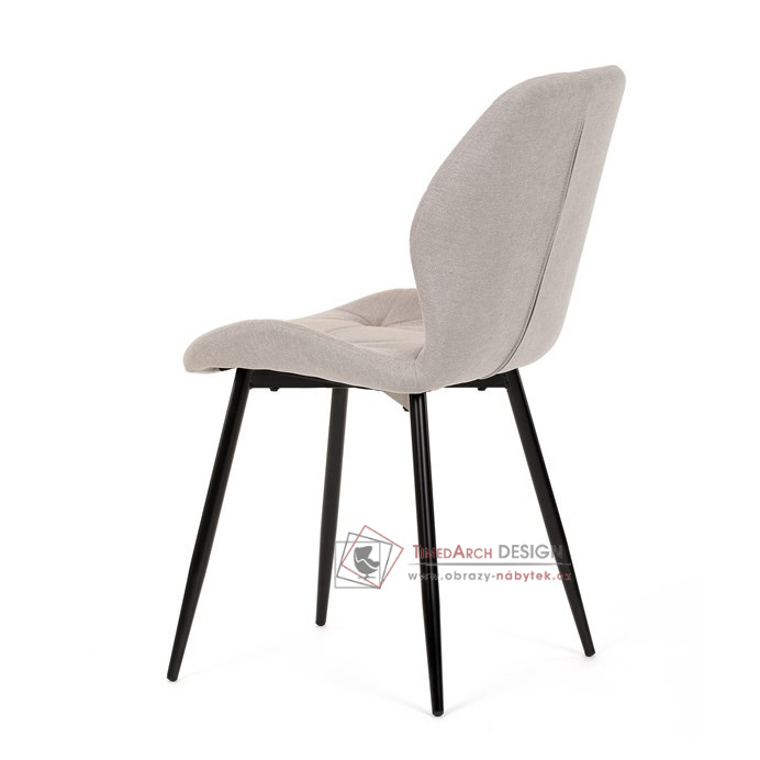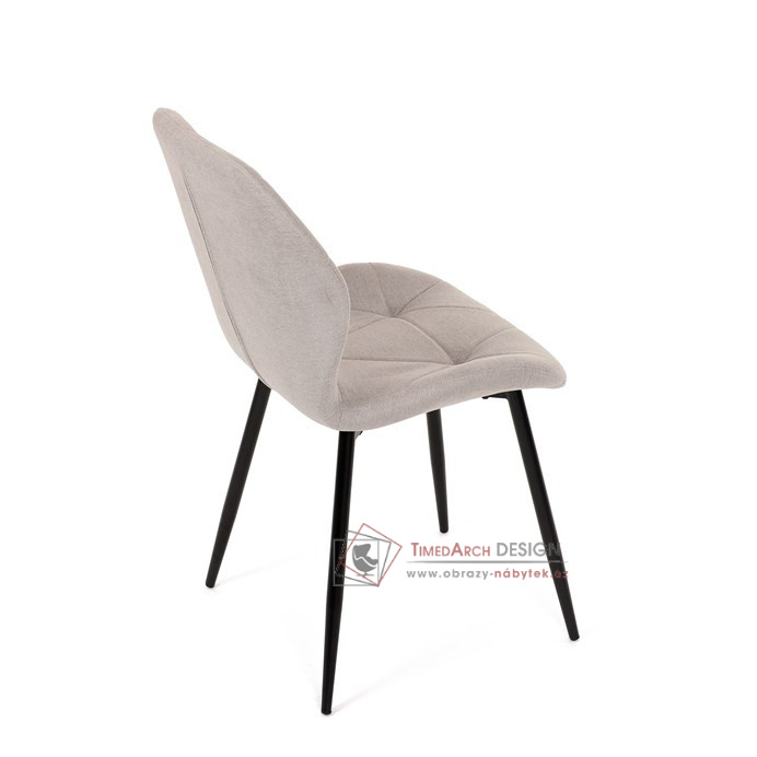 Sedák a opěrák židle tvoří skořepina specifického tvaru očalouněná prošitou látkou barvy světle šedé.
