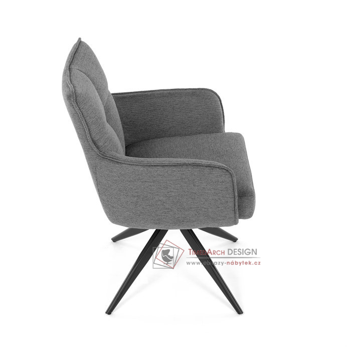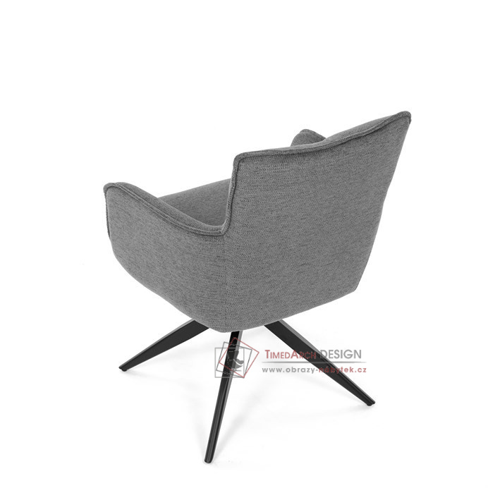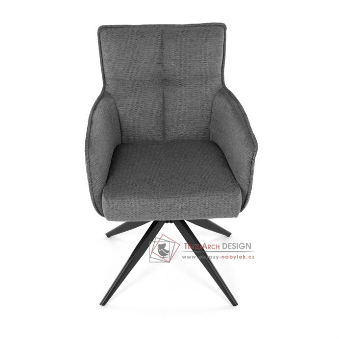 Šedý potah z voděodolné látky zaručuje snadnou údržbu a dlouhou životnost. Sedák je vybaven taštičkovými pružinami, které zajišťují maximální komfort při sezení. Stabilní centrální kovová podnož v černé barvě podtrhuje moderní design a dodává židli jedinečný vzhled. Díky otočnému mechanismu s vratnou funkcí je židle praktická a flexibilní. Ideální volba pro moderní interiéry, které kladou důraz na funkčnost a estetiku.