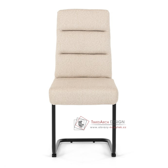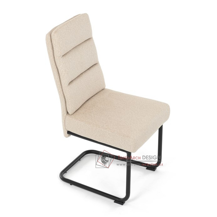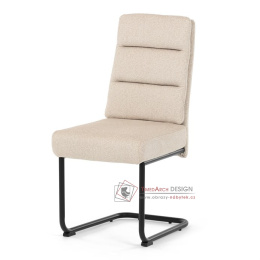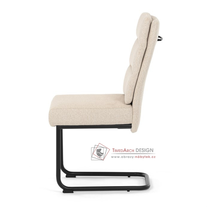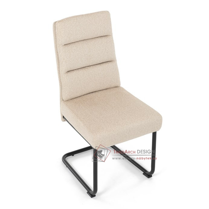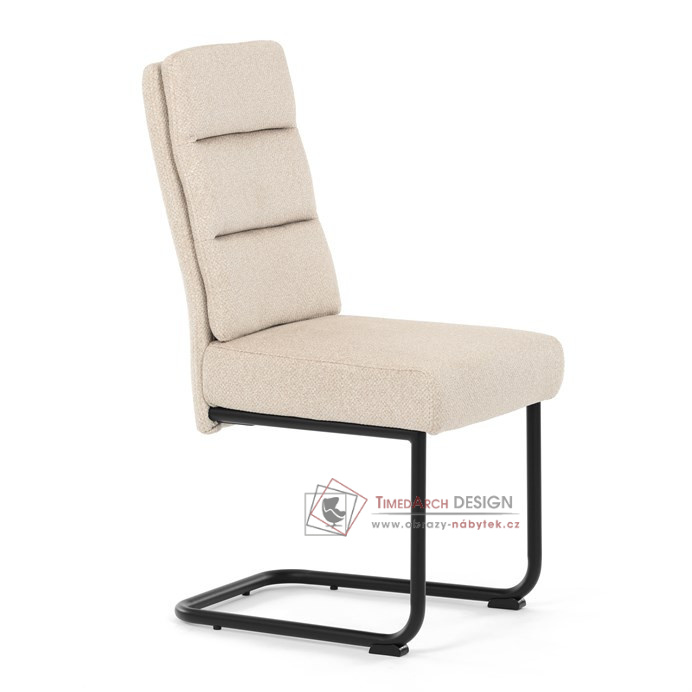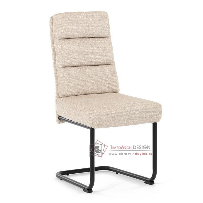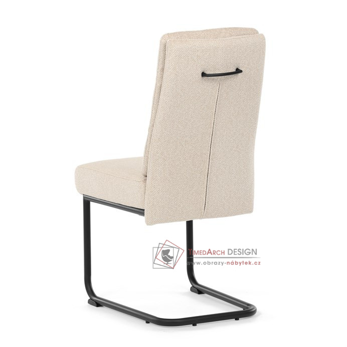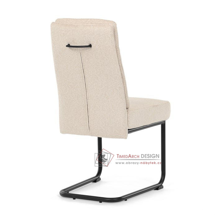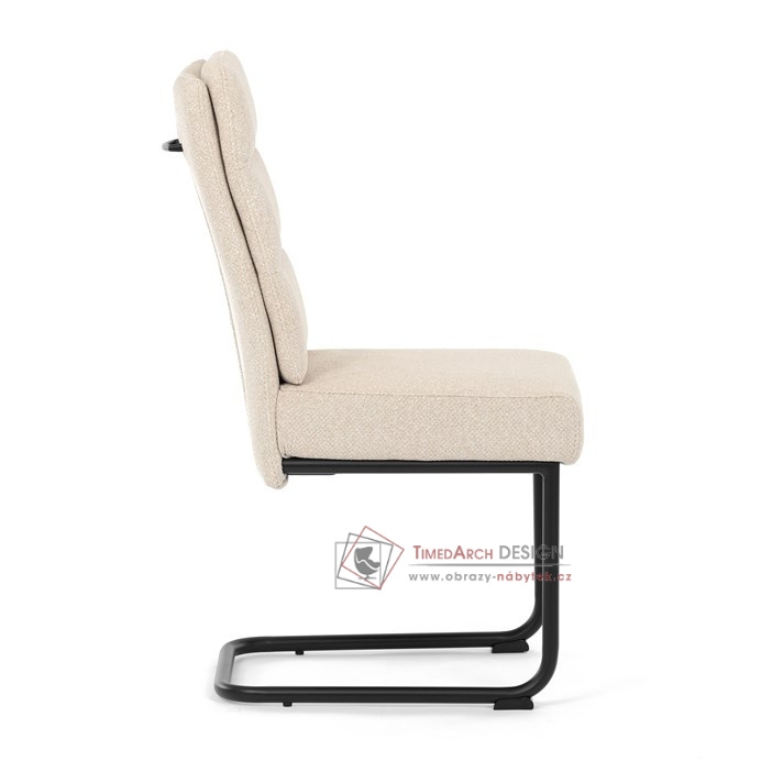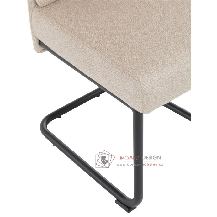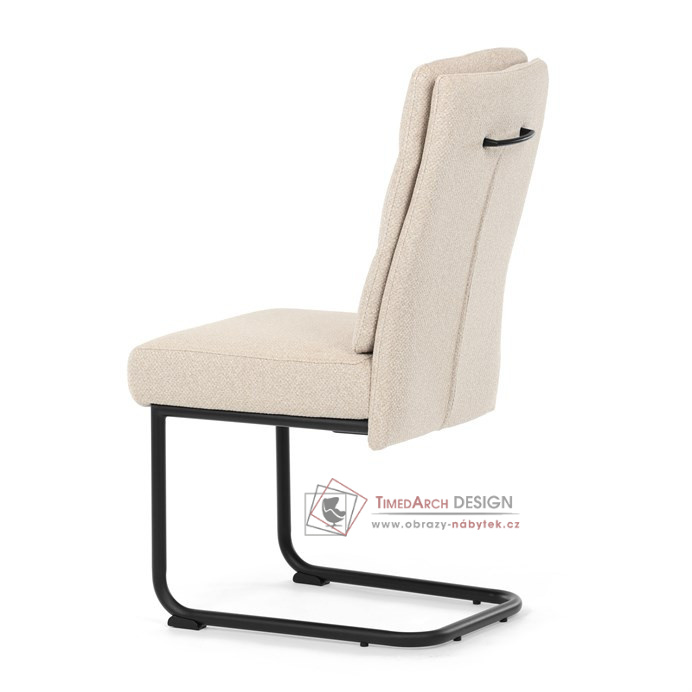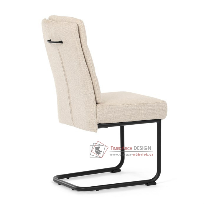 Sedák a opěradlo jsou čalouněné jemně hrubou látkou, která je příjemná na dotek a zároveň stylová. Pohupová kovová konstrukce v černé barvě dodává židli nejen stabilitu, ale také moderní vzhled, který skvěle zapadne do každé jídelny. Díky taštičkovým pružinám v sedáku nabízí tato židle vysoký komfort při sezení. Ideální volba pro moderní interiéry i každodenní stolování.
