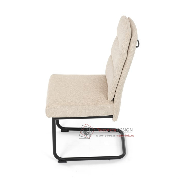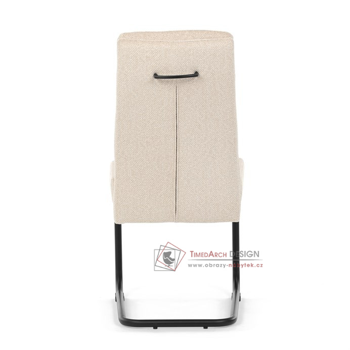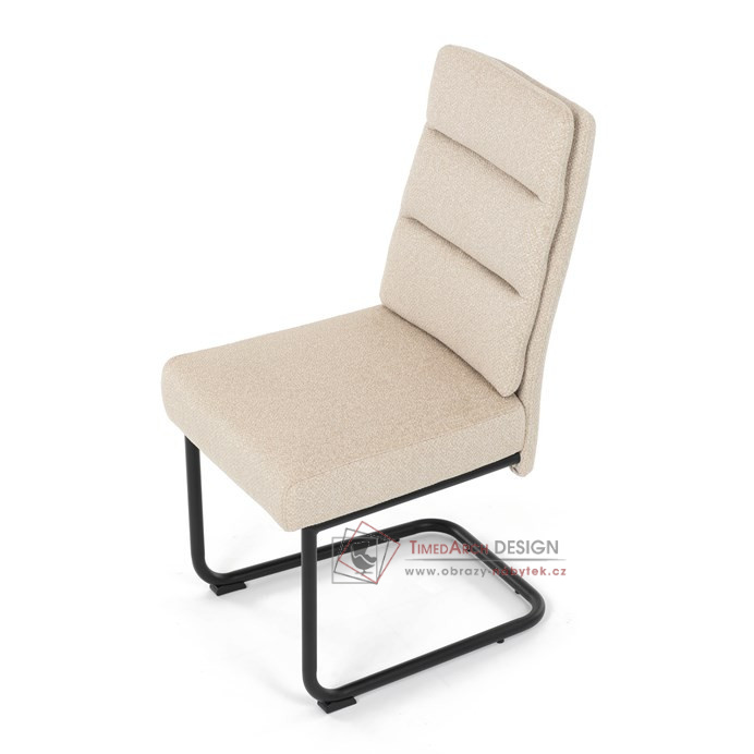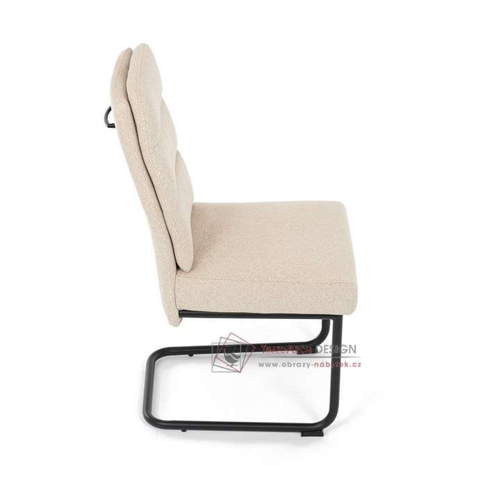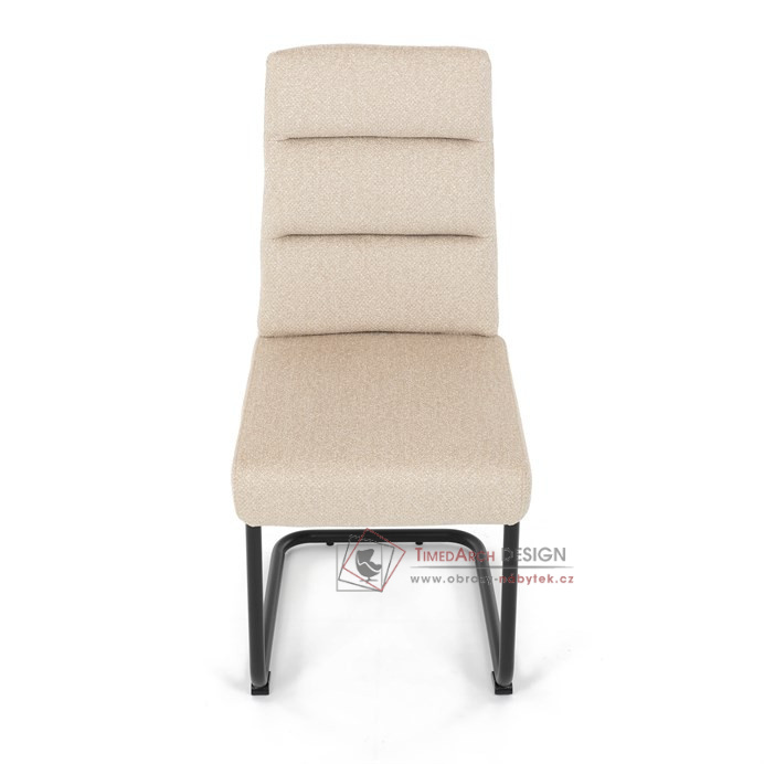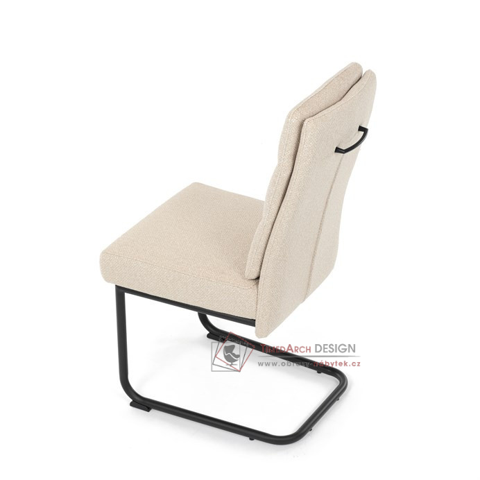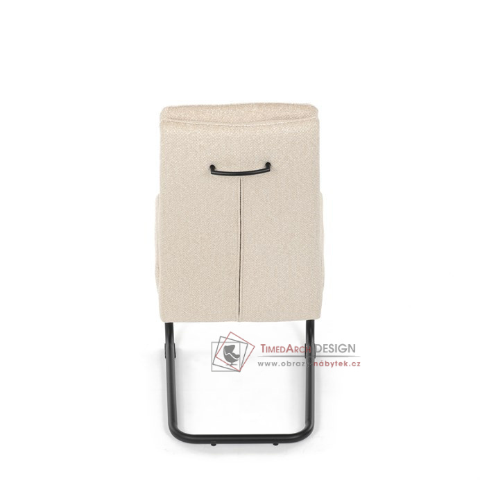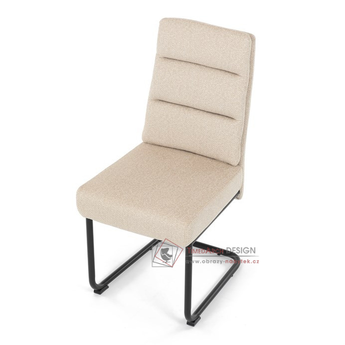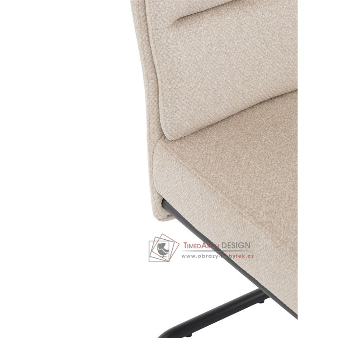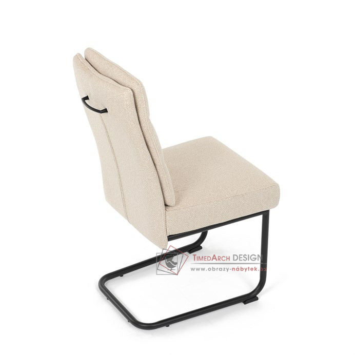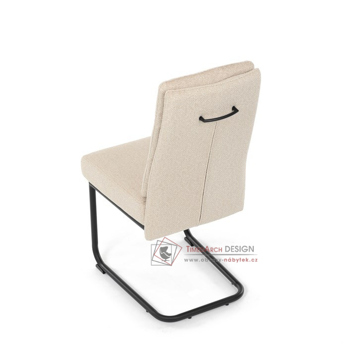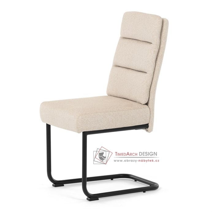 Sedák a opěradlo jsou čalouněné jemně hrubou látkou, která je příjemná na dotek a zároveň stylová. Pohupová kovová konstrukce v černé barvě dodává židli nejen stabilitu, ale také moderní vzhled, který skvěle zapadne do každé jídelny. Díky taštičkovým pružinám v sedáku nabízí tato židle vysoký komfort při sezení. Ideální volba pro moderní interiéry i každodenní stolování.