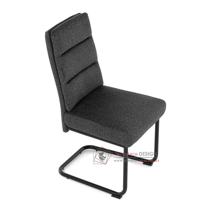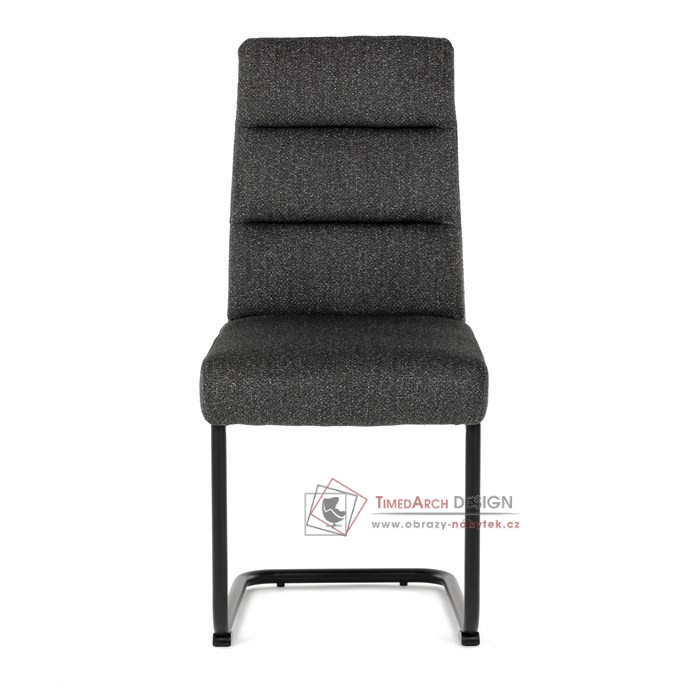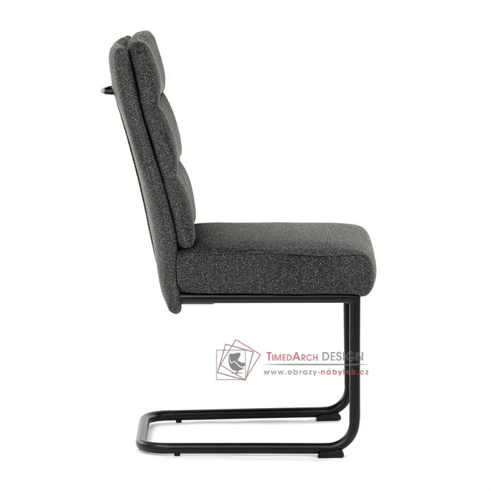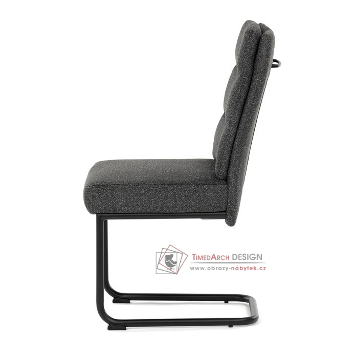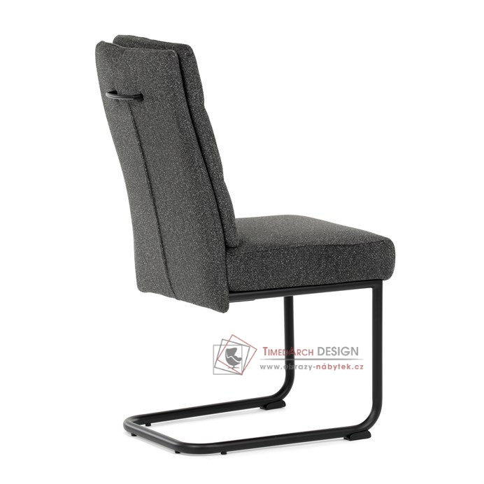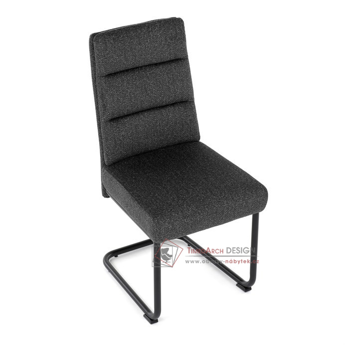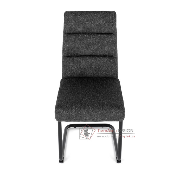 Sedák a opěradlo jsou čalouněné jemně hrubou látkou, která je příjemná na dotek a zároveň stylová. Pohupová kovová konstrukce v černé barvě dodává židli nejen stabilitu, ale také moderní vzhled, který skvěle zapadne do každé jídelny. Díky taštičkovým pružinám v sedáku nabízí tato židle vysoký komfort při sezení. Ideální volba pro moderní interiéry i každodenní stolování.