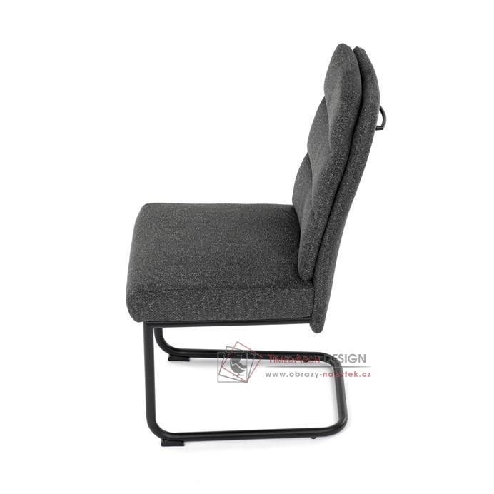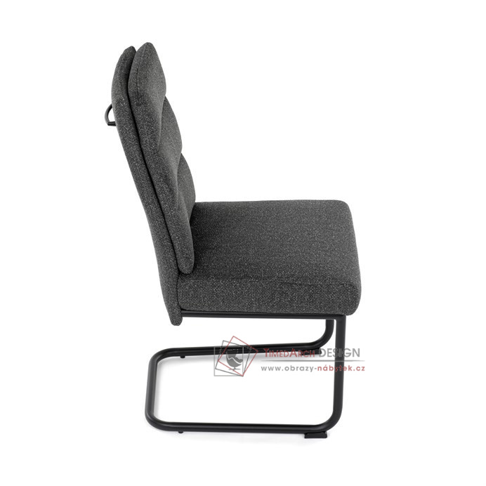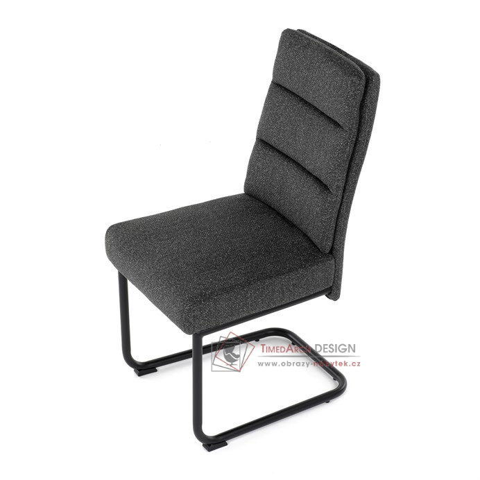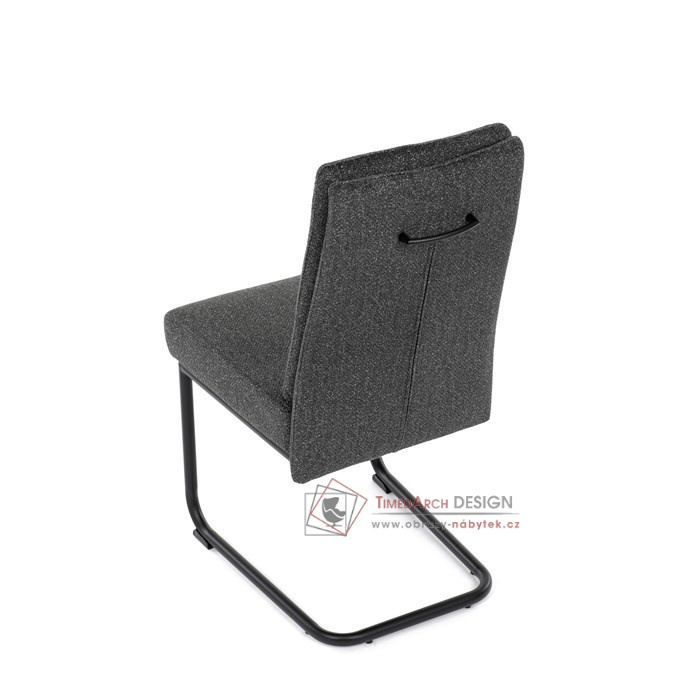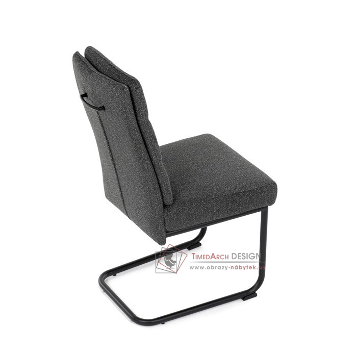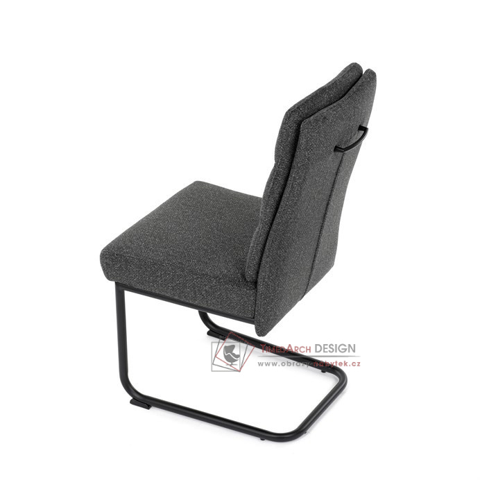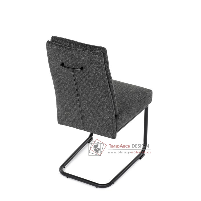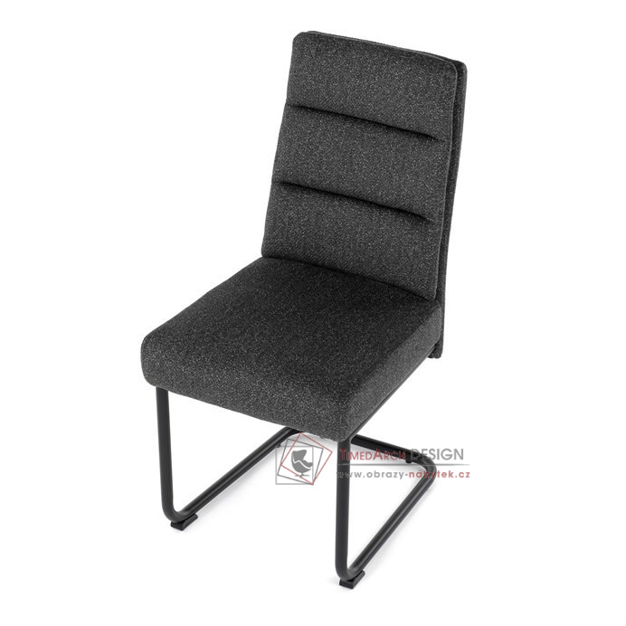 Sedák a opěradlo jsou čalouněné jemně hrubou látkou, která je příjemná na dotek a zároveň stylová. Pohupová kovová konstrukce v černé barvě dodává židli nejen stabilitu, ale také moderní vzhled, který skvěle zapadne do každé jídelny. Díky taštičkovým pružinám v sedáku nabízí tato židle vysoký komfort při sezení. Ideální volba pro moderní interiéry i každodenní stolování.