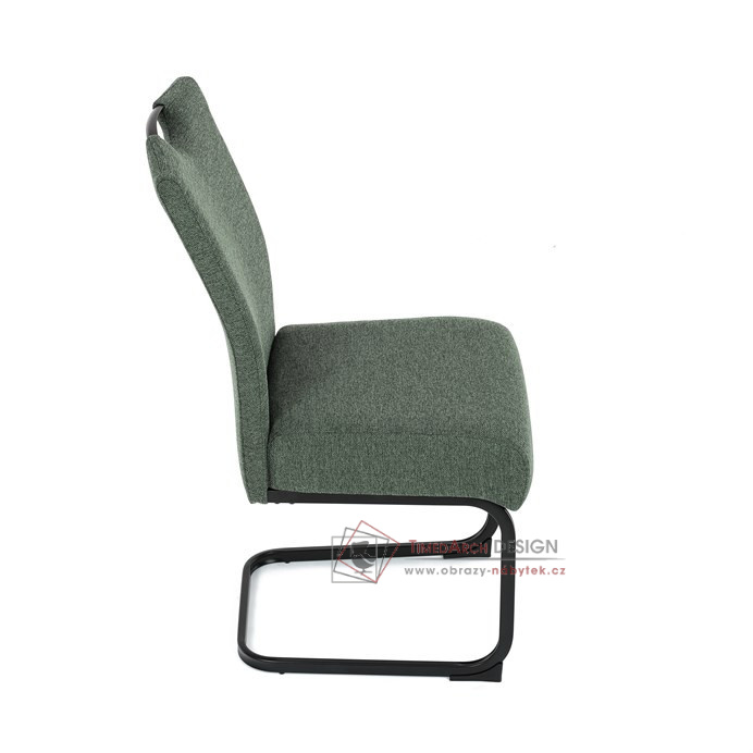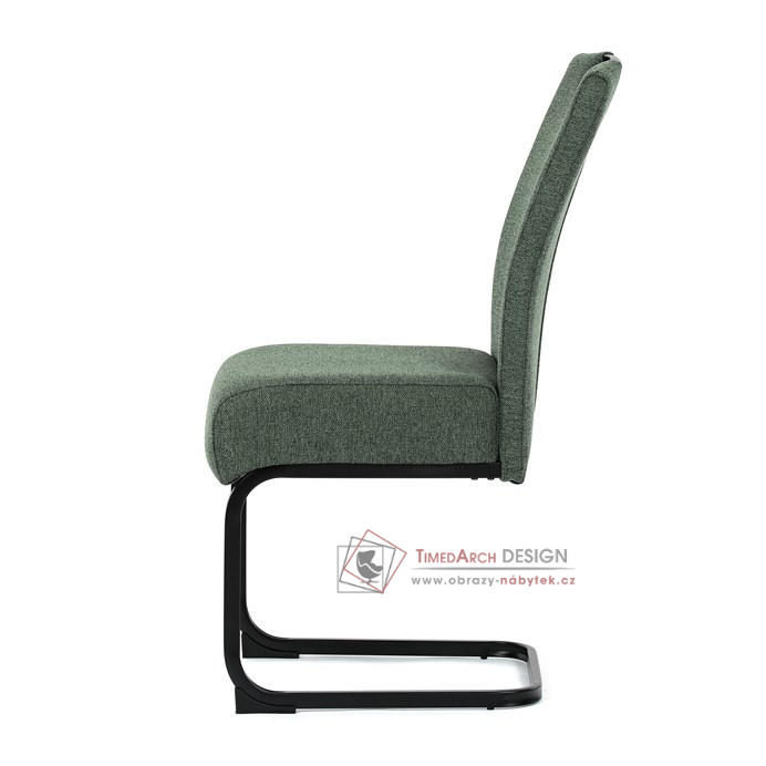 Tato stylová židle v zeleném provedení je čalouněná hladkou látkou a vybavená taštičkovými pružinami pro maximální komfort při sezení. Pevné kovové nohy v černé barvě zajišťují stabilitu a odolnost, což činí židli ideální pro každodenní použití. Jednoduchý, ale elegantní design se skvěle hodí do jakéhokoli moderního jídelního prostoru.
